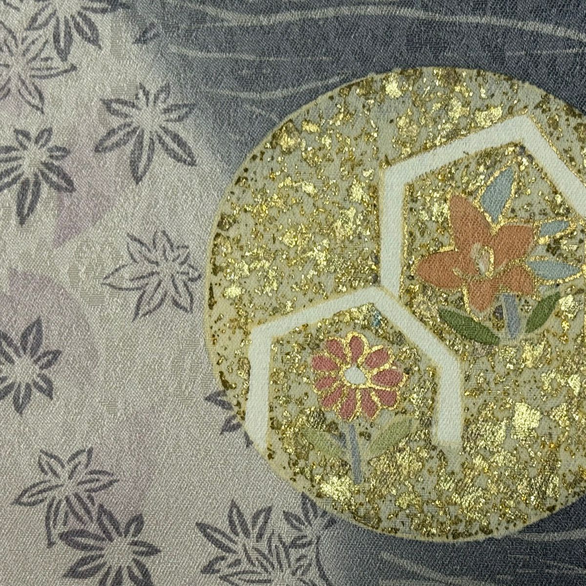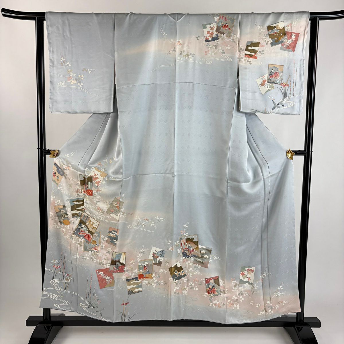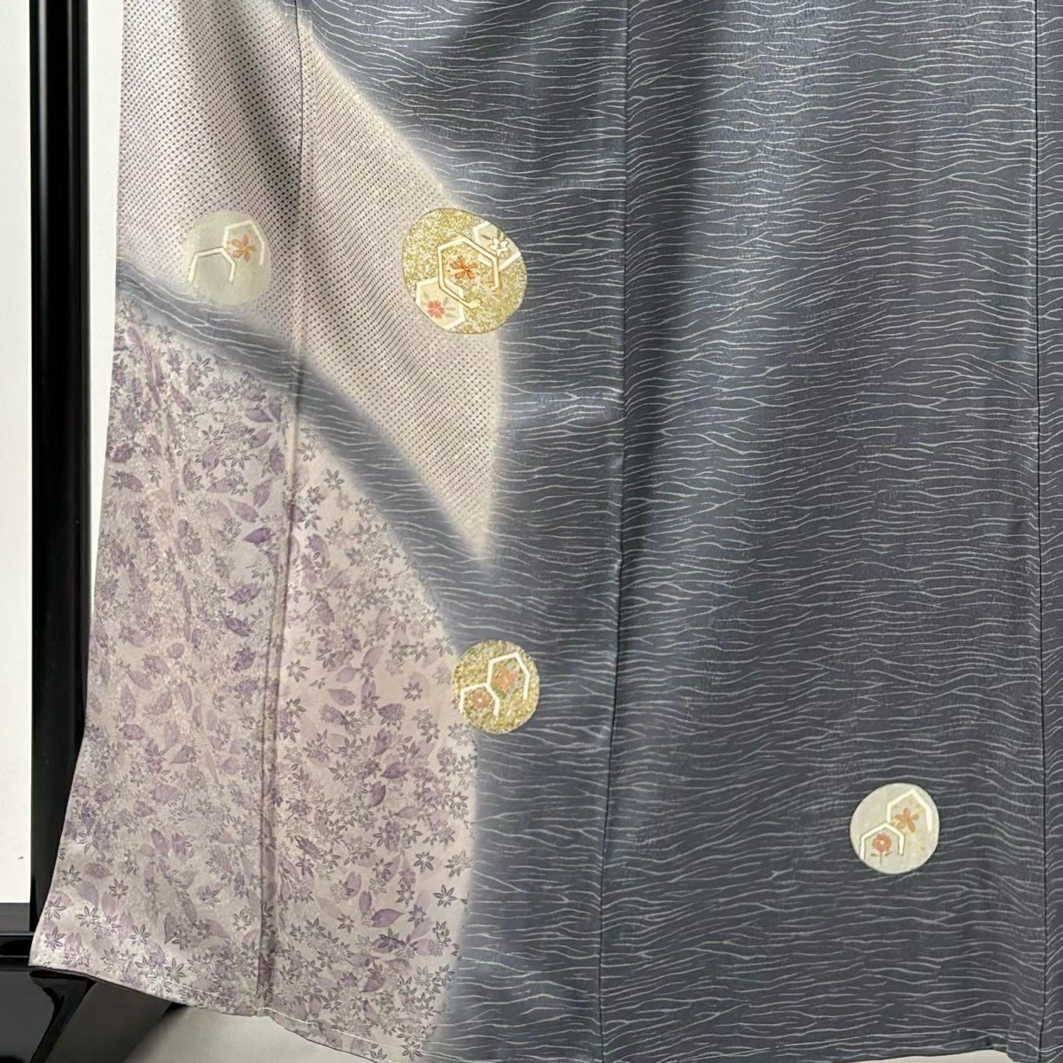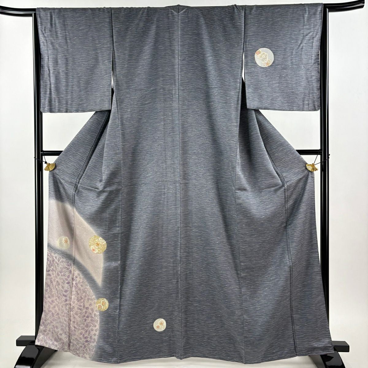 50%OFF 訪問着 身丈155.5cm 裄丈62cm S 袷 色紙 姫 金彩 金糸 青灰色 正絹 秀品 K50