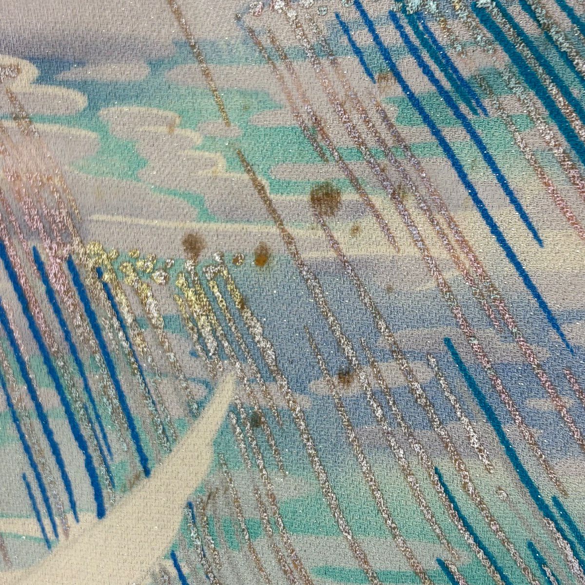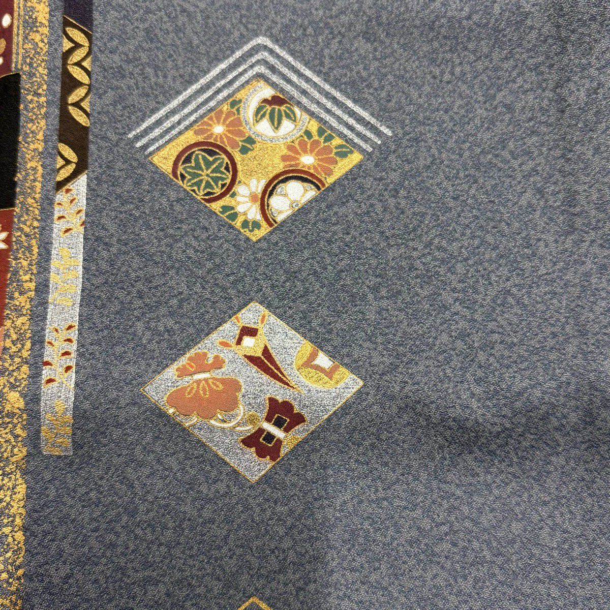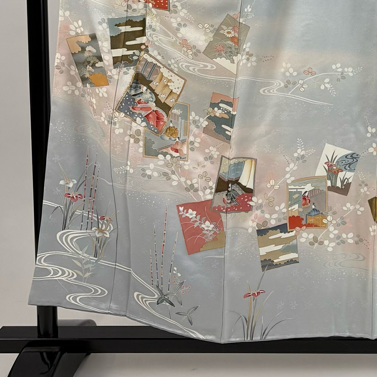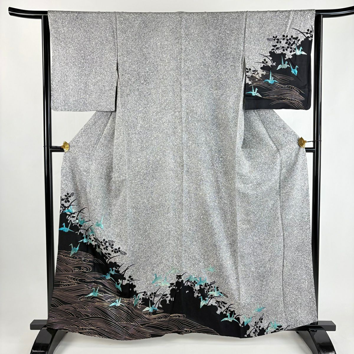 50%OFF 訪問着 身丈155.5cm 裄丈62cm S 袷 色紙 姫 金彩 金糸 青灰色 正絹 秀品 K50