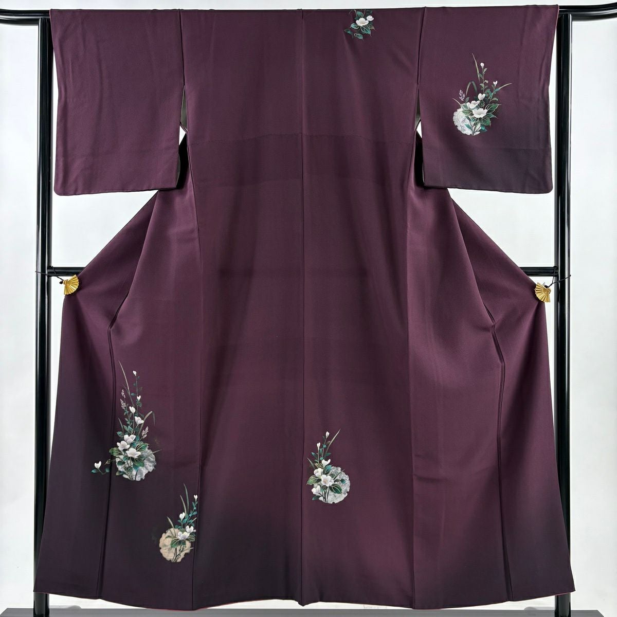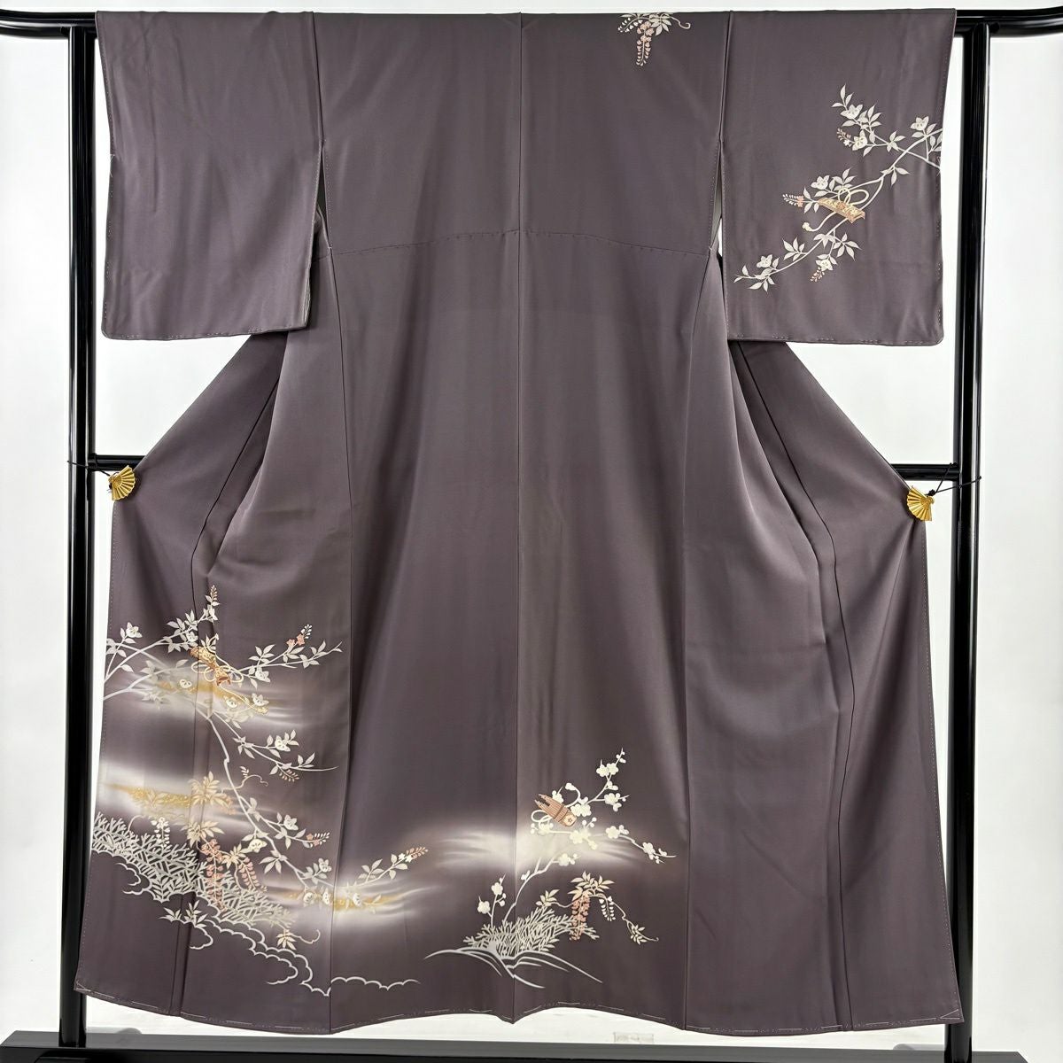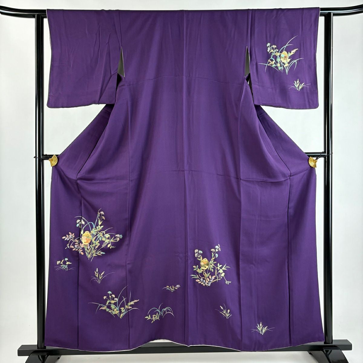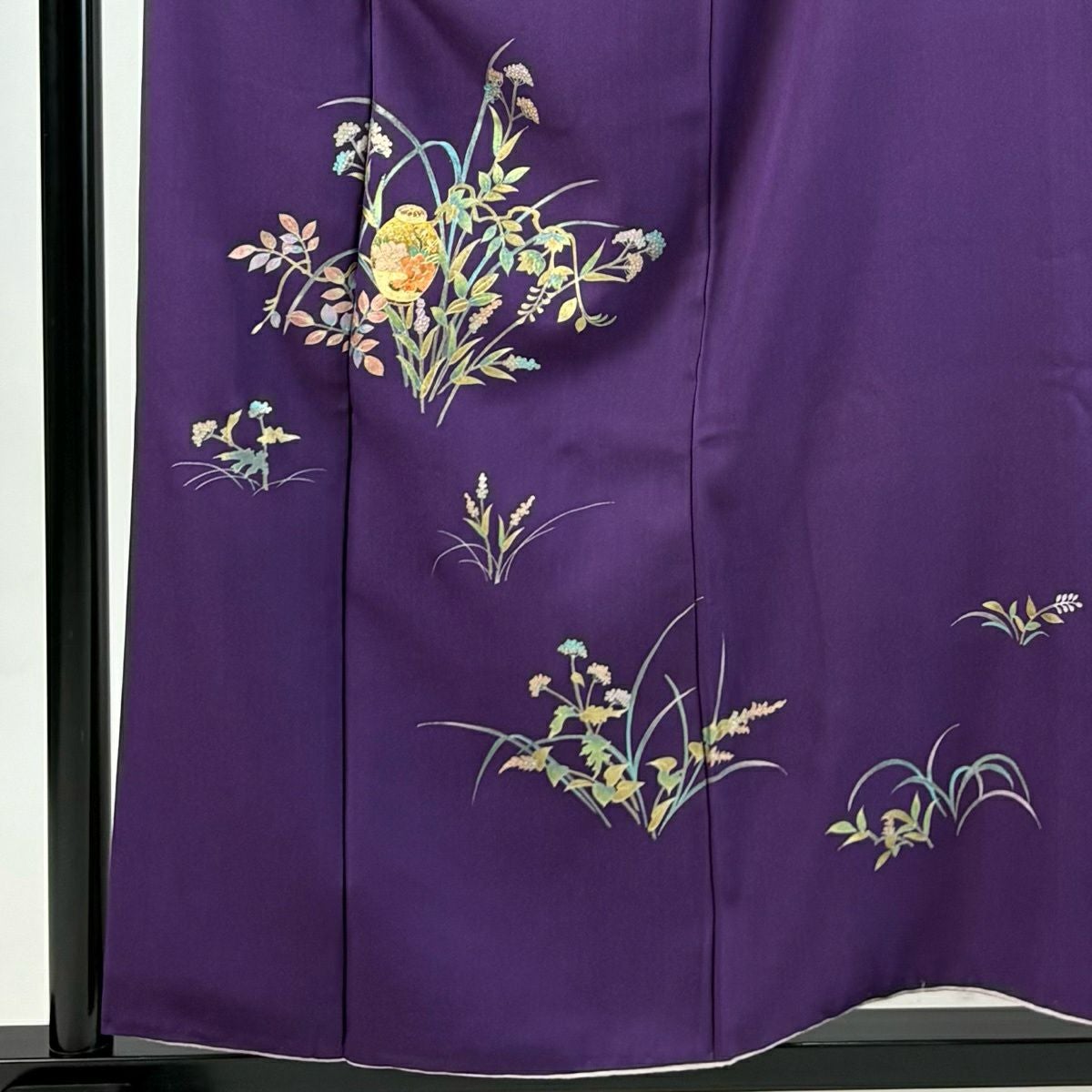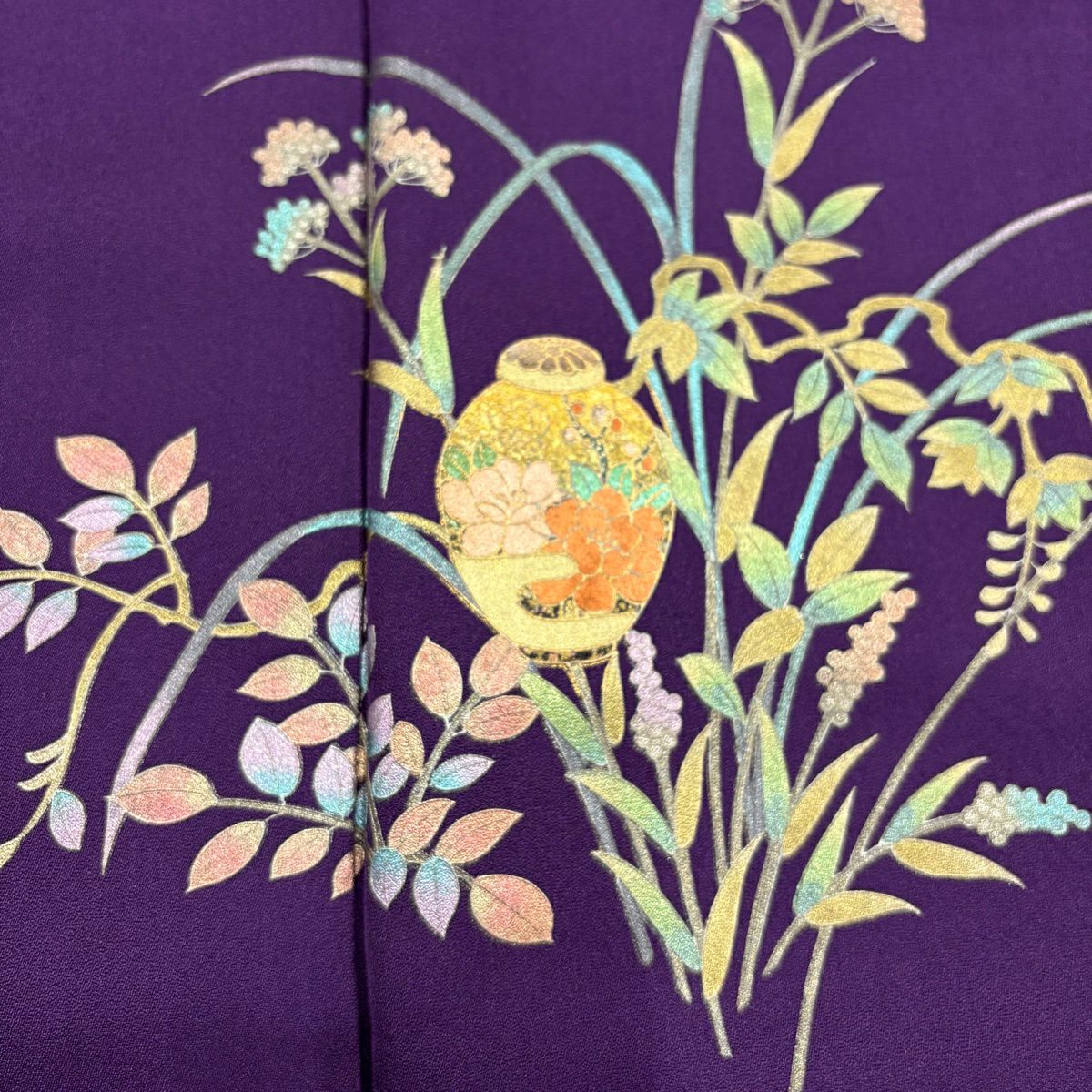 50%OFF 付下げ 身丈157cm 裄丈62cm S 袷 鈴乃屋 器物 草花 金銀彩 紫 正絹 秀品 K50