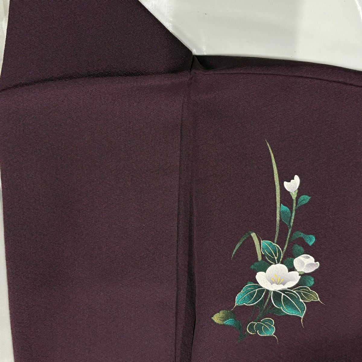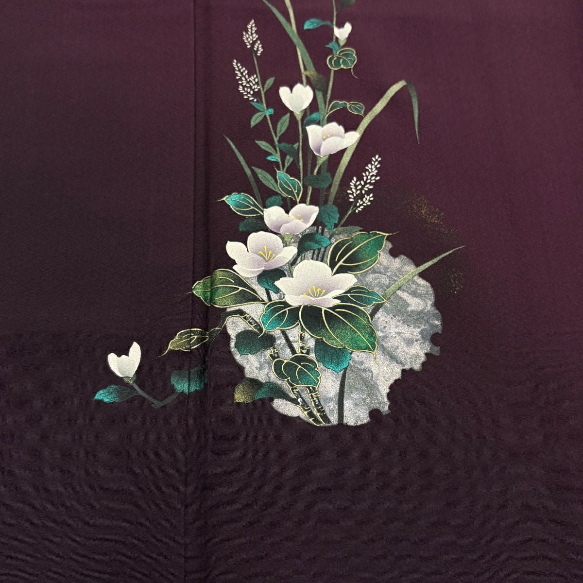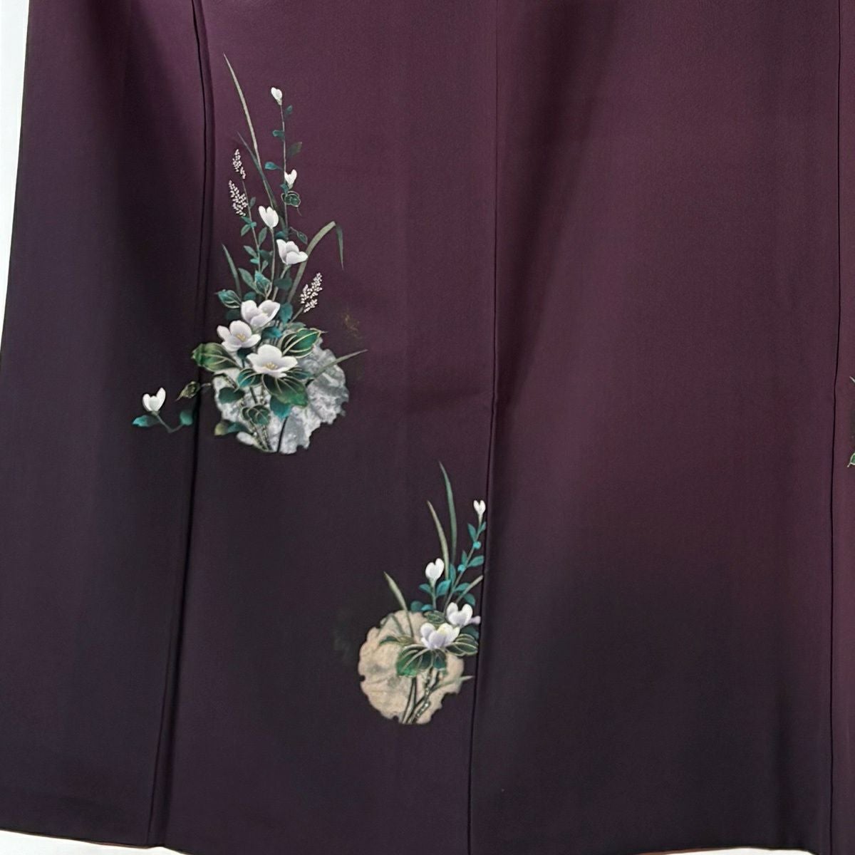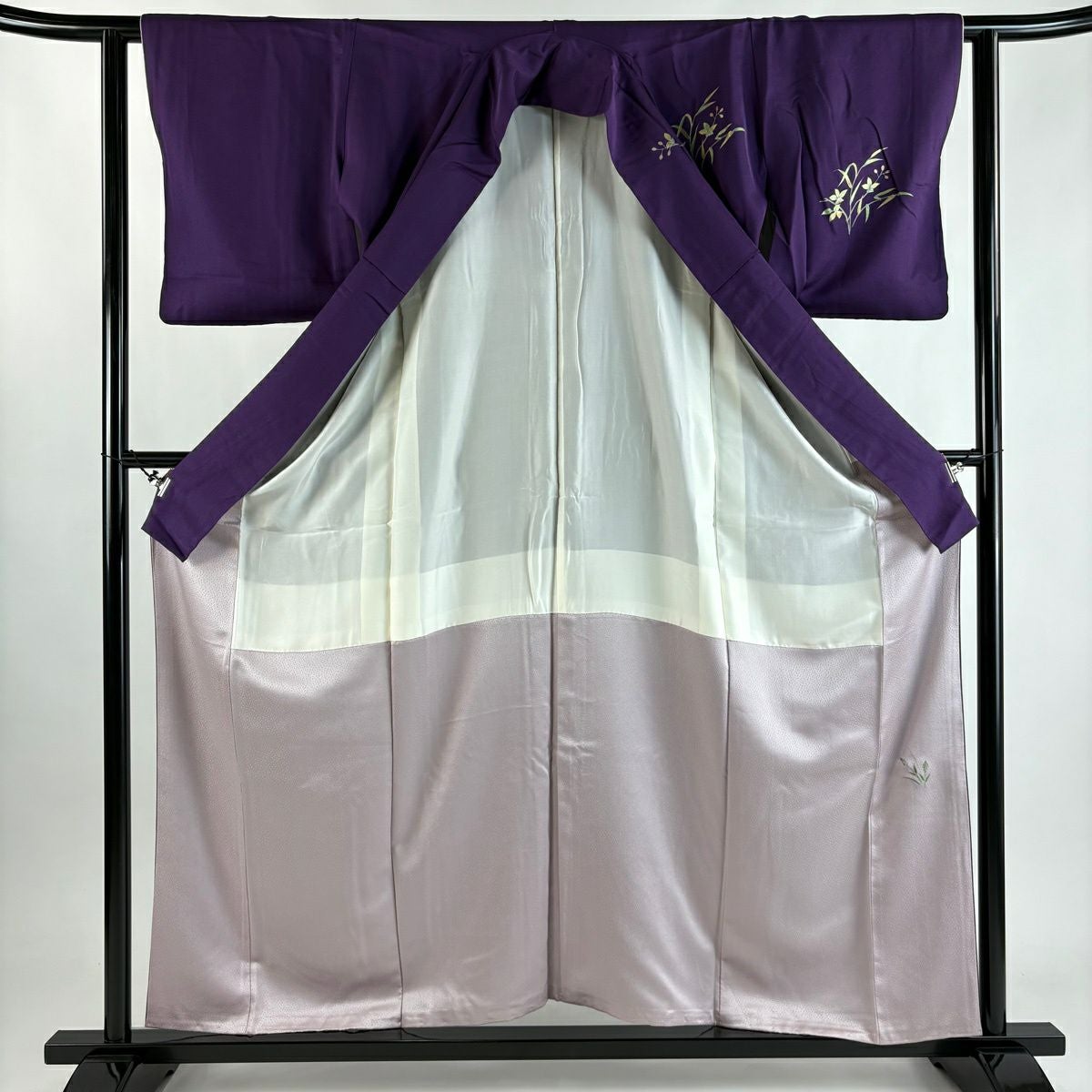 50%OFF 付下げ 身丈157cm 裄丈62cm S 袷 鈴乃屋 器物 草花 金銀彩 紫 正絹 秀品 K50