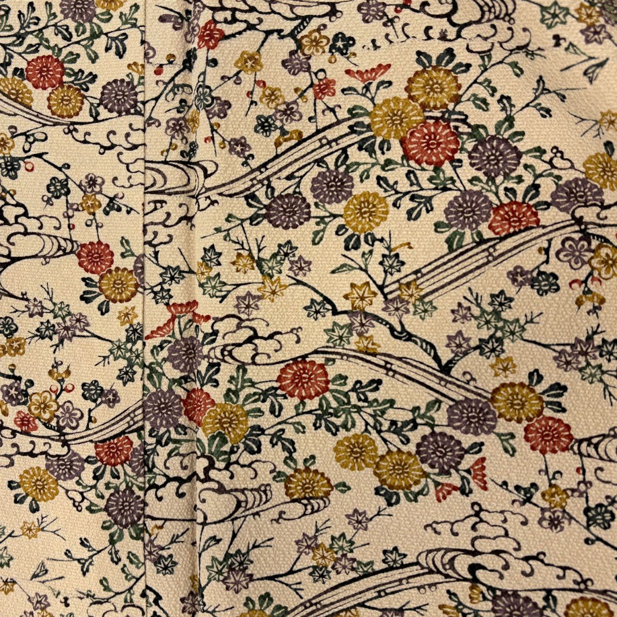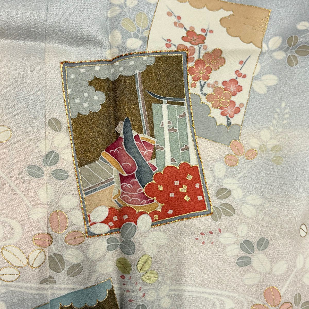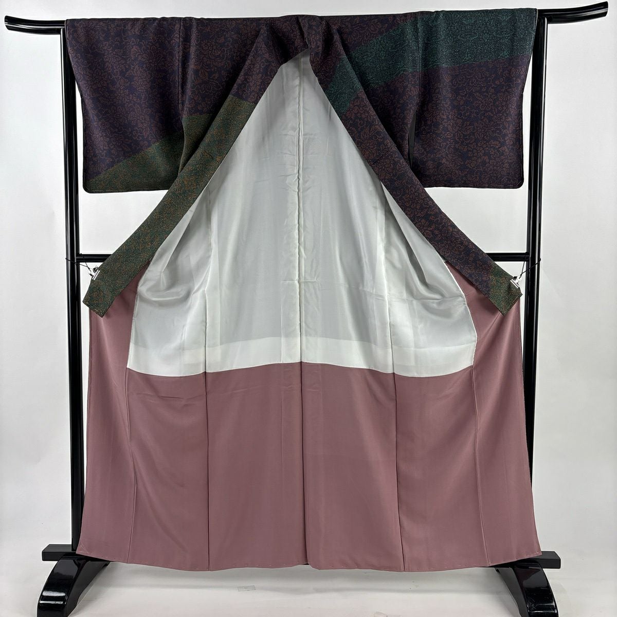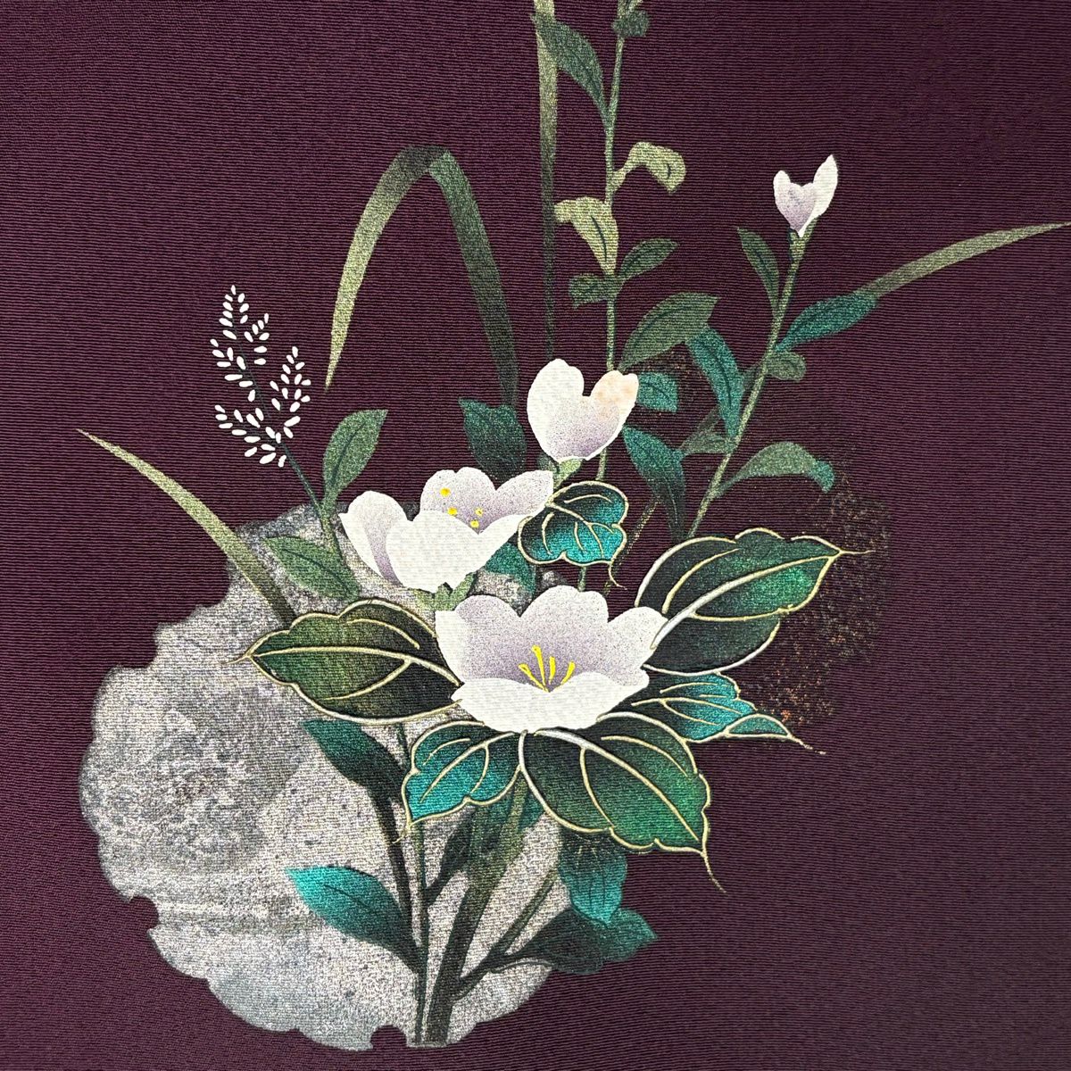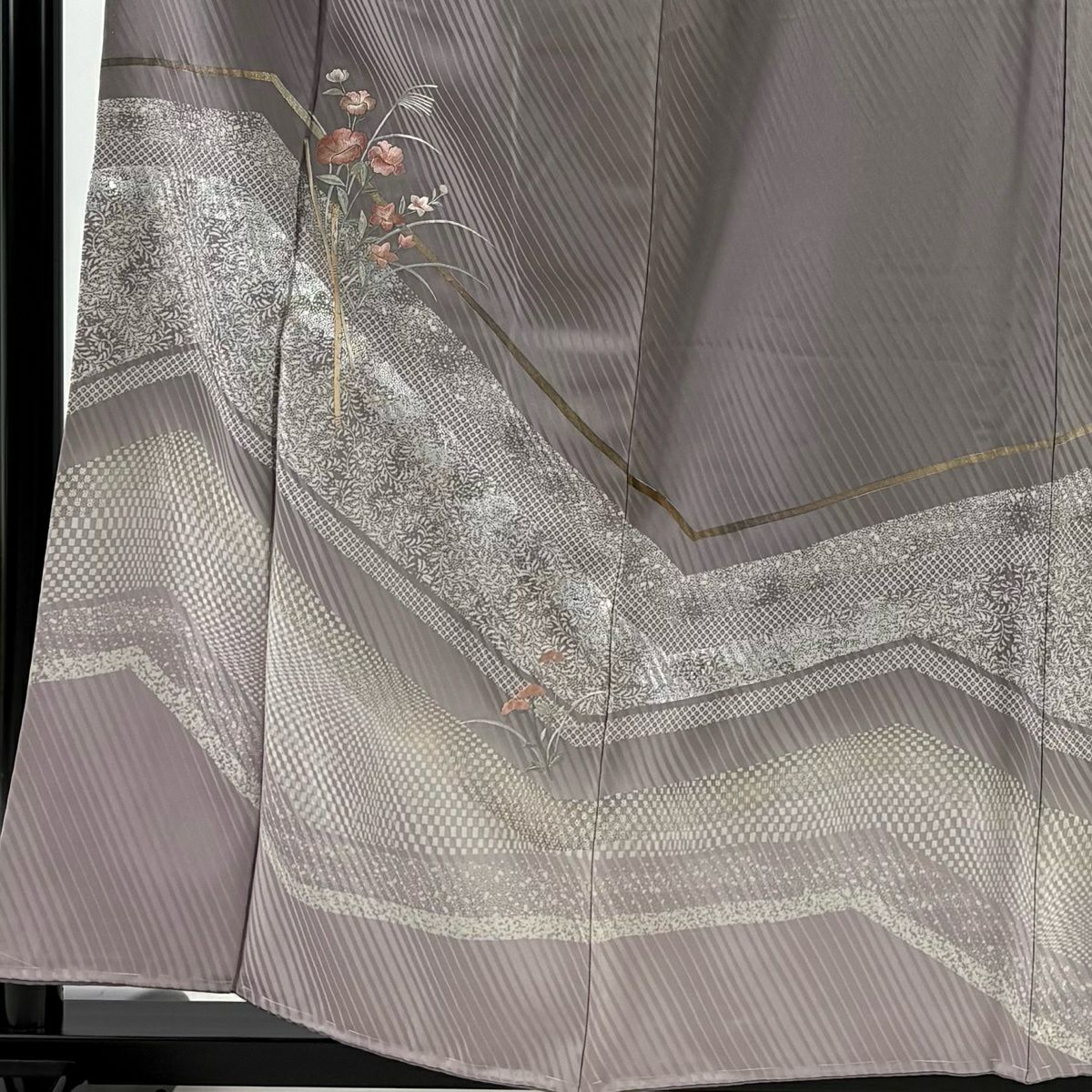 50%OFF 付下げ 身丈157cm 裄丈62cm S 袷 鈴乃屋 器物 草花 金銀彩 紫 正絹 秀品 K50