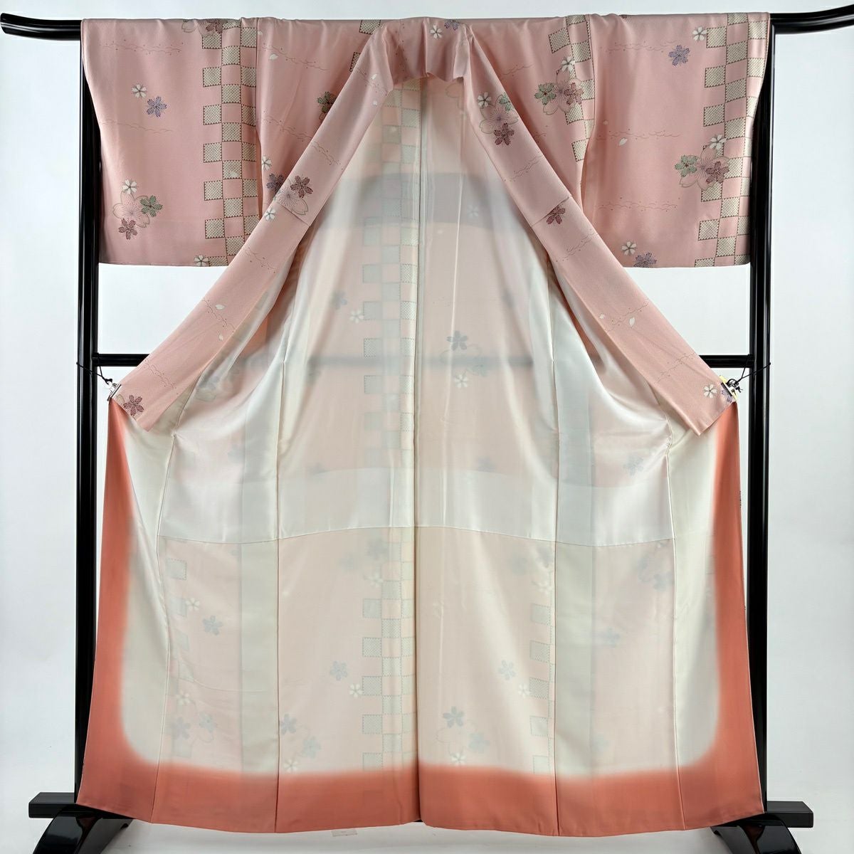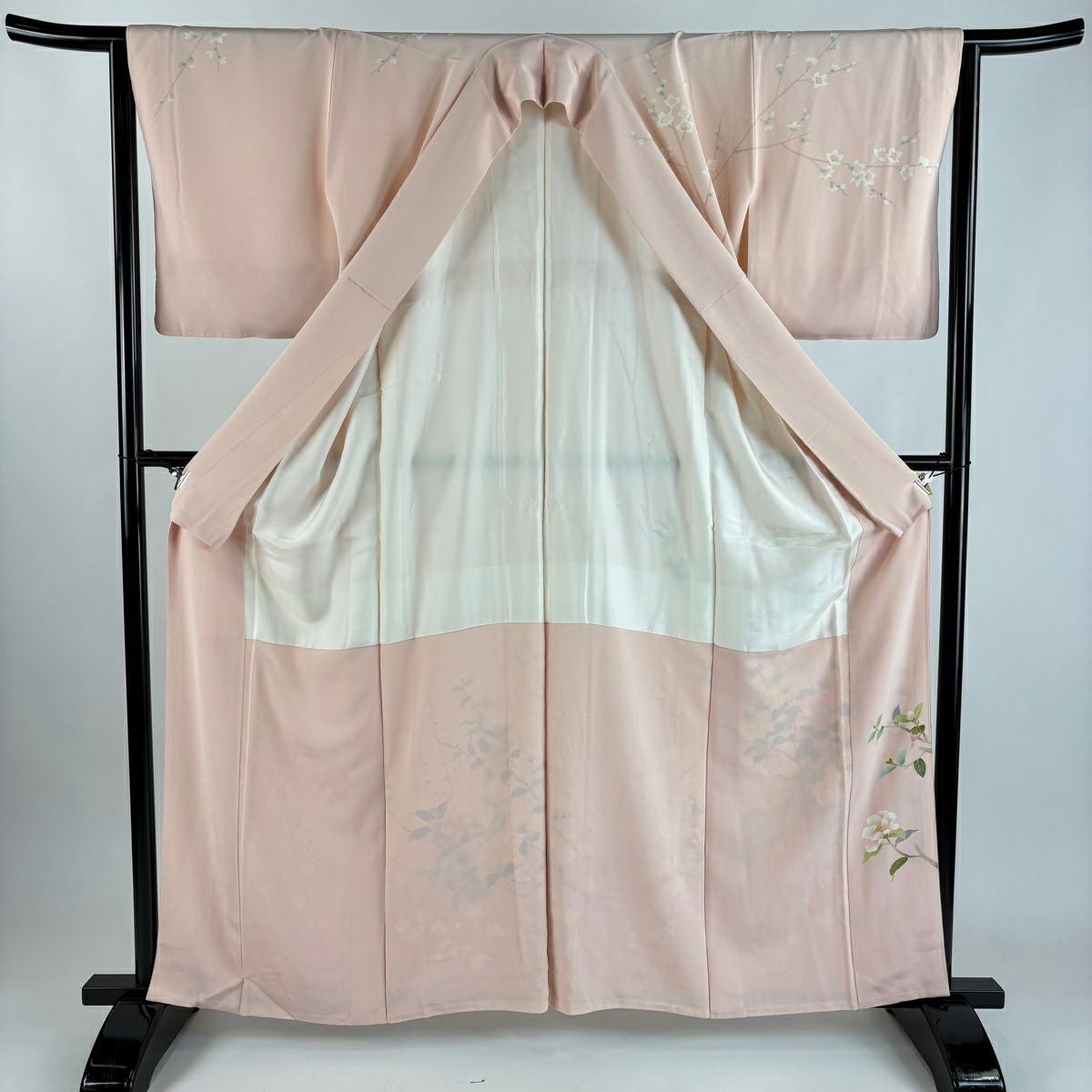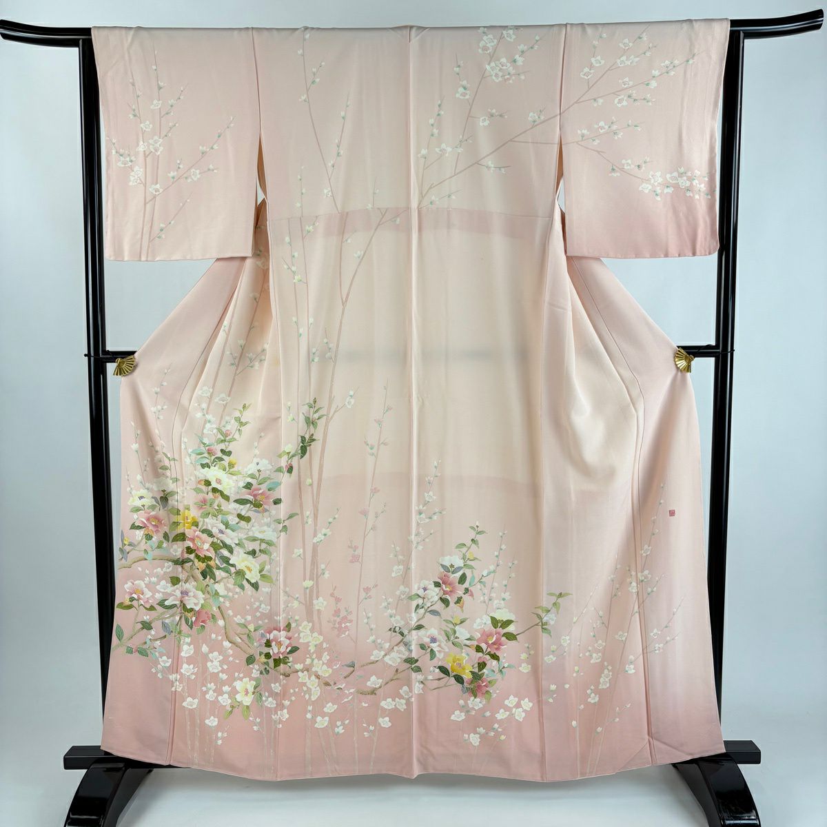 50%OFF 訪問着 身丈161.5cm 裄丈63.5cm S 袷 落款あり 枝花 薄ピンク 正絹 秀品 K50