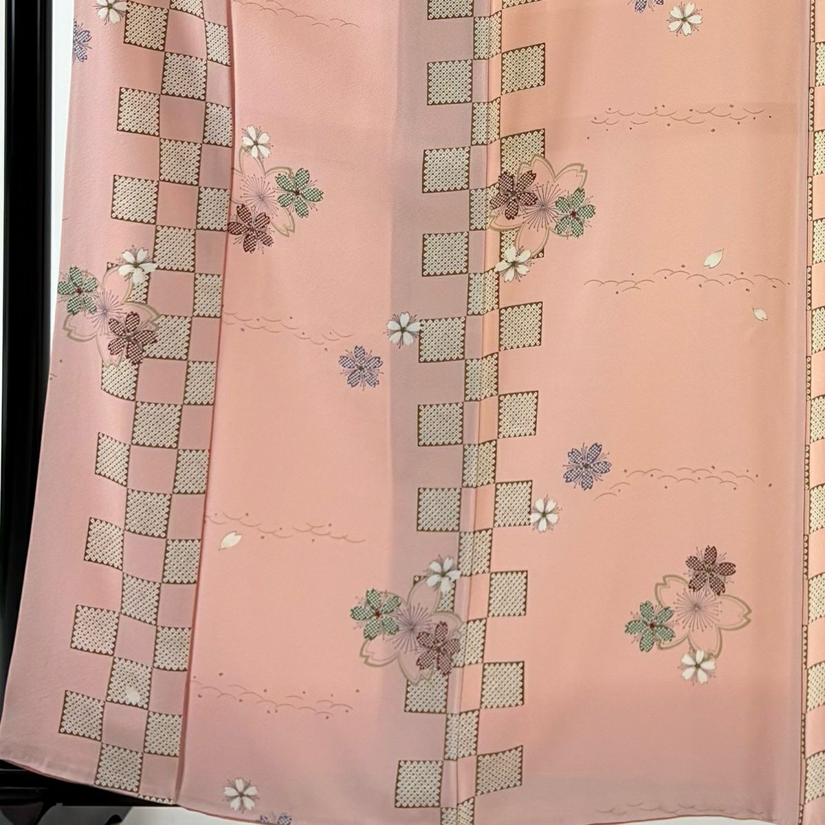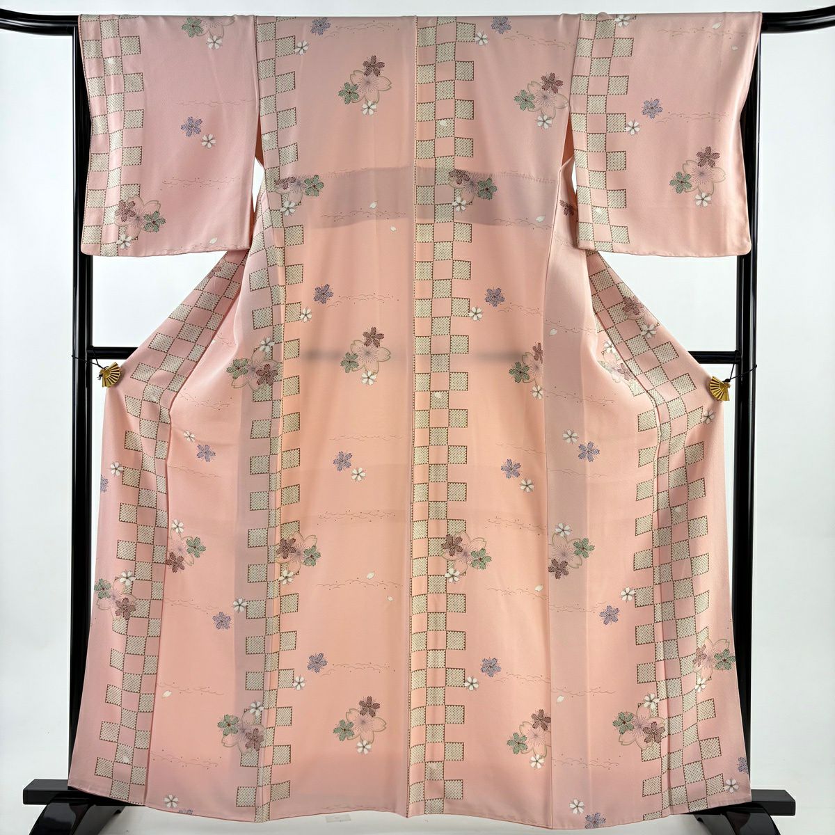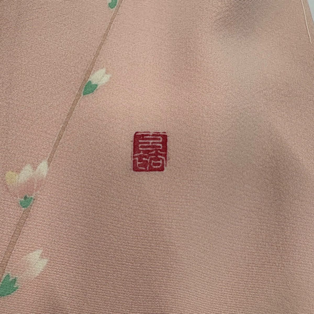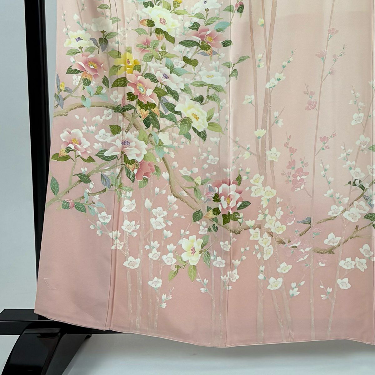 50%OFF 訪問着 身丈161.5cm 裄丈63.5cm S 袷 落款あり 枝花 薄ピンク 正絹 秀品 K50