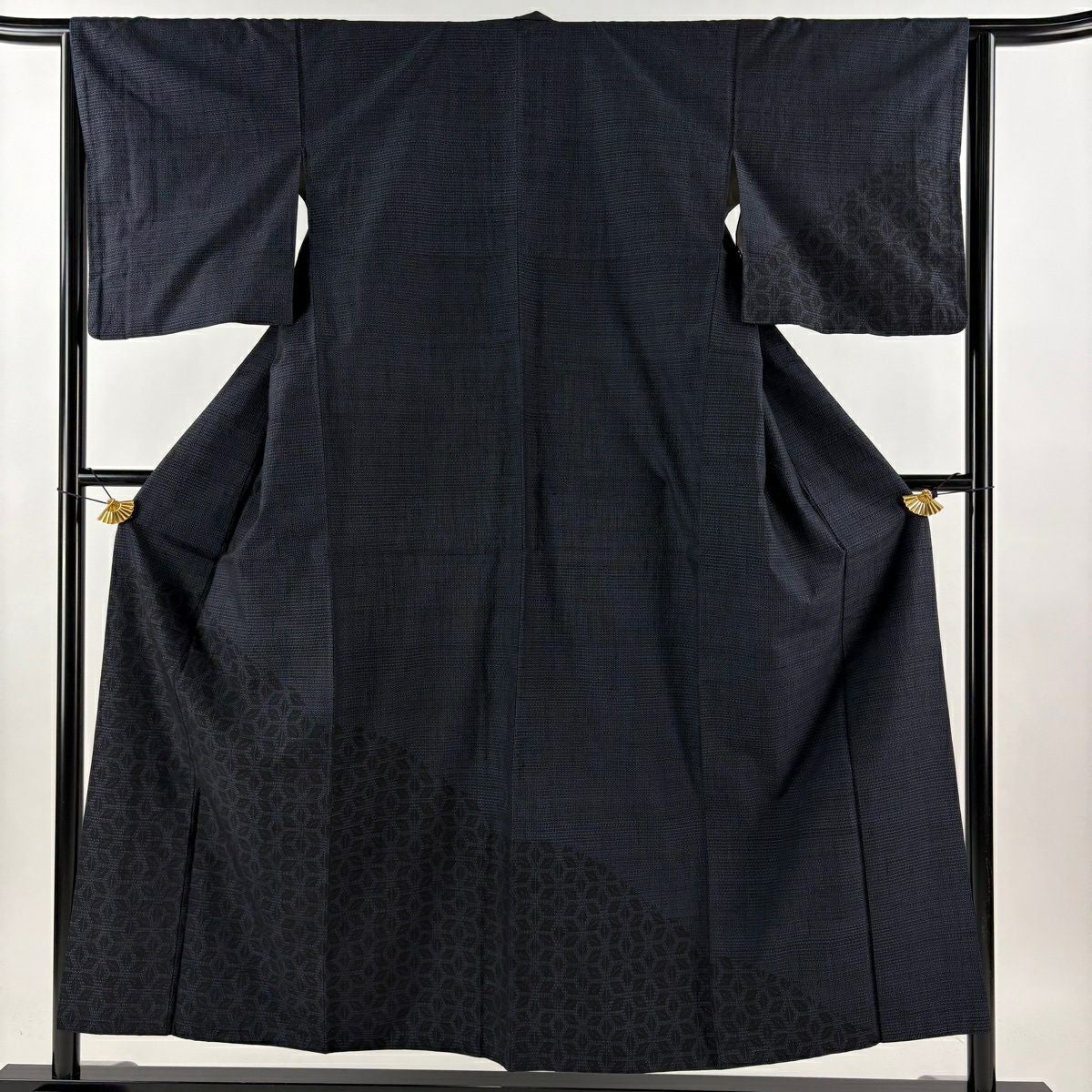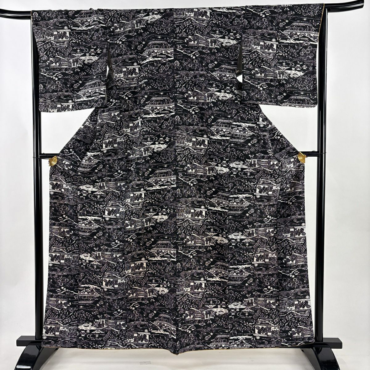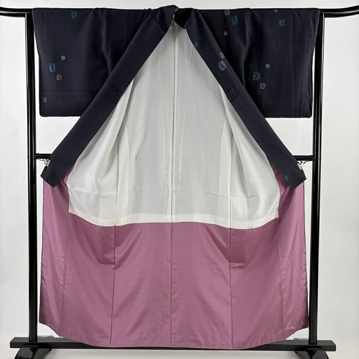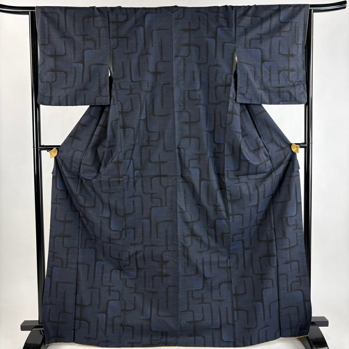 50%OFF 【美品】 小紋 身丈158cm 裄丈64cm M 袷 幾何学模様 絞り 墨色 正絹 秀品 K50