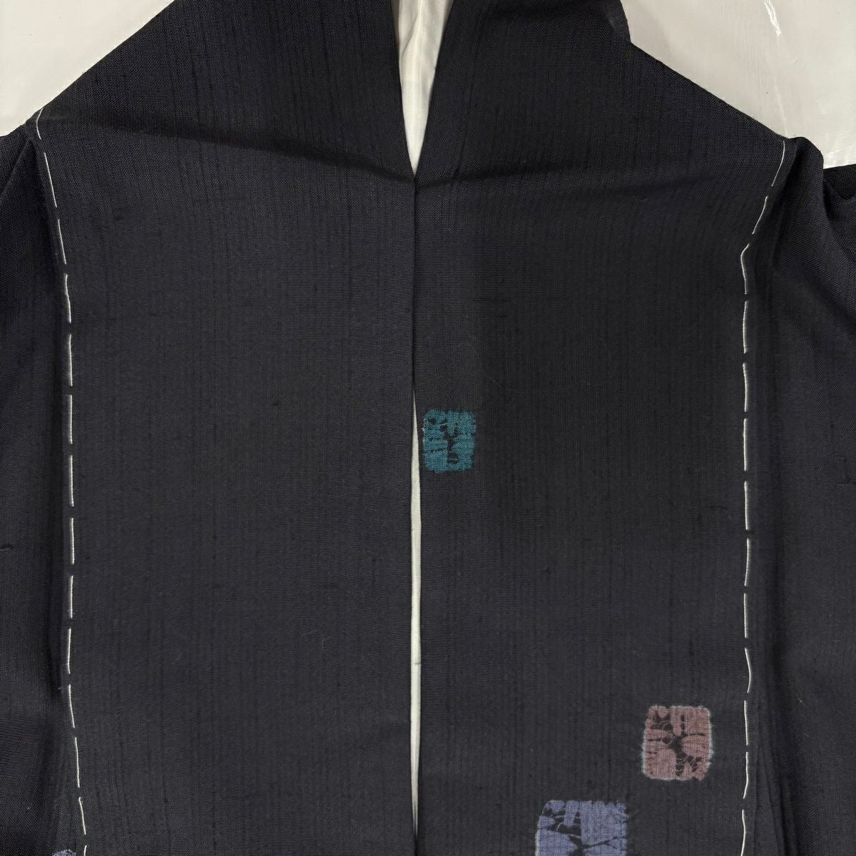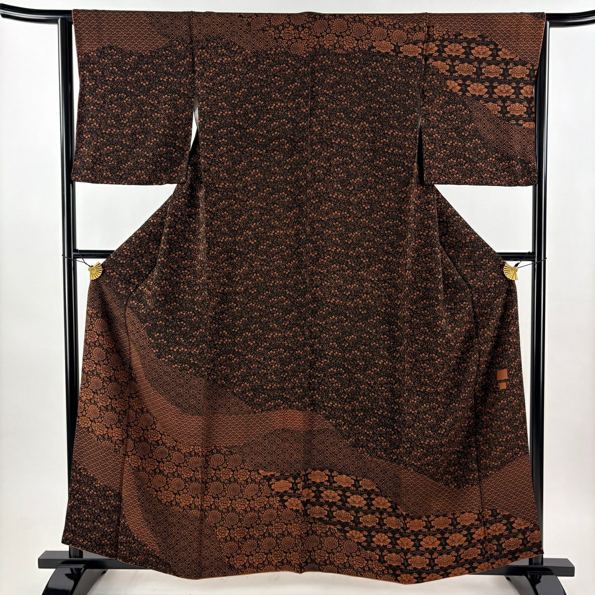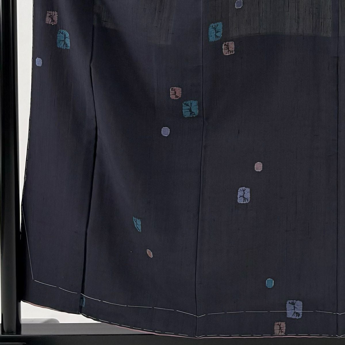 50%OFF 【美品】 小紋 身丈158cm 裄丈64cm M 袷 幾何学模様 絞り 墨色 正絹 秀品 K50