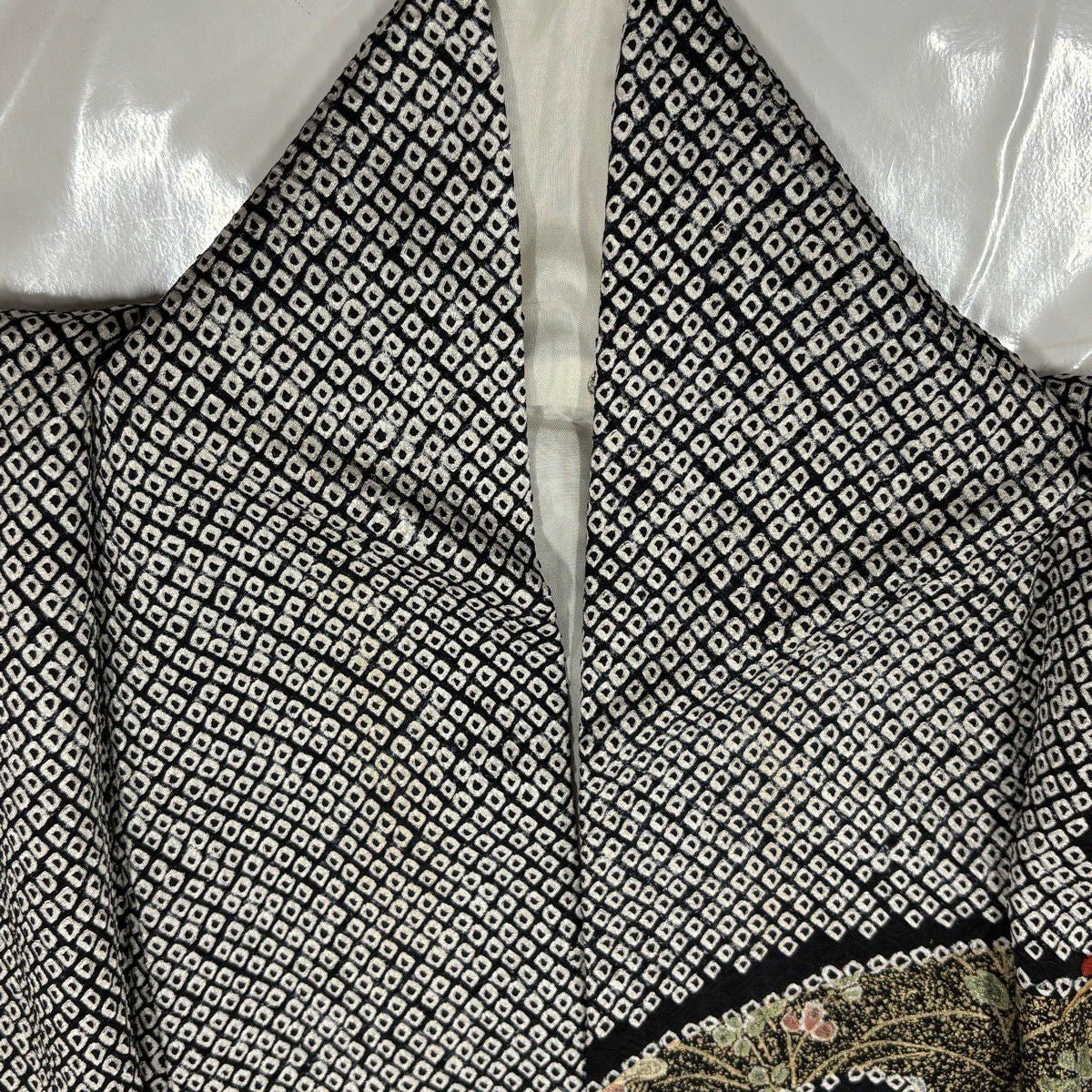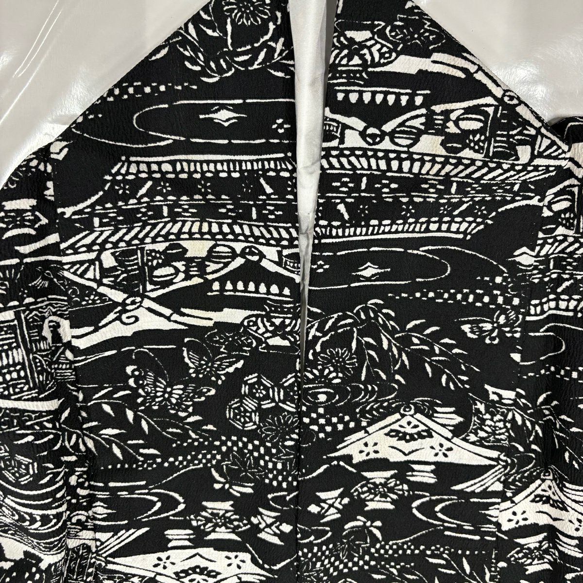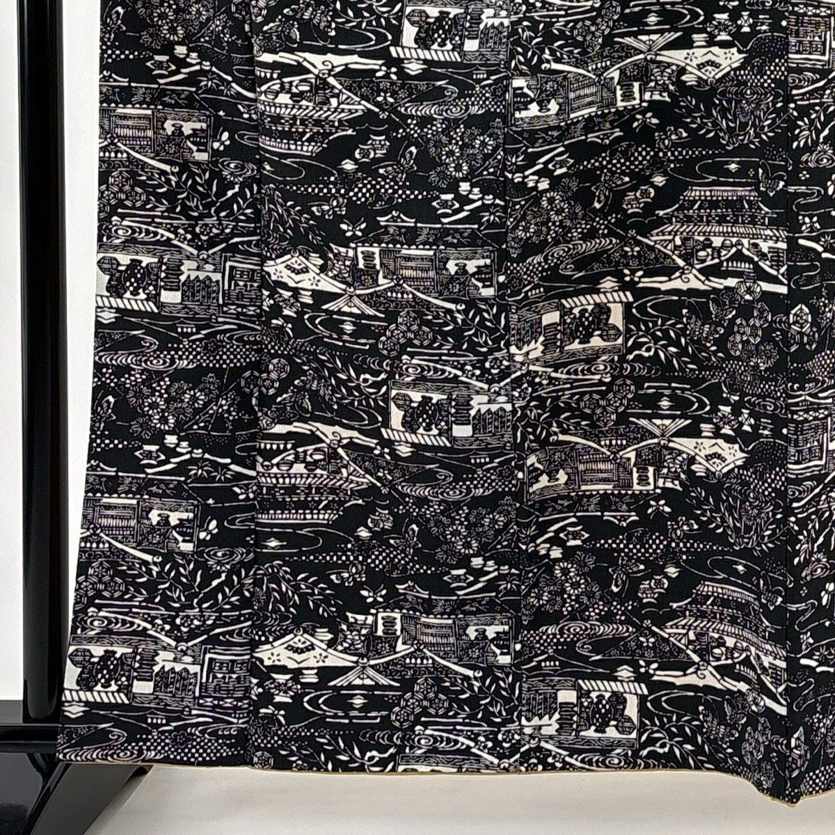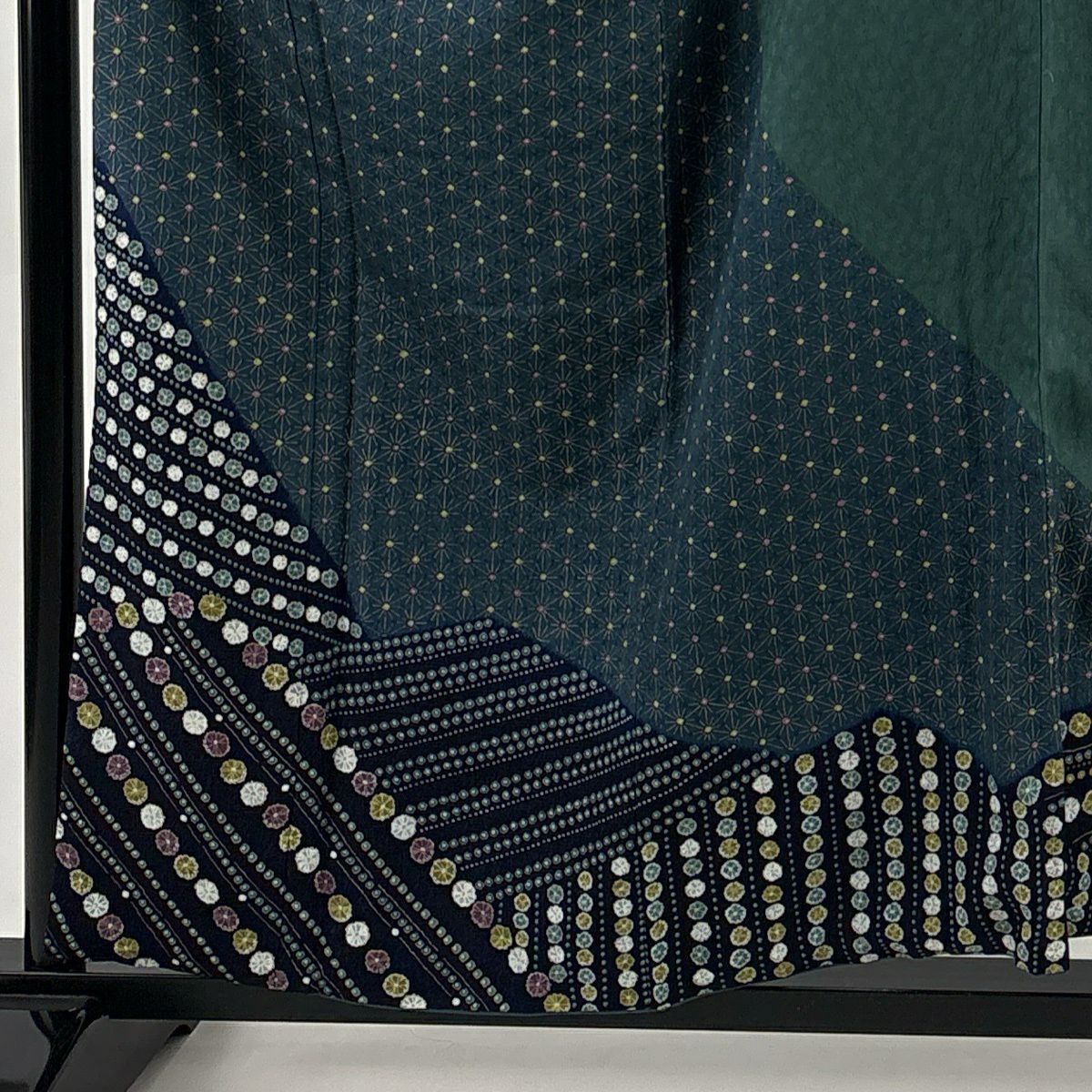 50%OFF 【美品】 小紋 身丈158cm 裄丈64cm M 袷 幾何学模様 絞り 墨色 正絹 秀品 K50