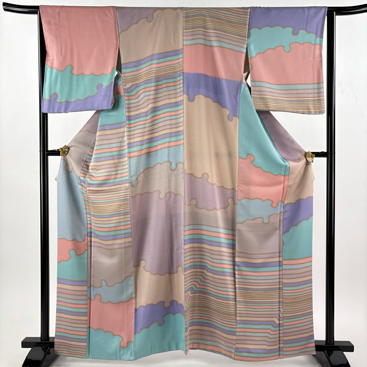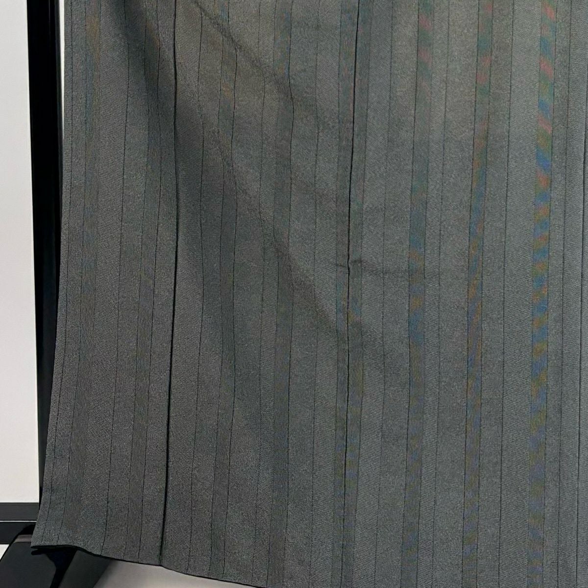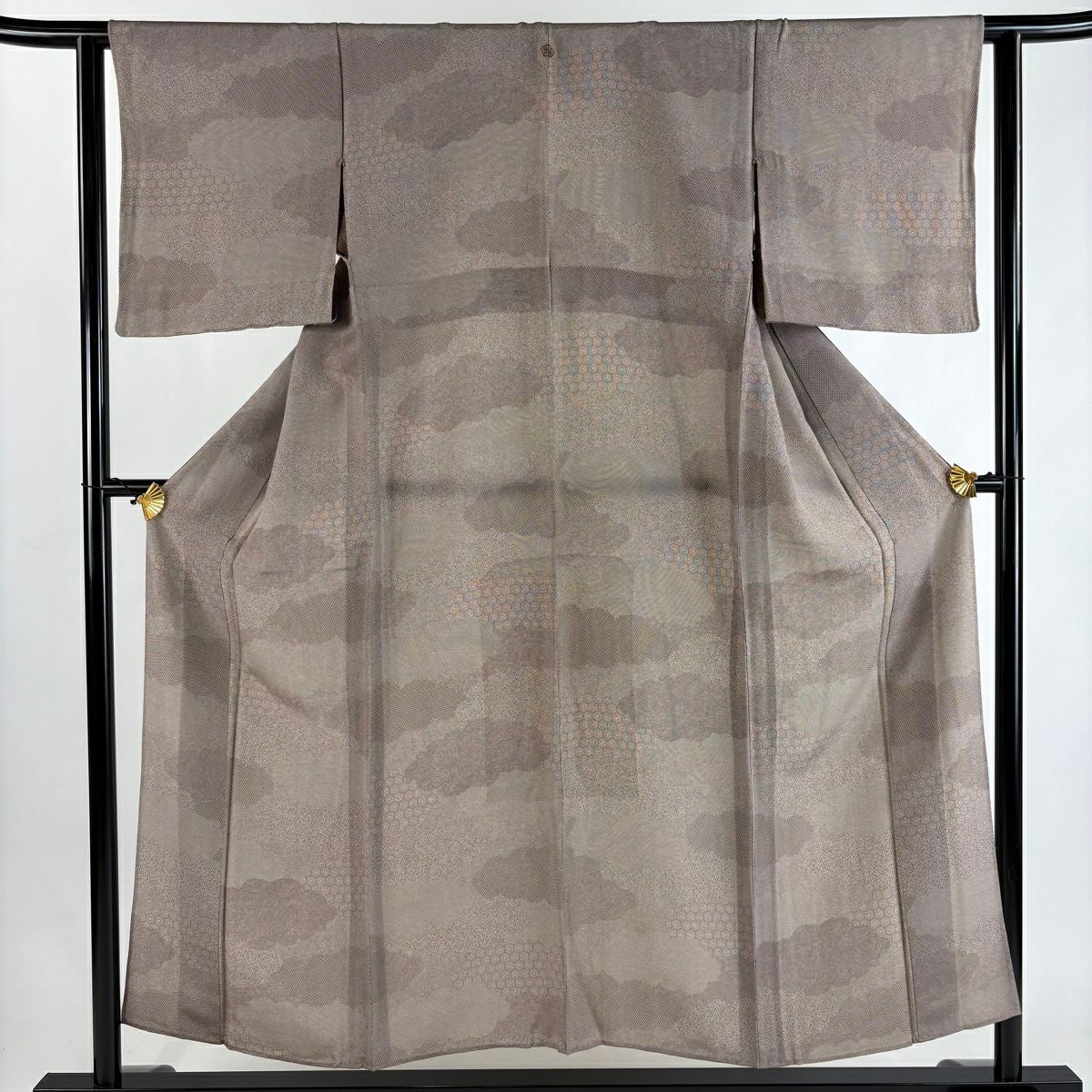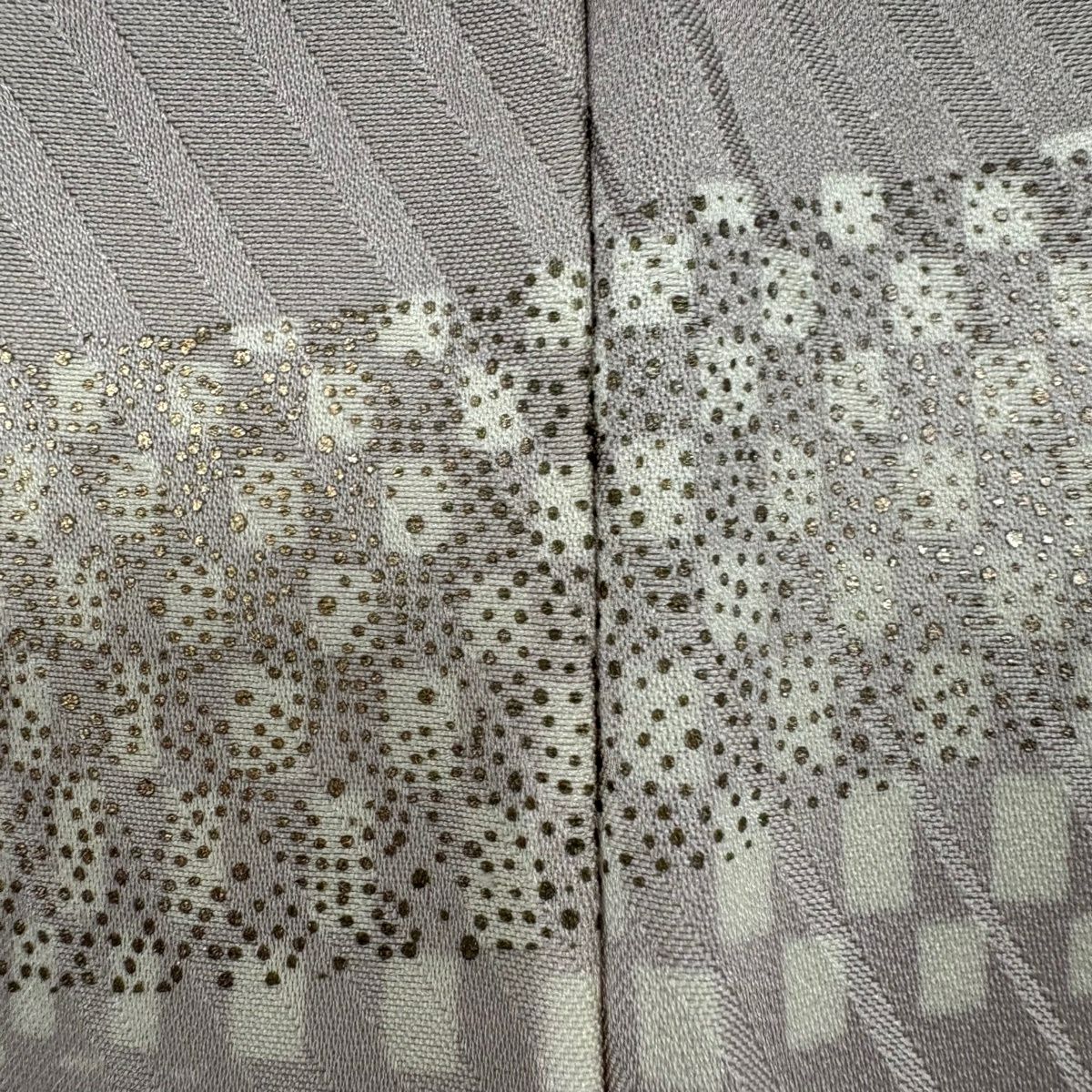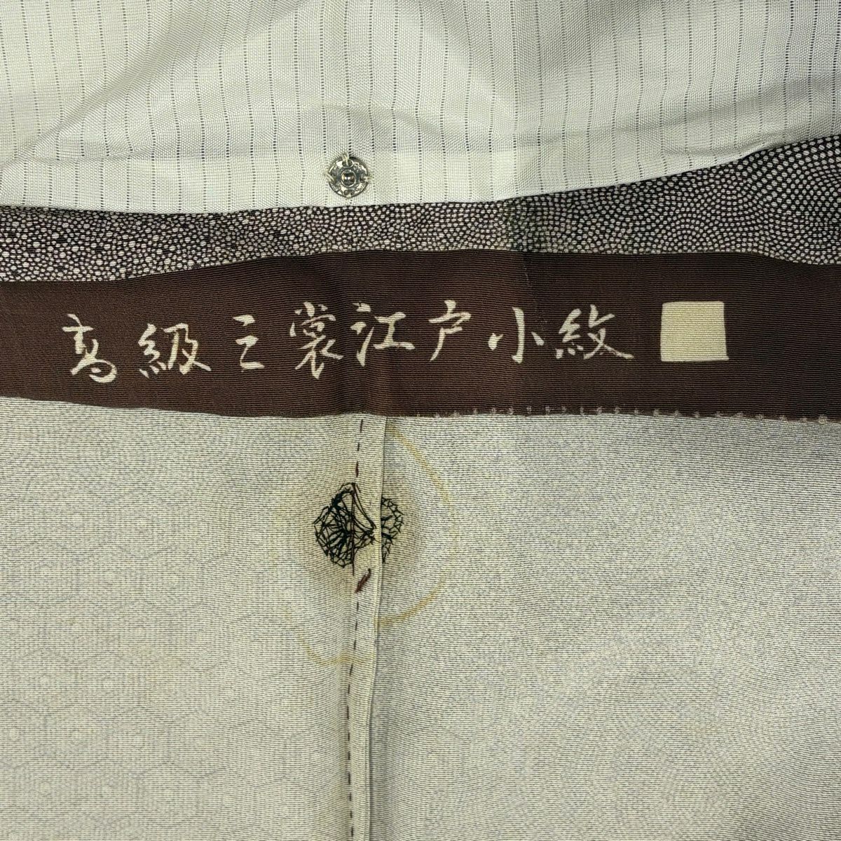 50%OFF 【美品】 小紋 身丈166cm 裄丈62cm S 袷 さんび 縦縞 鮫 灰色 化繊 秀品 K50