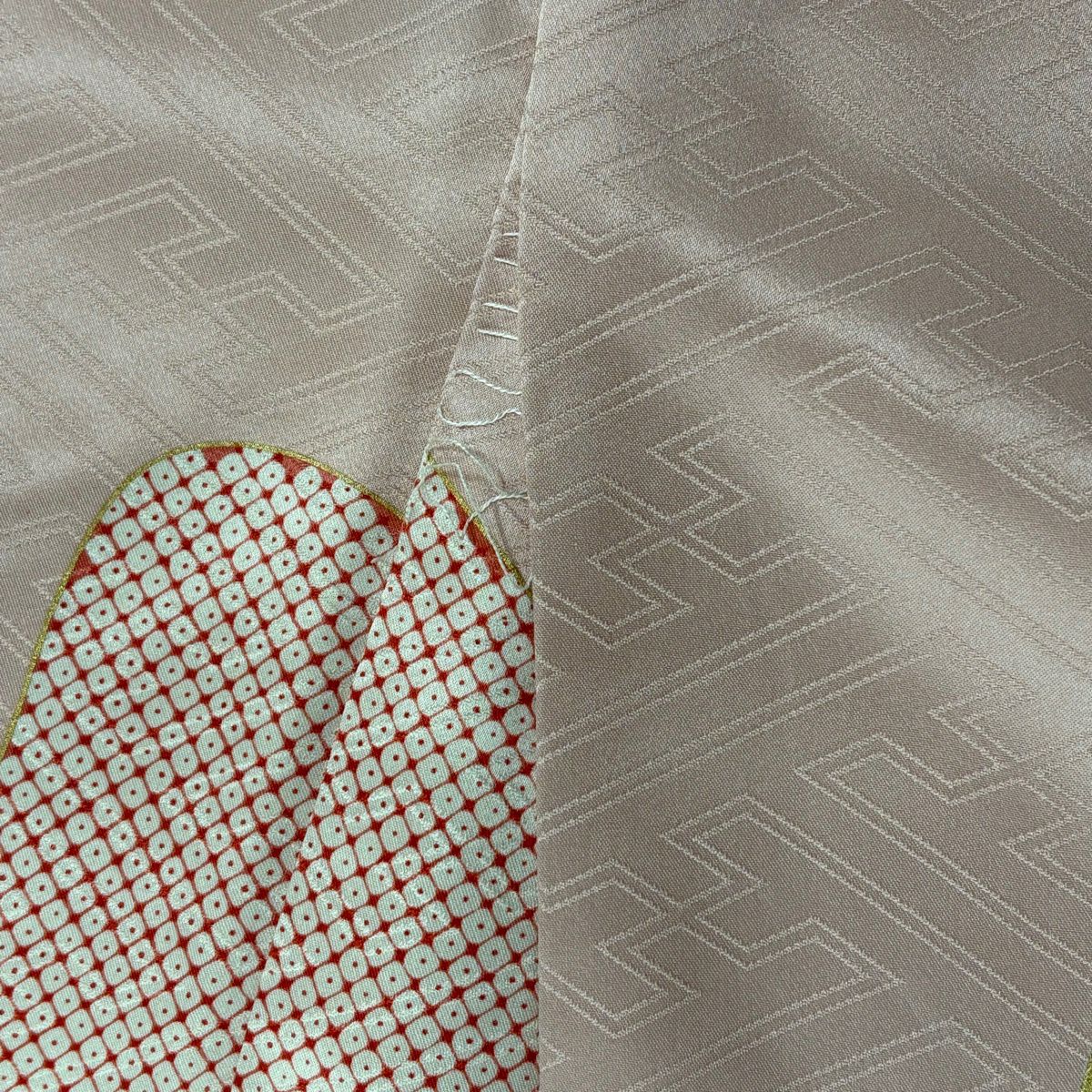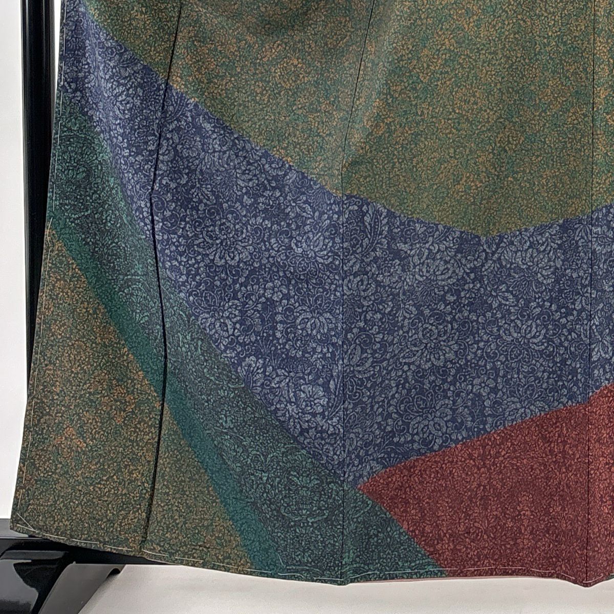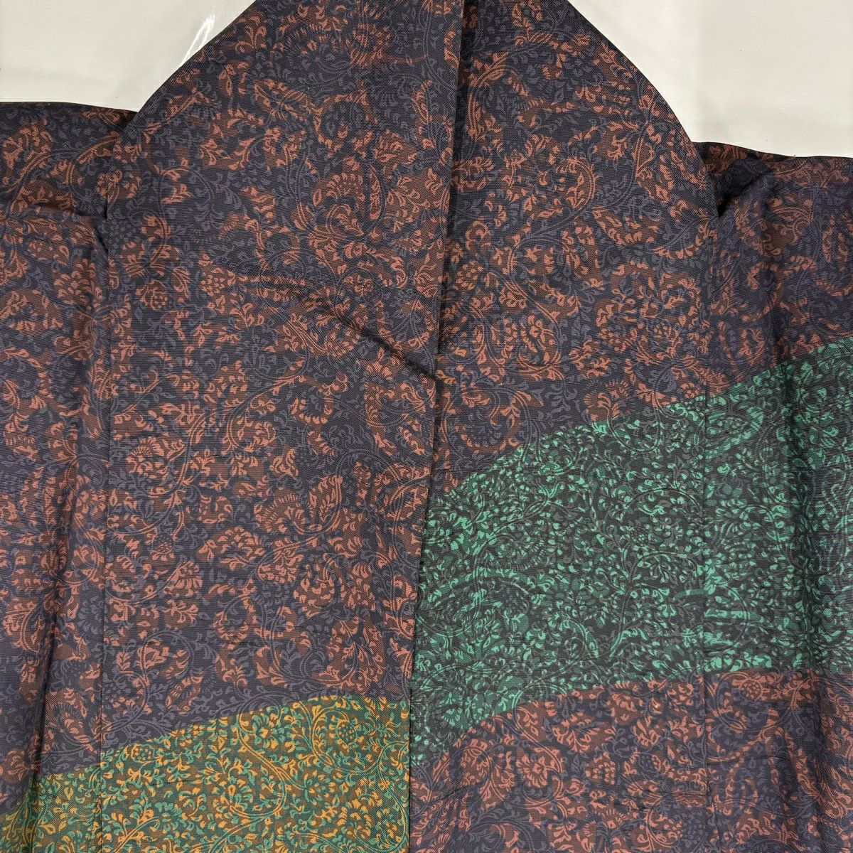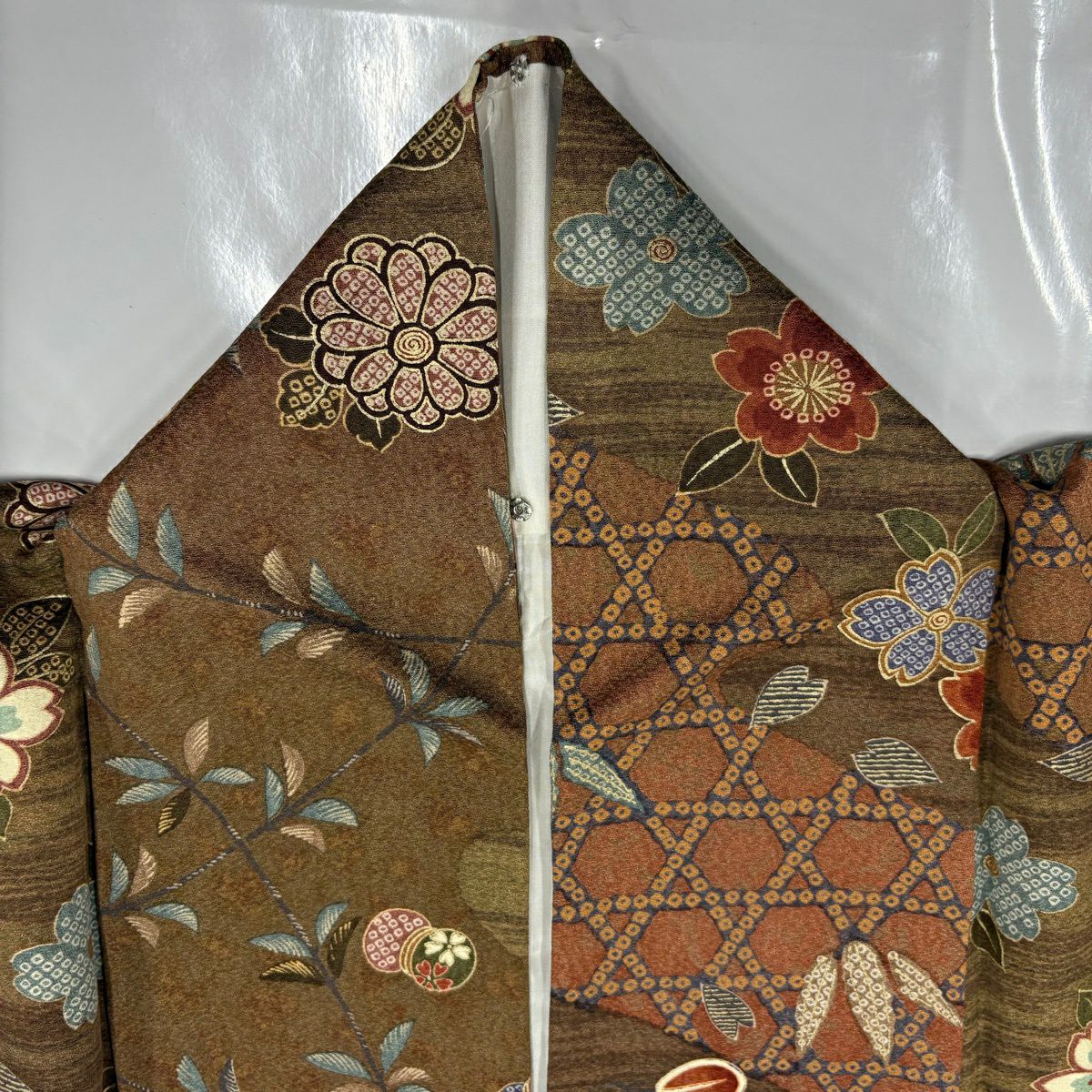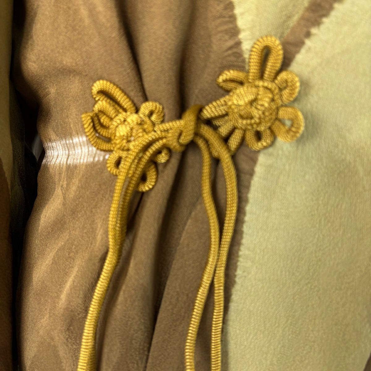 50%OFF 道中着 身丈98cm 裄丈64.5cm M 和装コート 蟹 霞 絞り 抹茶色 正絹 秀品 K50
