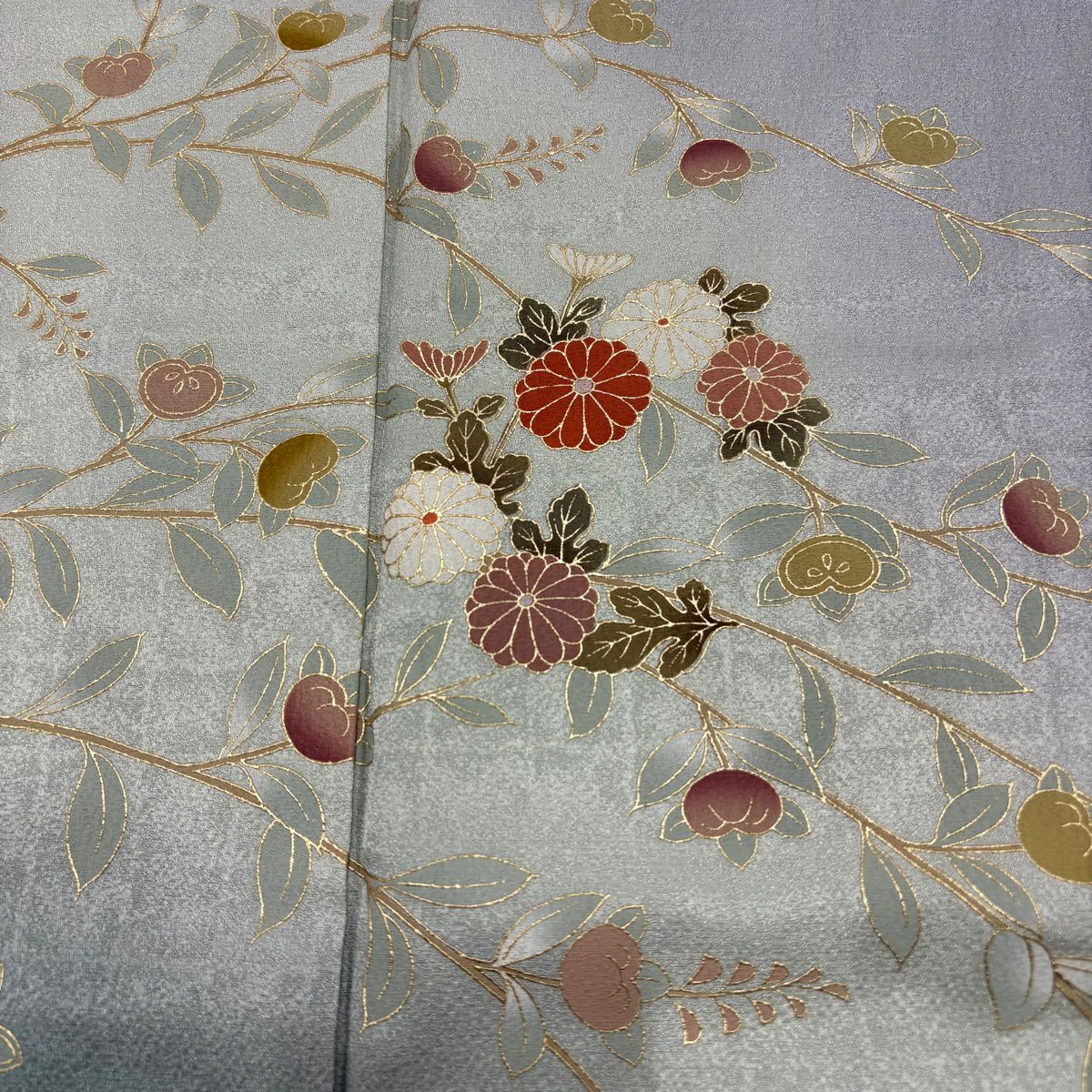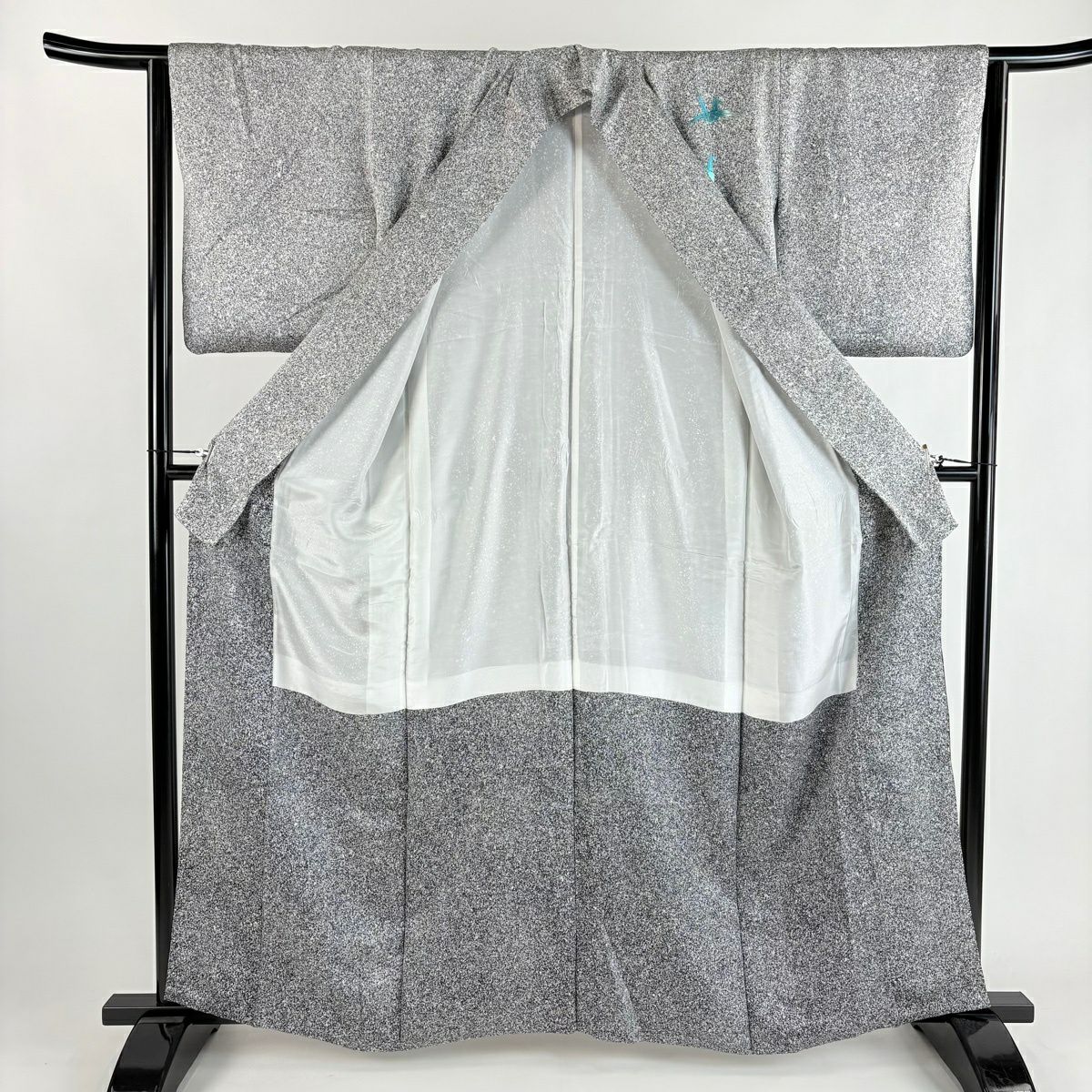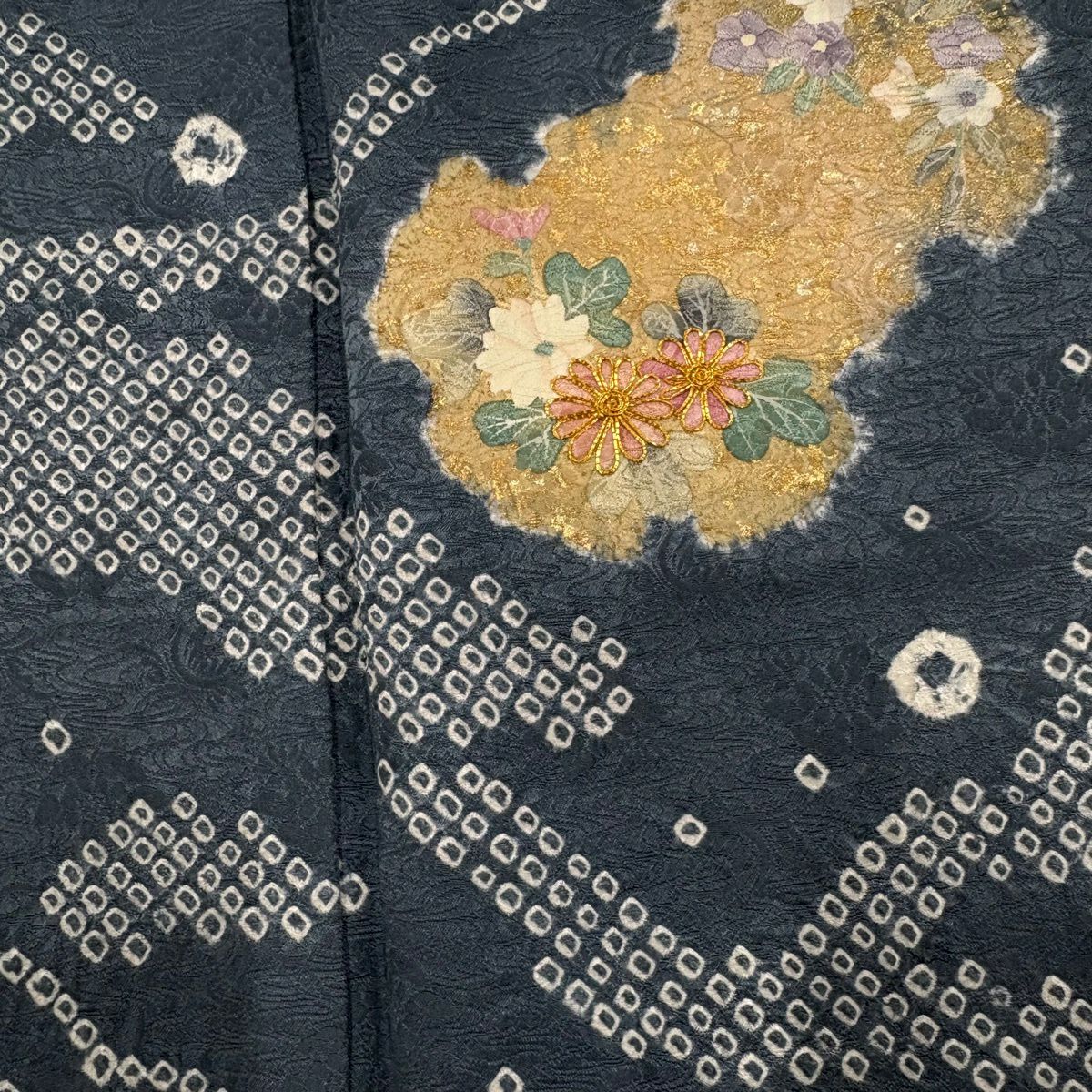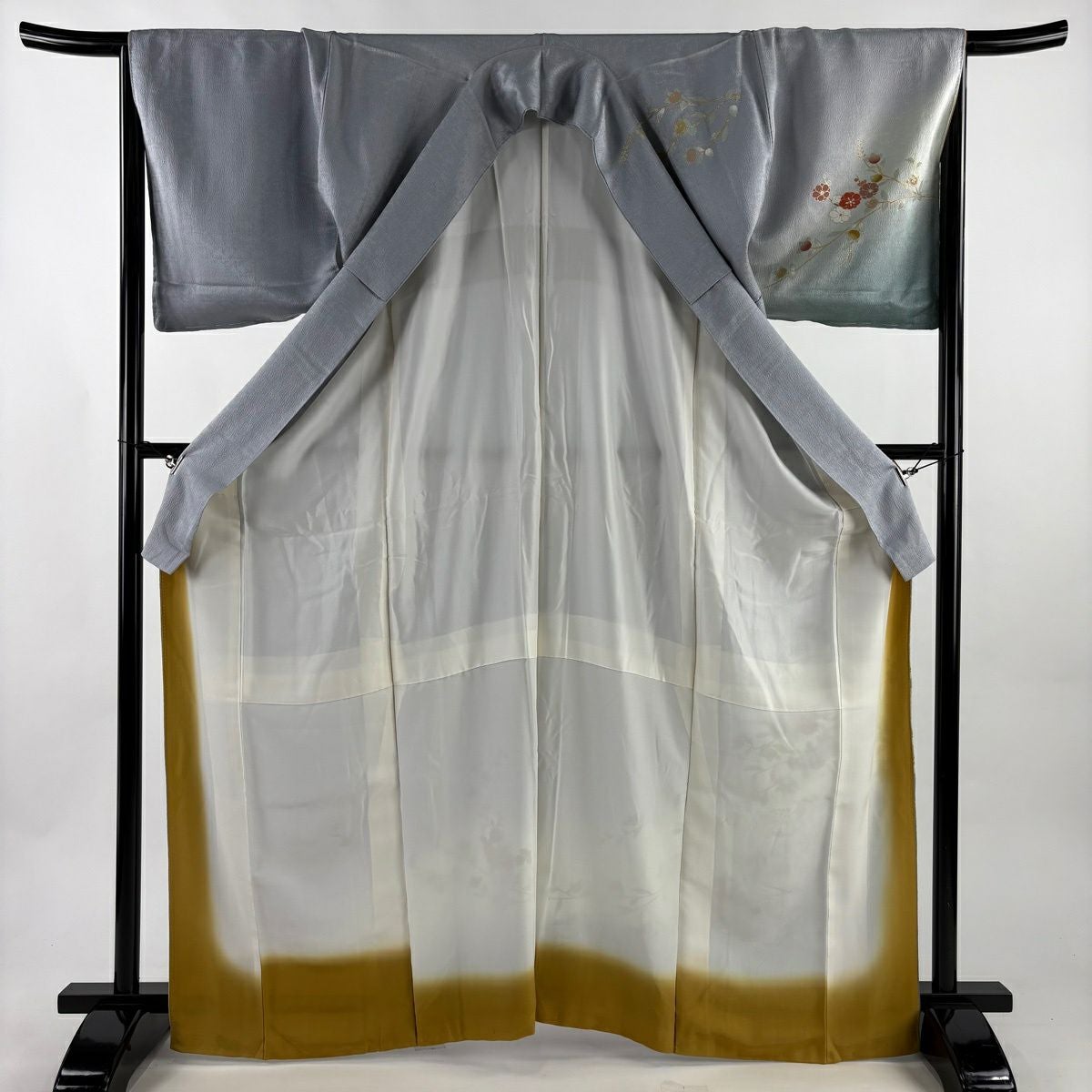 50%OFF 付下げ 身丈163.5cm 裄丈66.5cm M 袷 草花 絞り 金銀彩 青灰色 正絹 秀品 K50