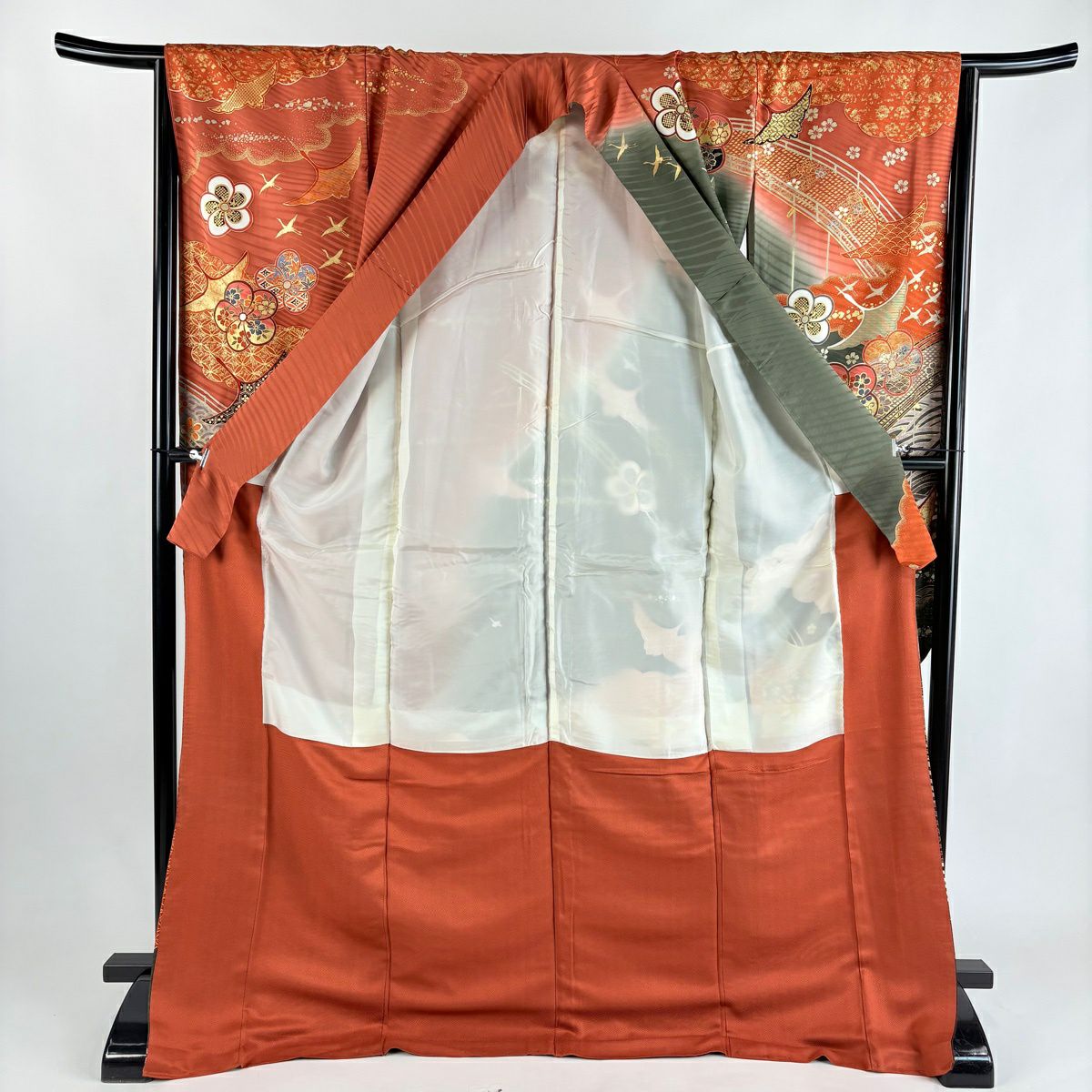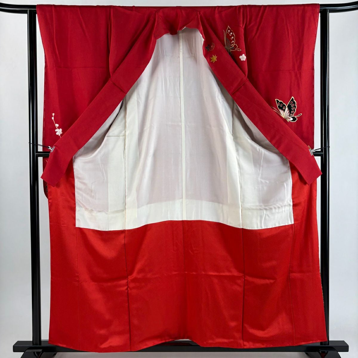 50%OFF 【美品】 振袖 身丈159cm 裄丈63cm S 袷 蝶 花車 金糸 金彩 赤 正絹 秀品 K50