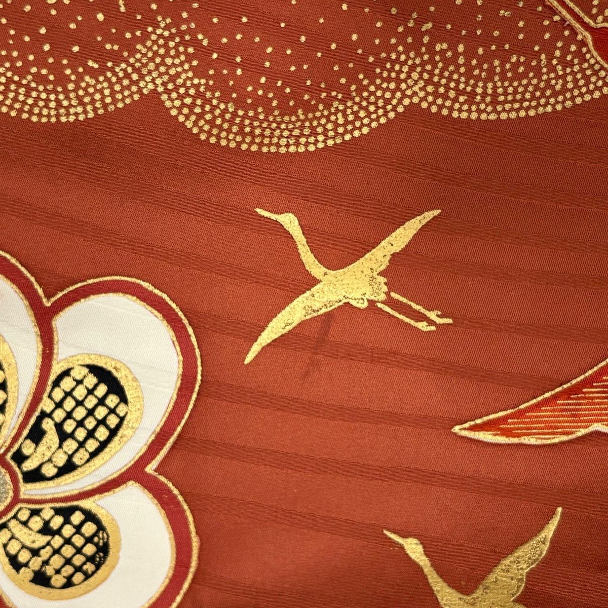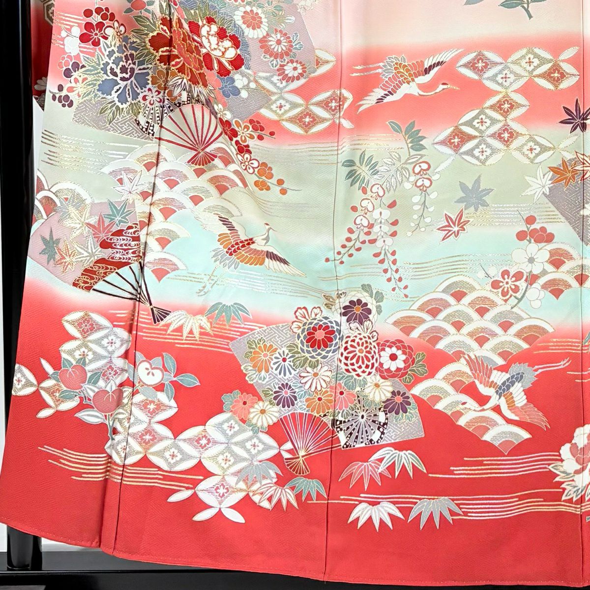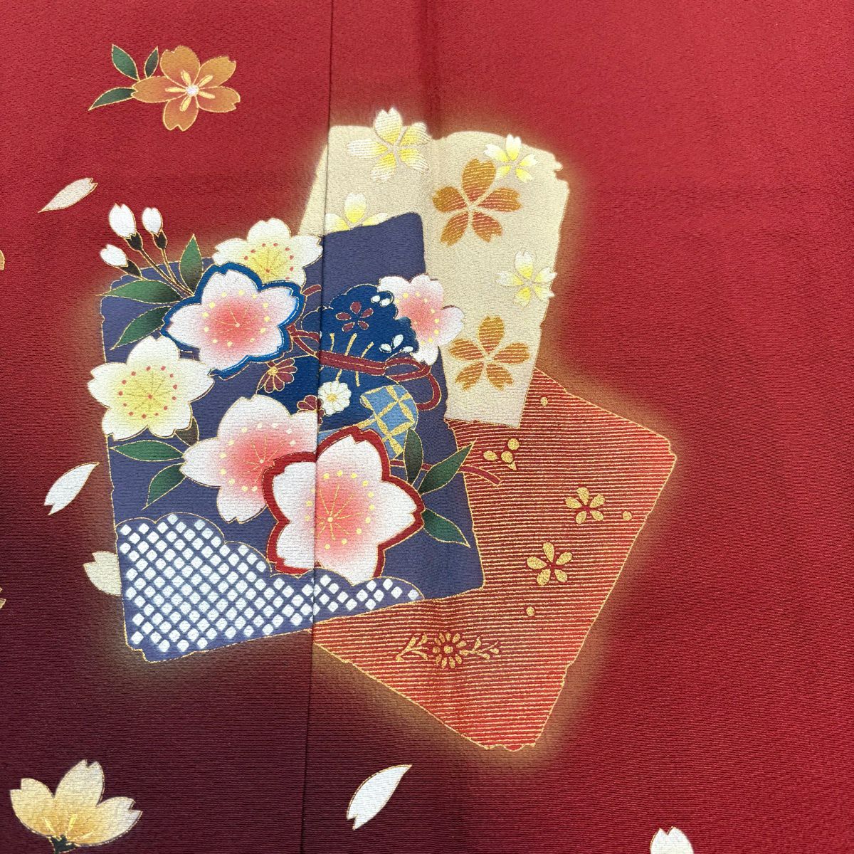 50%OFF 振袖 身丈156cm 裄丈64cm M 袷 破れ色紙 桜 金彩 ぼかし 茜色 正絹 秀品 K50