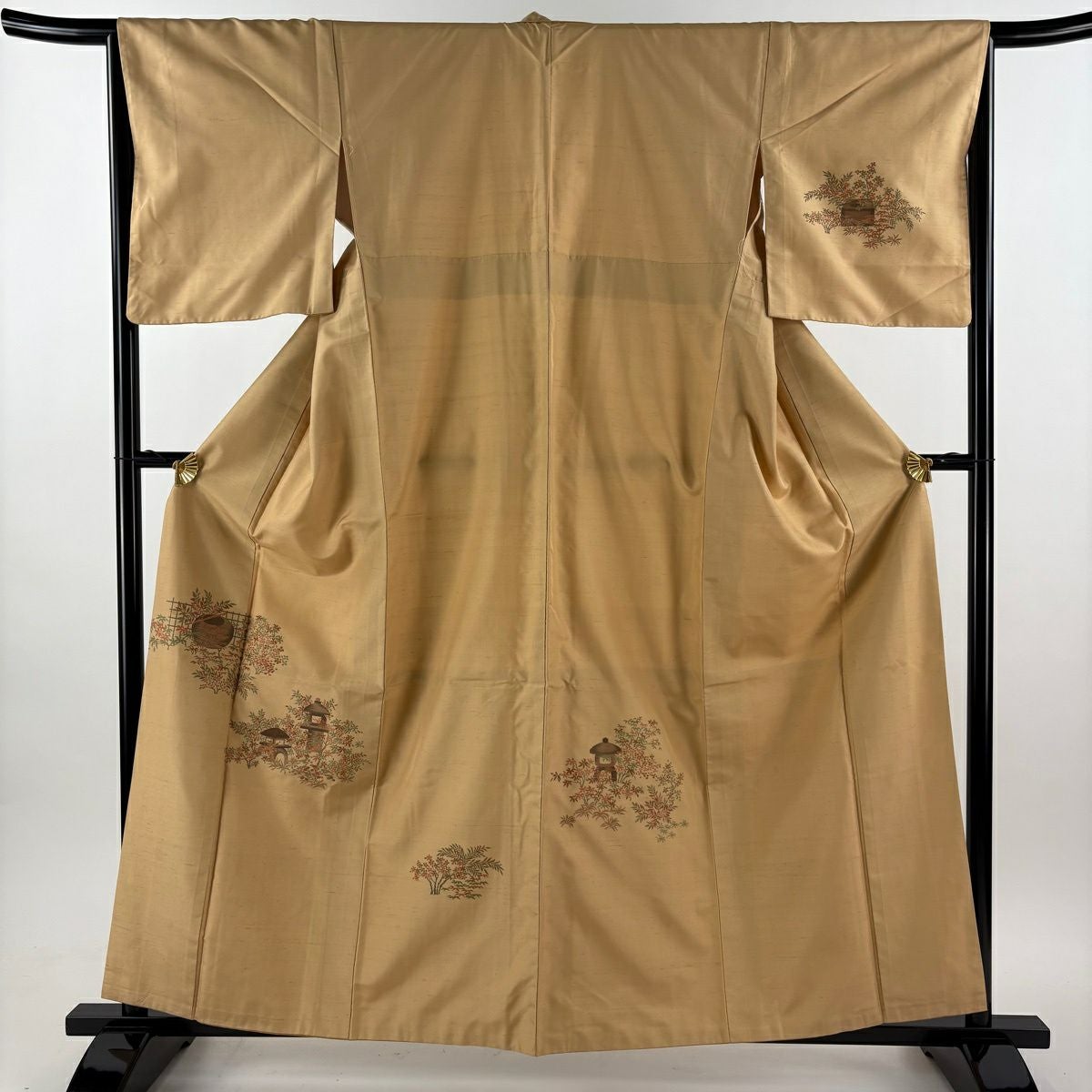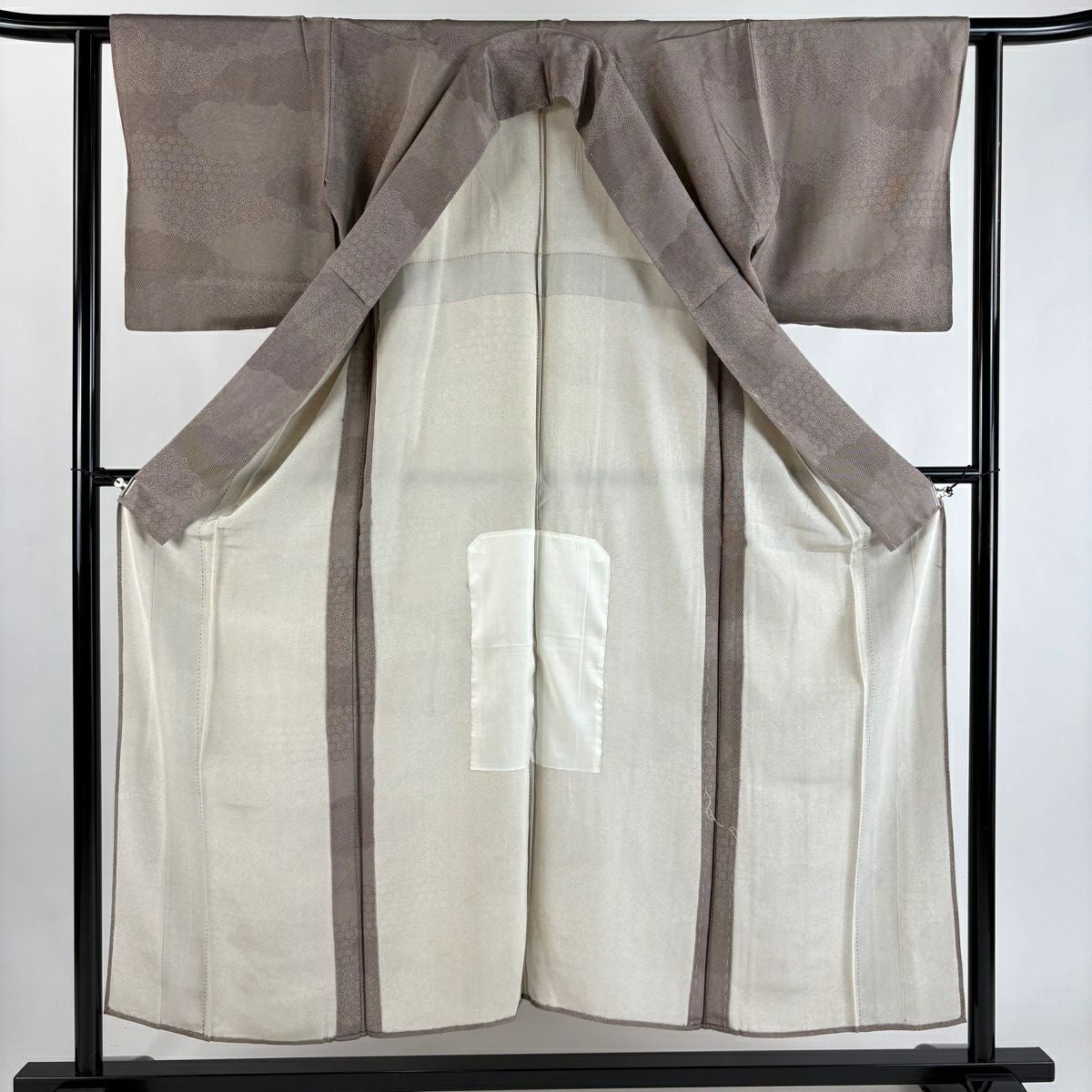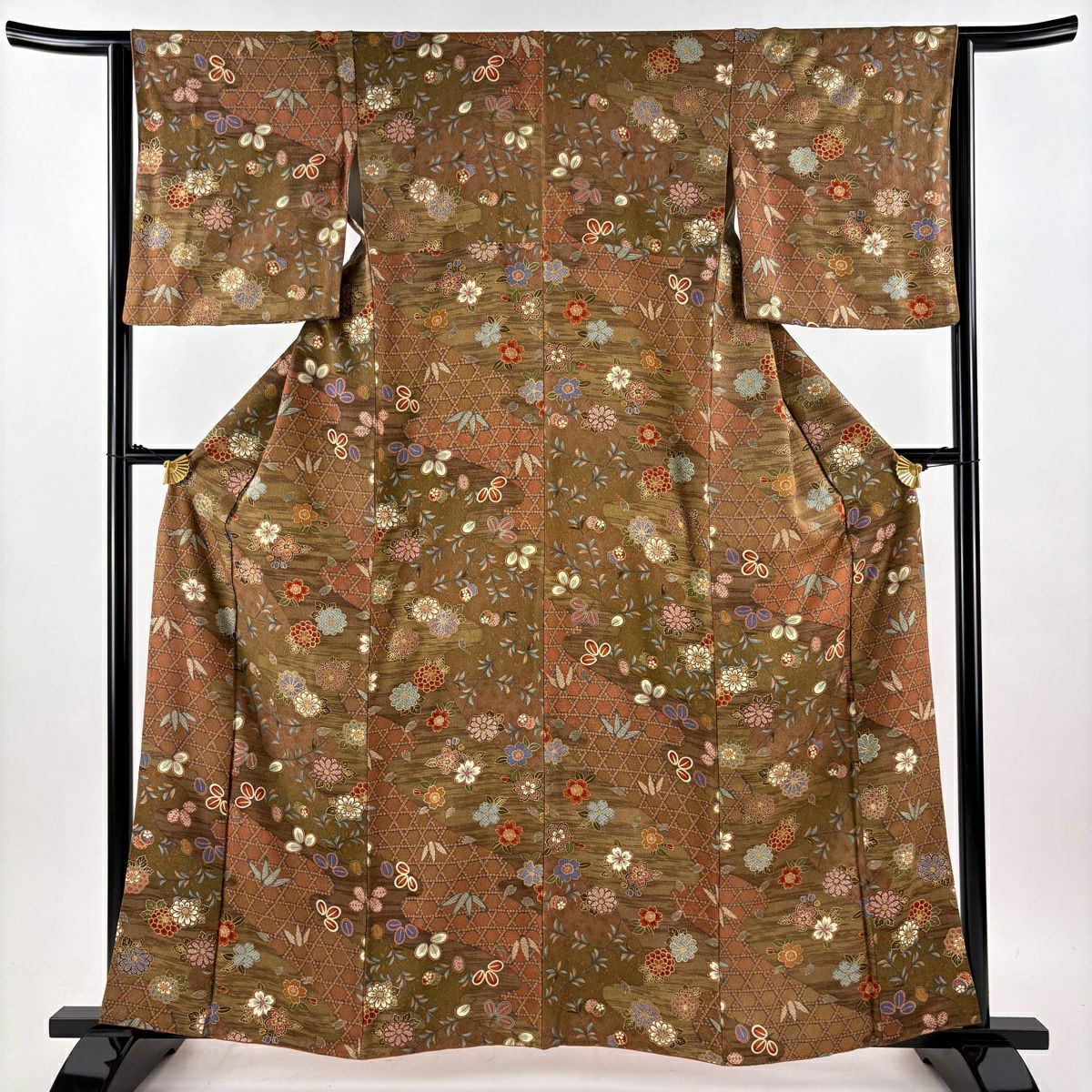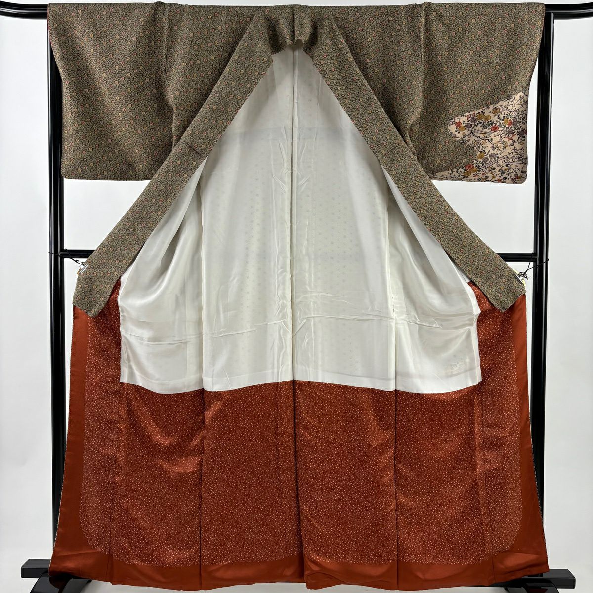 50%OFF 付下げ 身丈158.5cm 裄丈64.5cm M 袷 紬地 灯篭 葉と実 薄茶色 正絹 秀品 K50