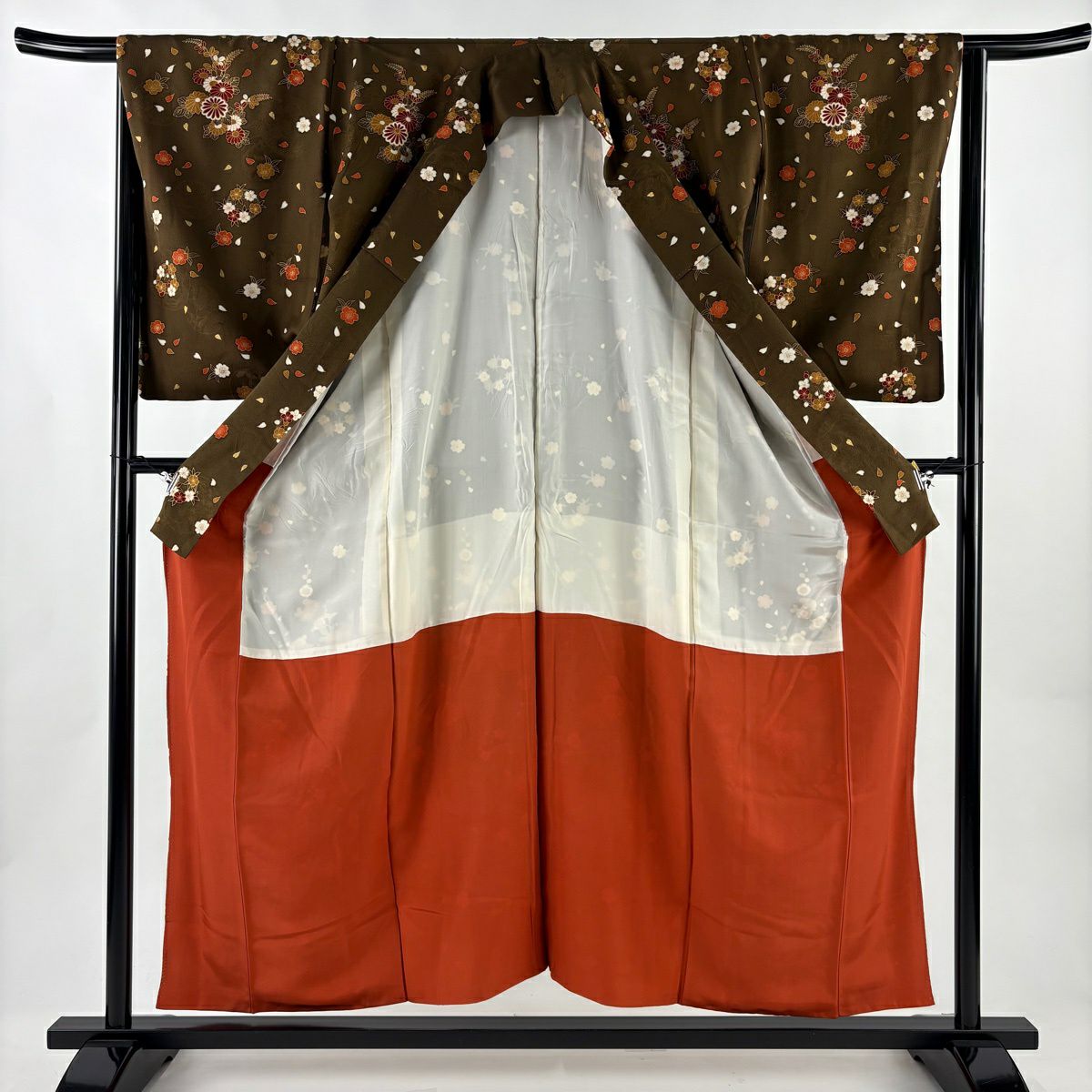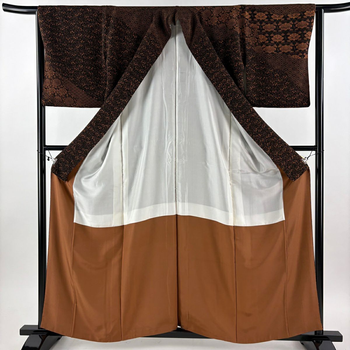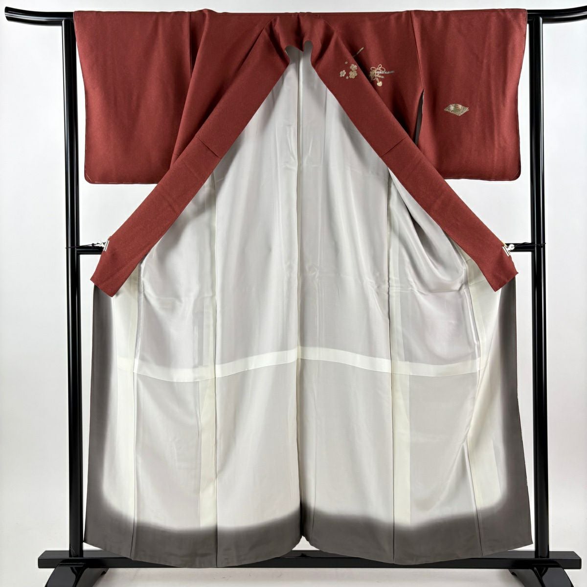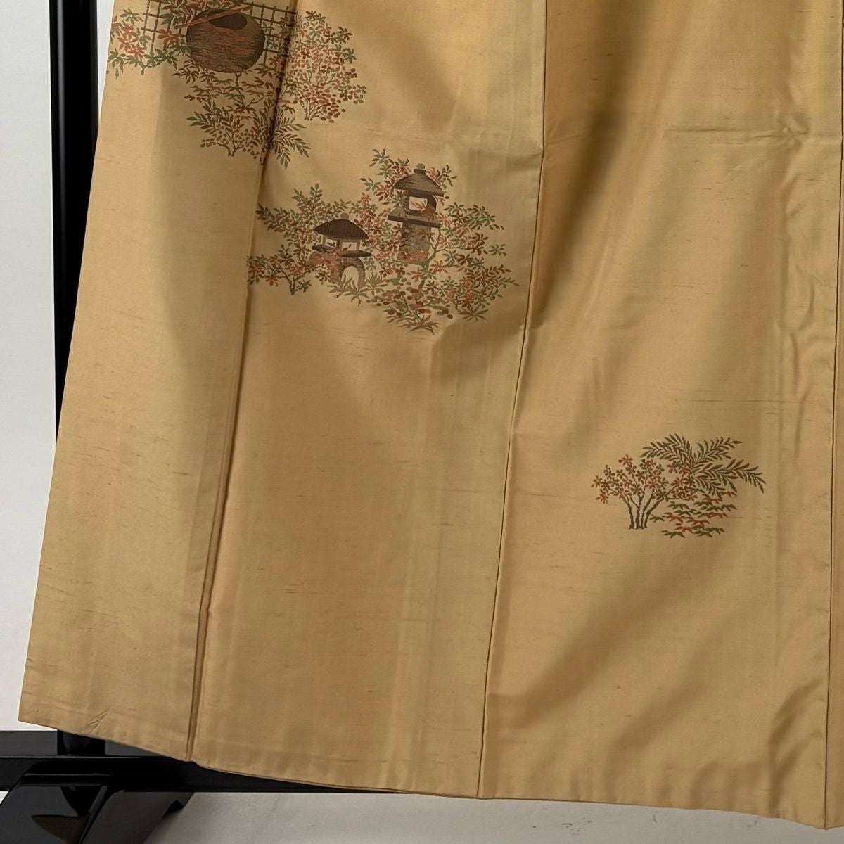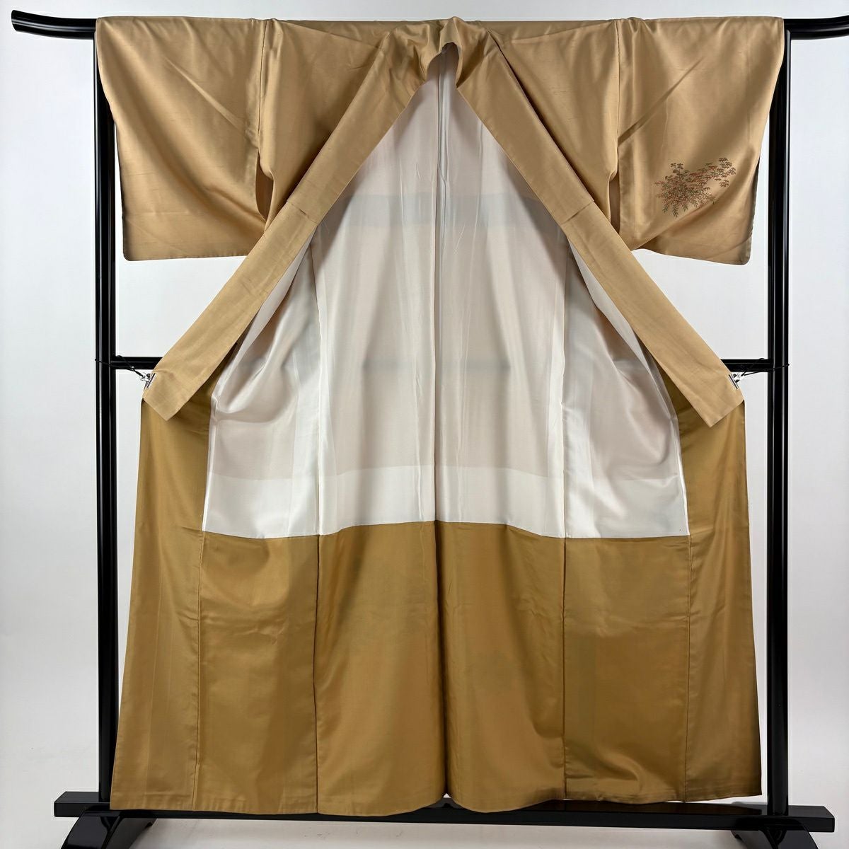 50%OFF 付下げ 身丈158.5cm 裄丈64.5cm M 袷 紬地 灯篭 葉と実 薄茶色 正絹 秀品 K50