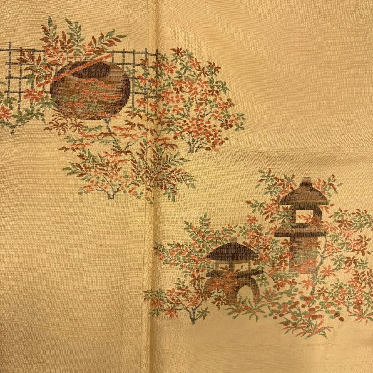 50%OFF 【美品】 名古屋帯 秀品 八寸名古屋帯 松葉仕立て 霞 破れ色紙 金銀糸 ベージュ 正絹 K50