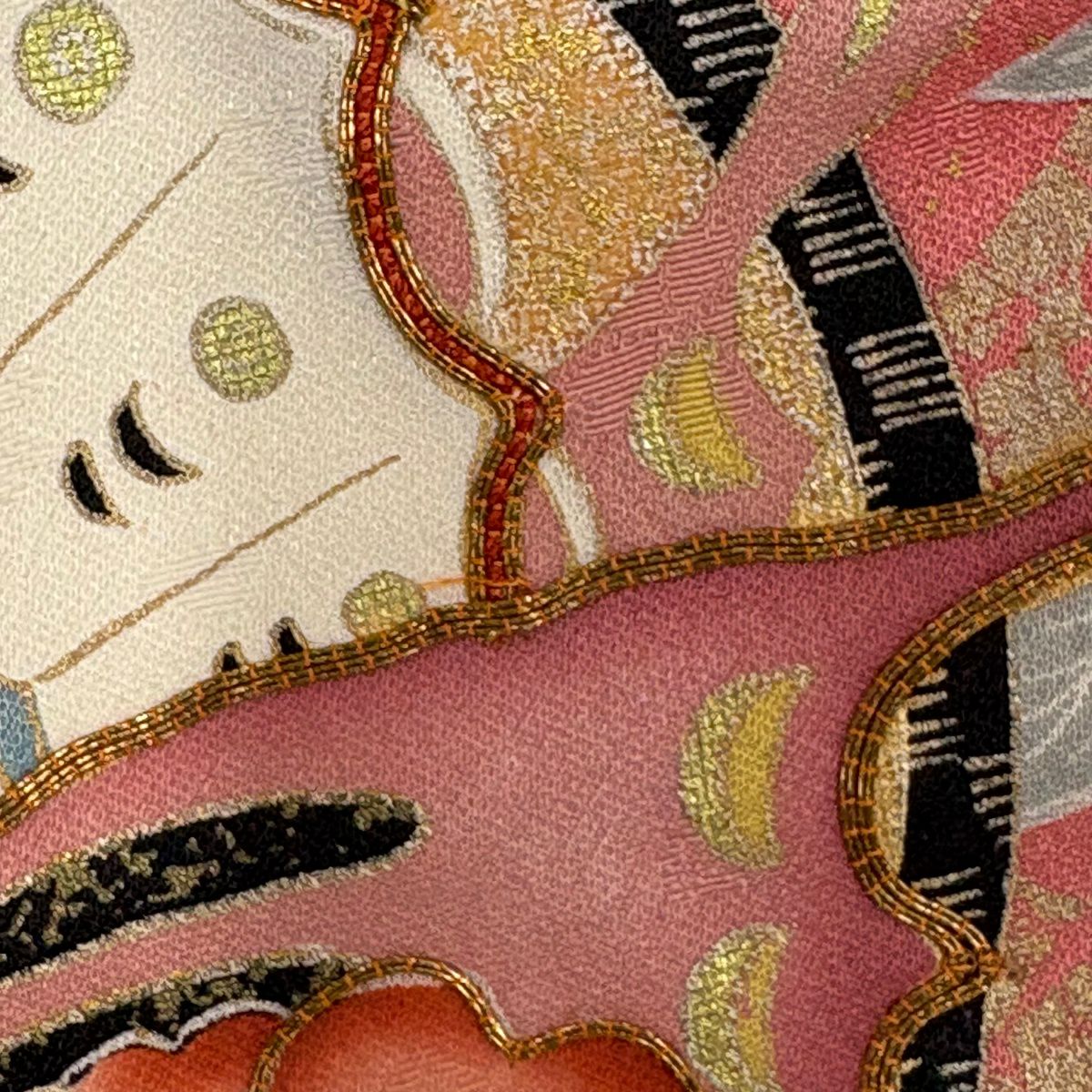 50%OFF 訪問着 身丈164cm 裄丈67cm M 袷 蝶 枝花 刺繍 金彩 ピンク 正絹 秀品 K50