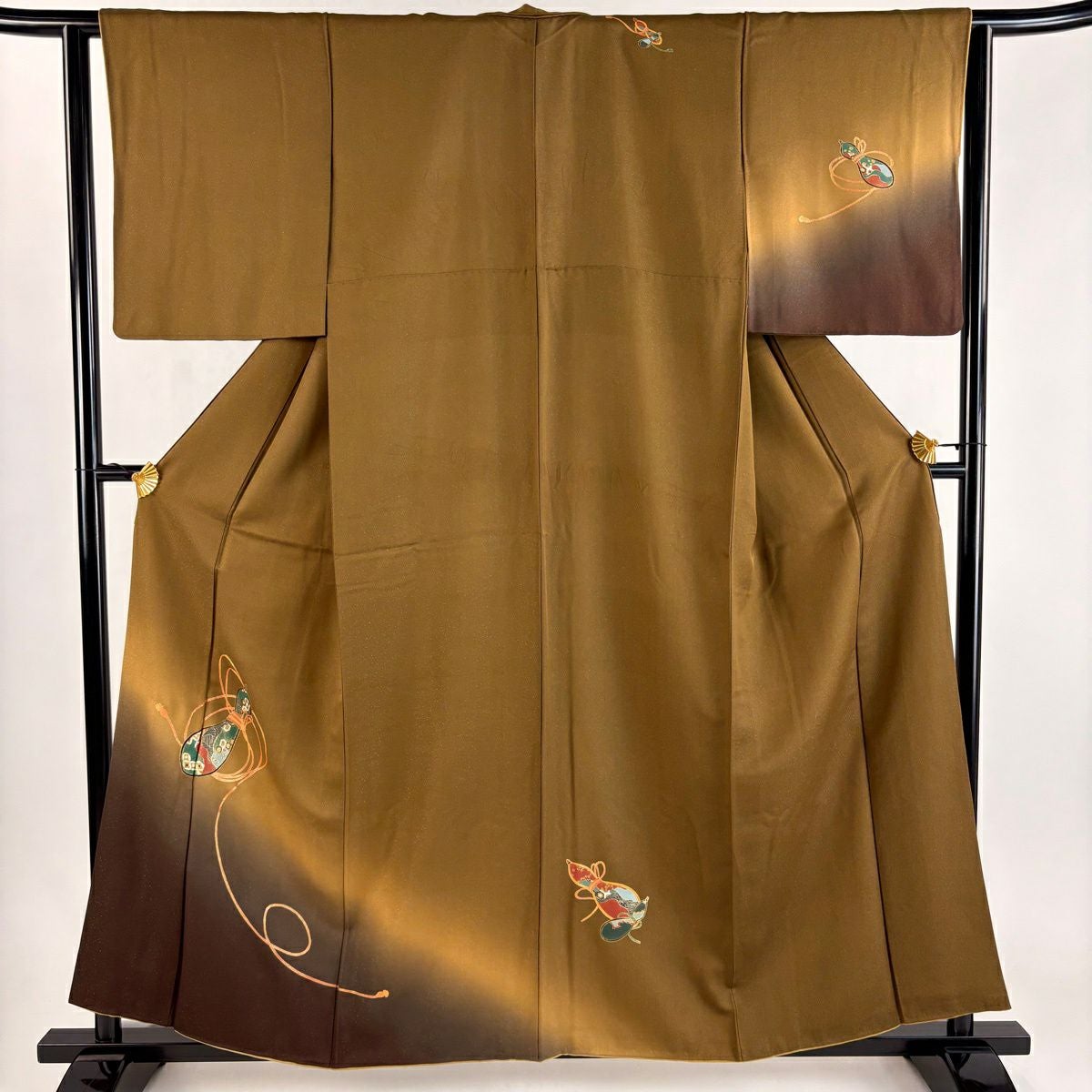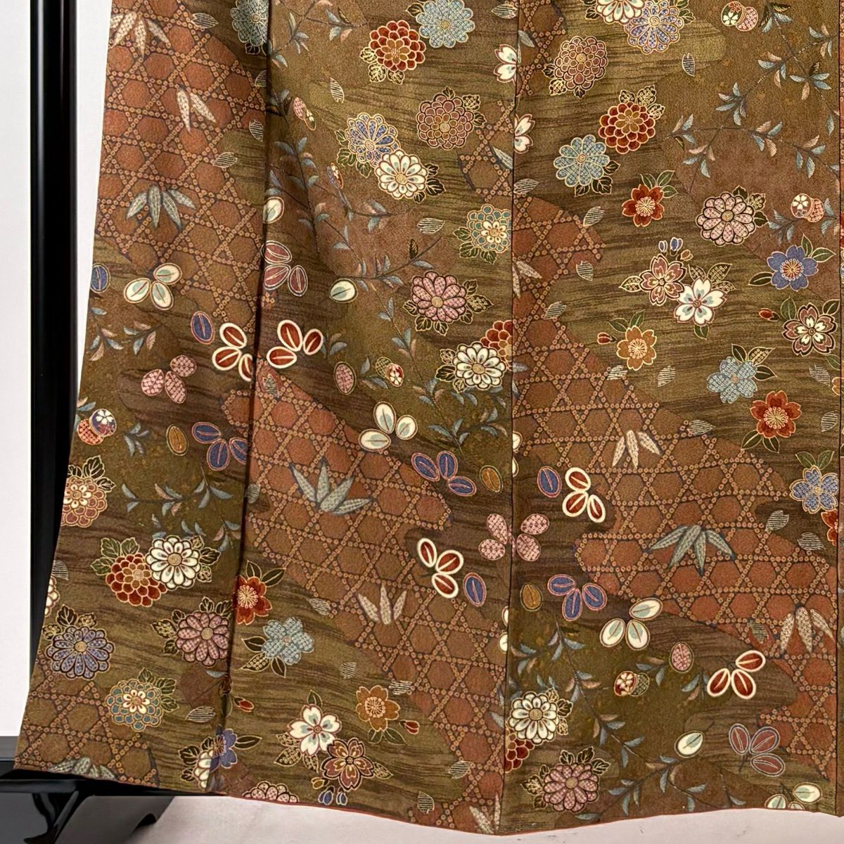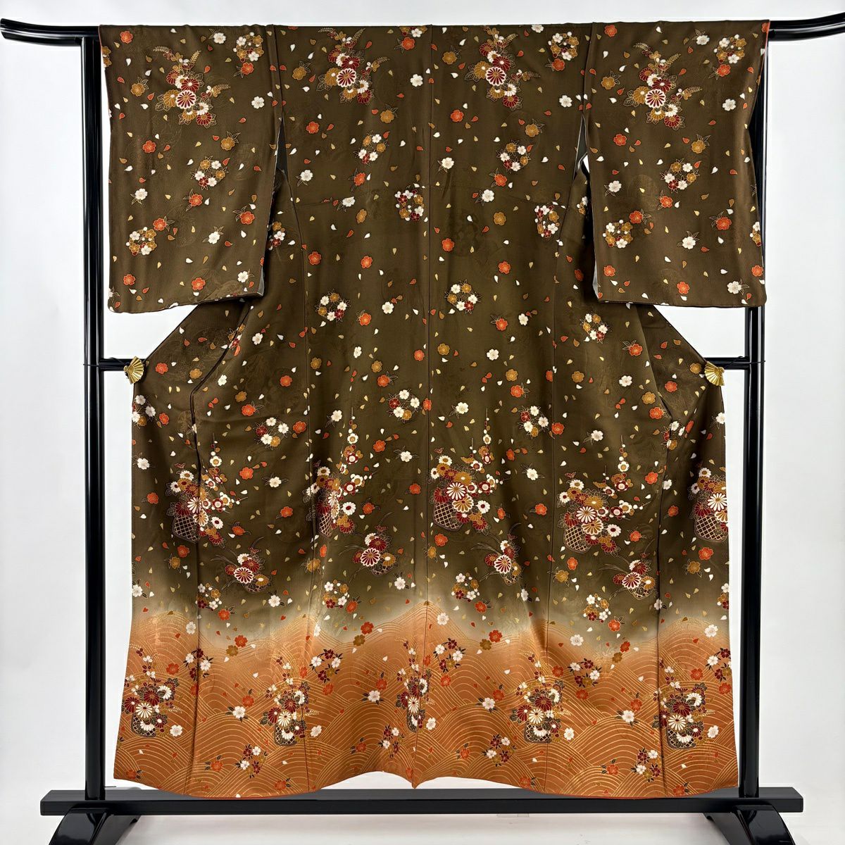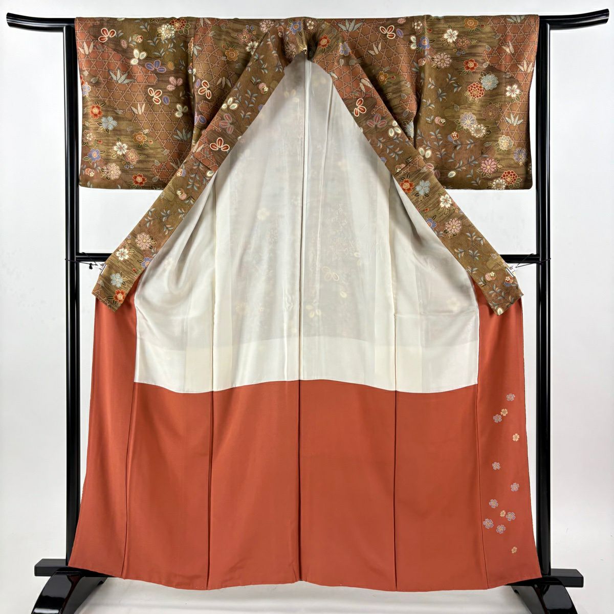 50%OFF 訪問着 身丈158cm 裄丈66cm M 袷 草花 金彩 染め分け よもぎ色 正絹 秀品 K50