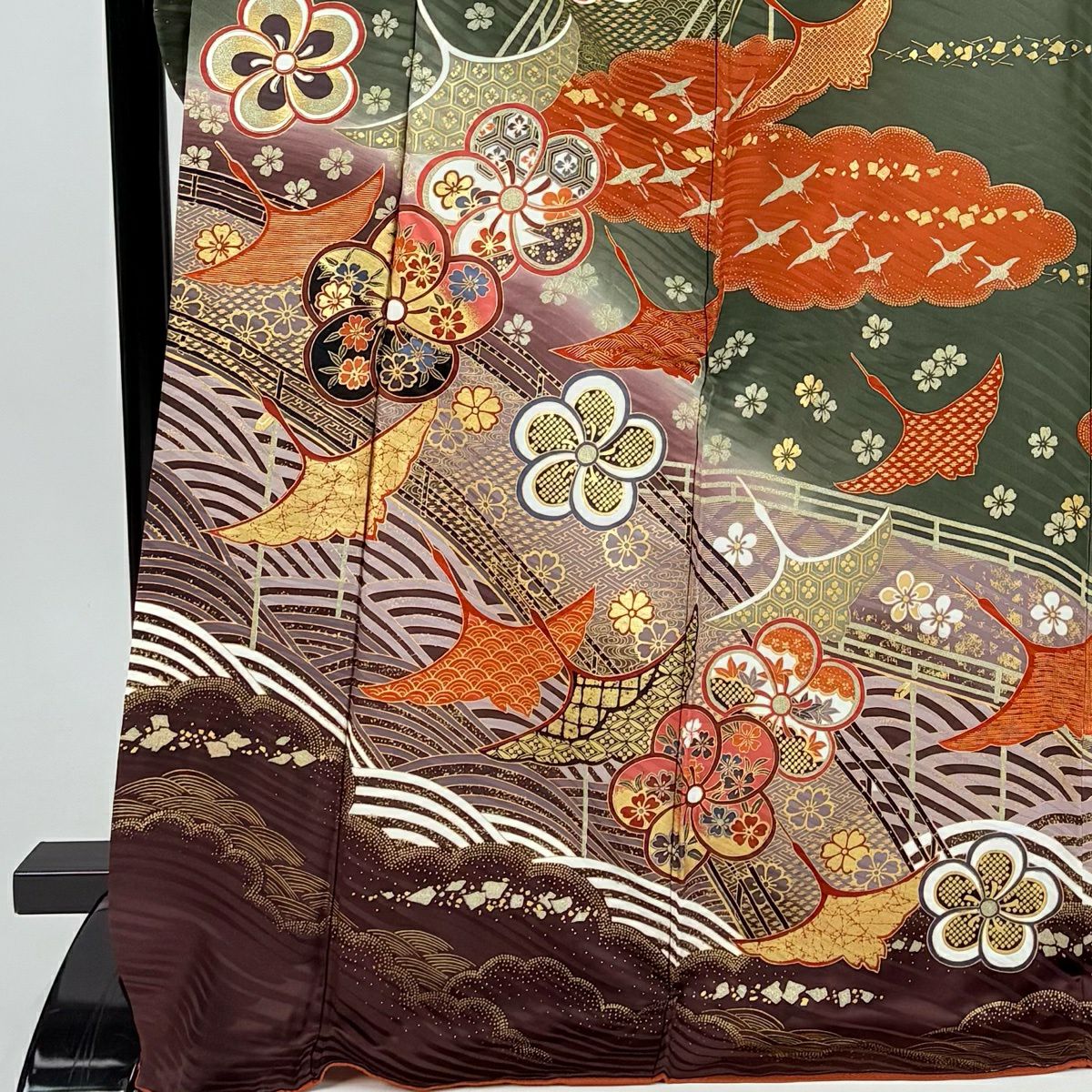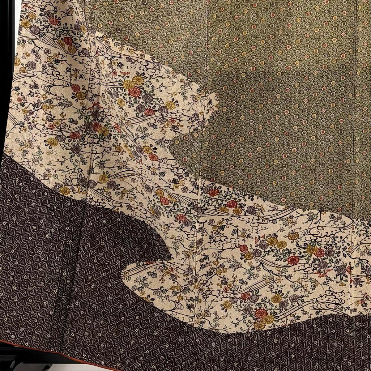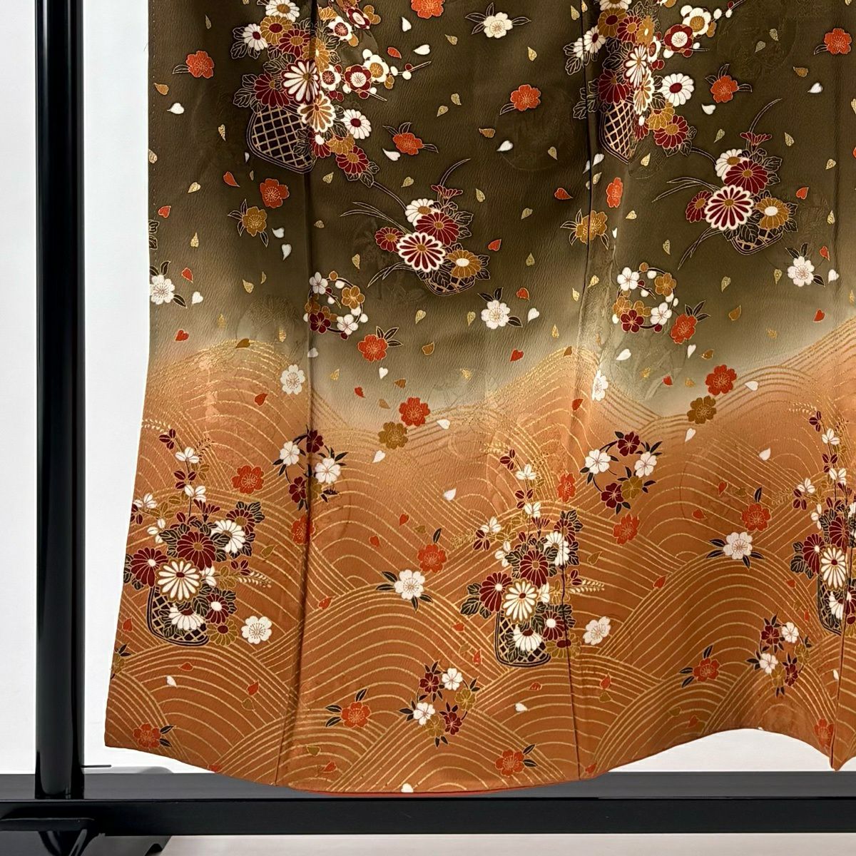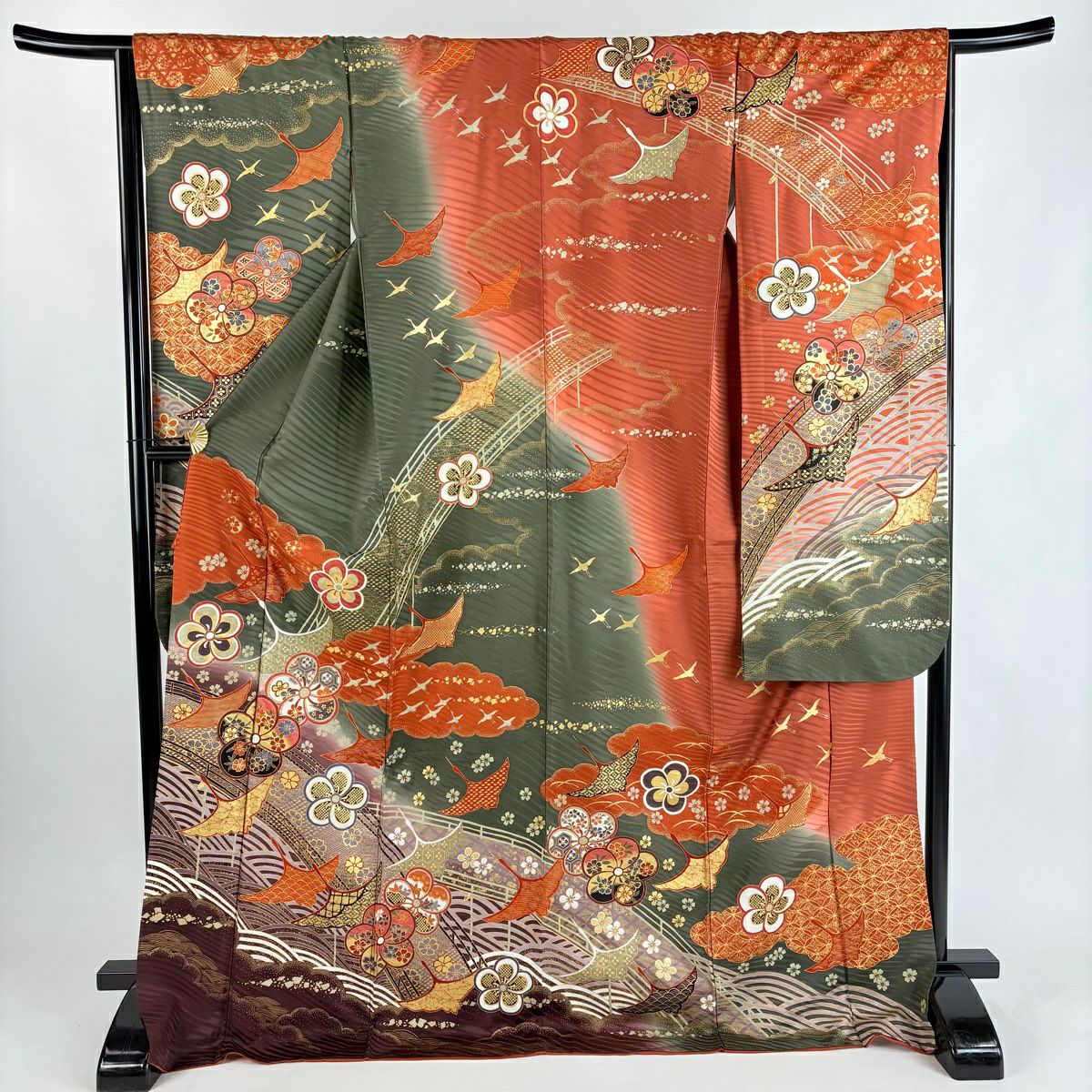 50%OFF 訪問着 身丈158cm 裄丈66cm M 袷 草花 金彩 染め分け よもぎ色 正絹 秀品 K50