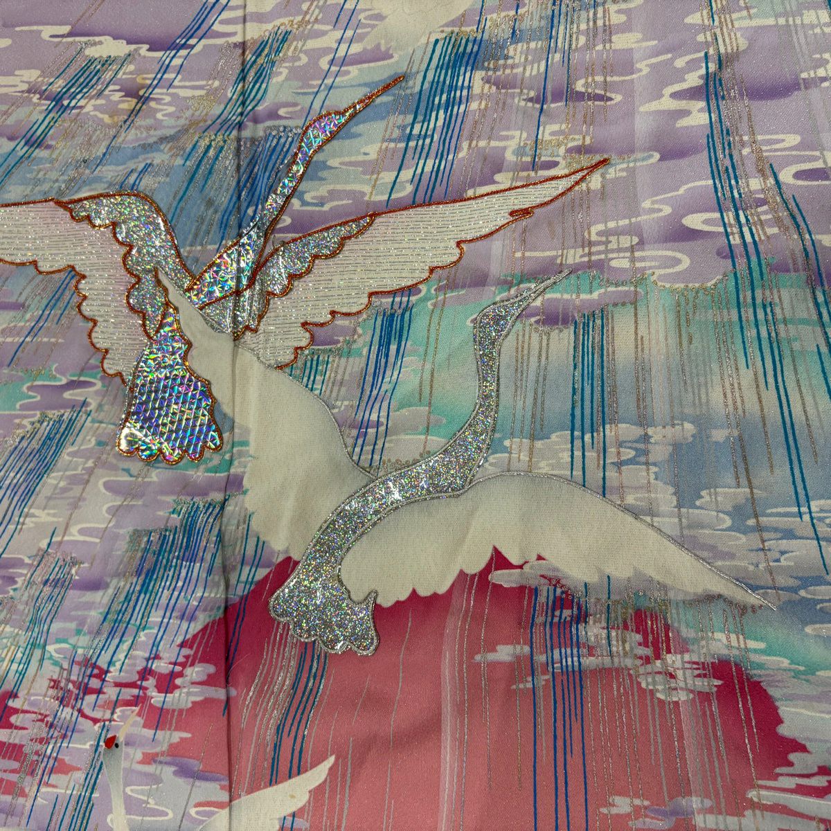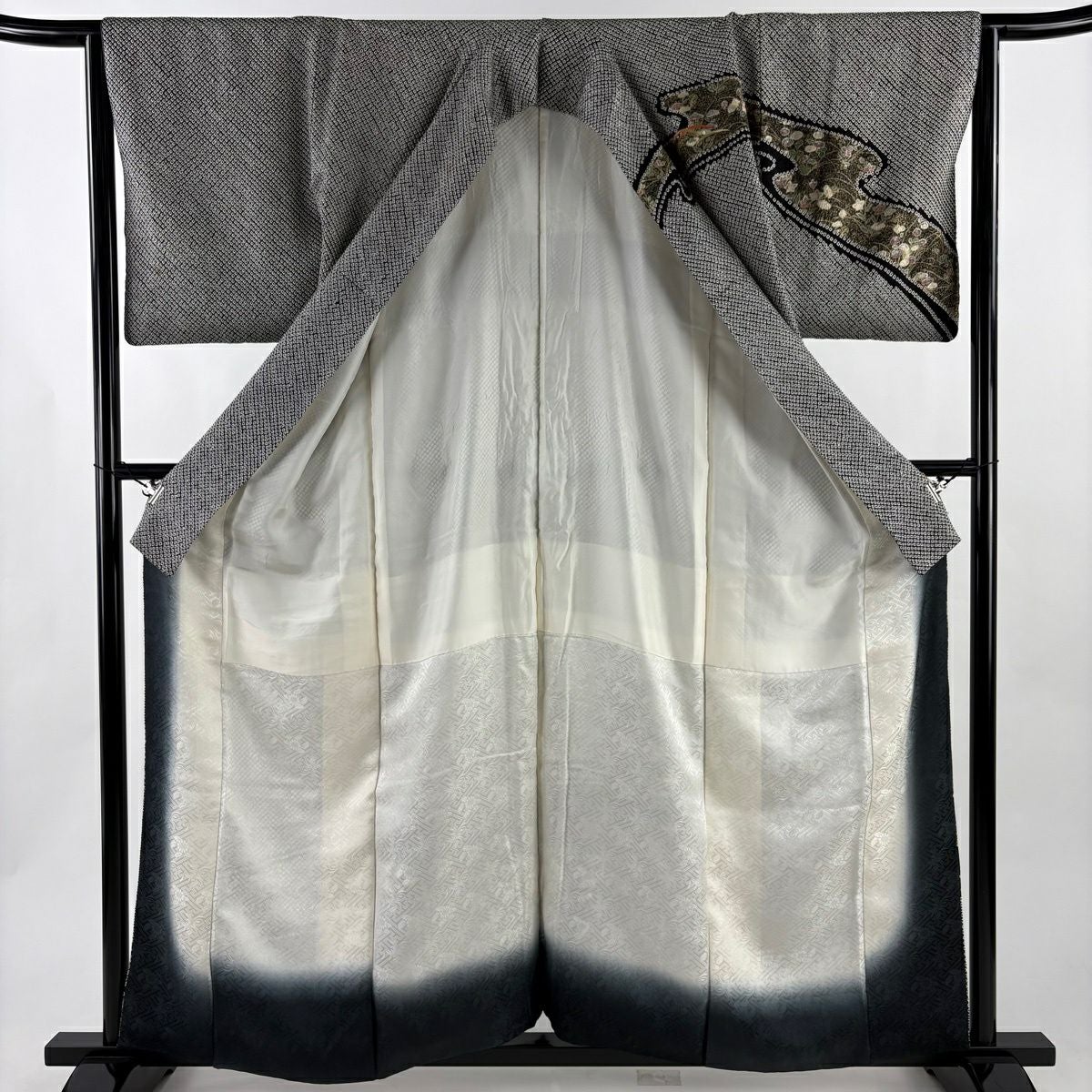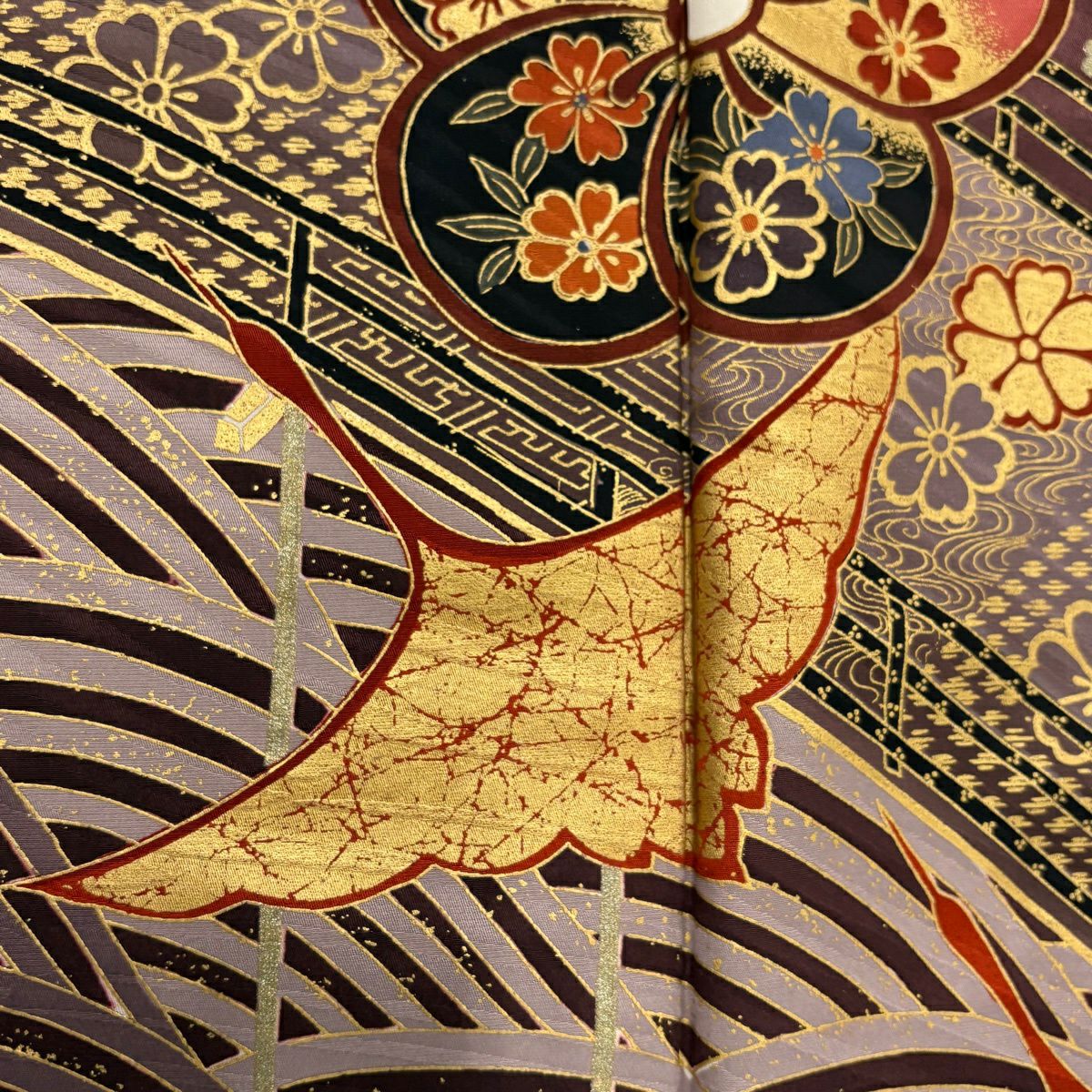 50%OFF 色留袖 身丈153cm 裄丈63cm S 袷 落款あり カルタ 鶴 金彩 灰紫 正絹 秀品 K50