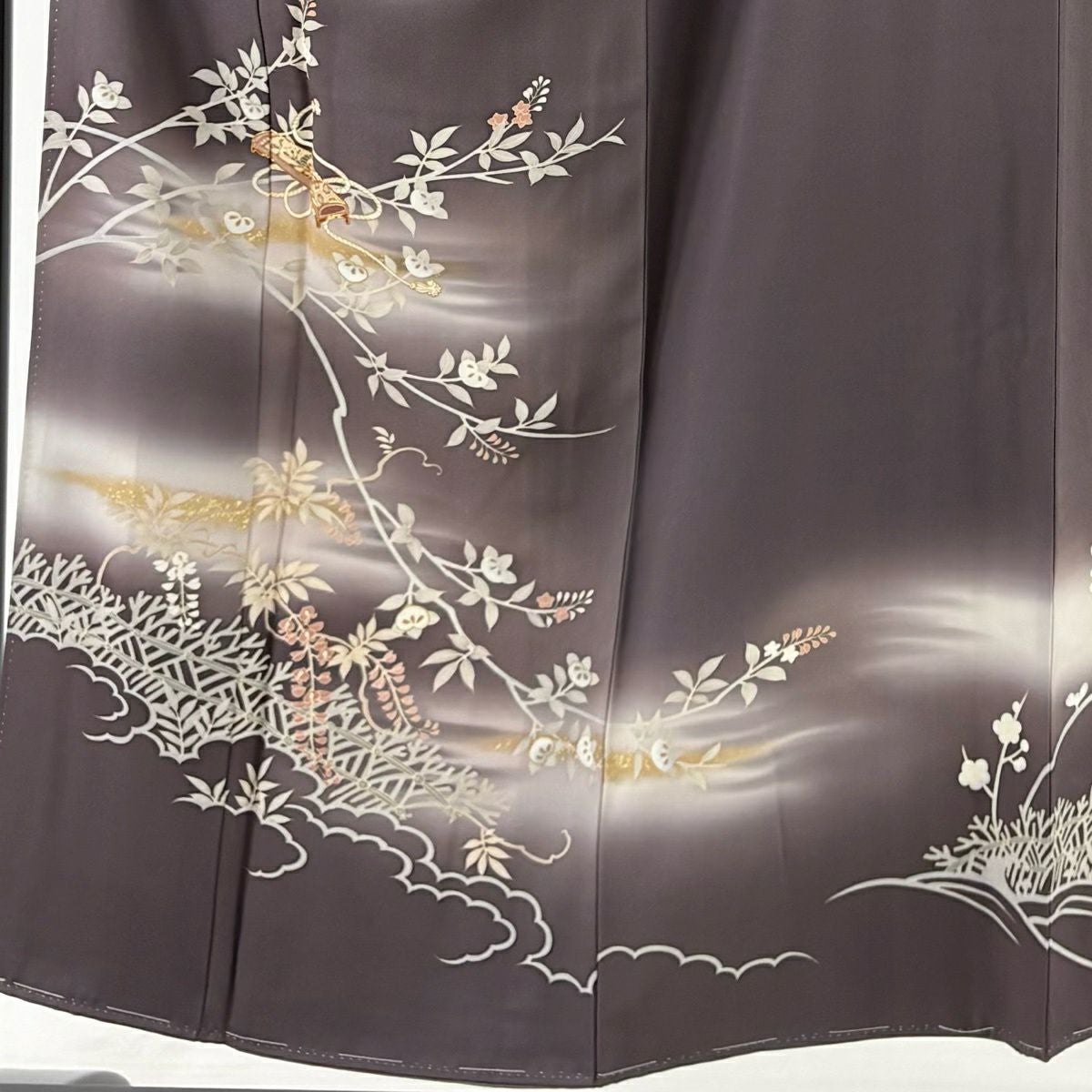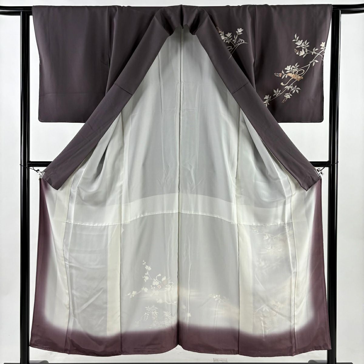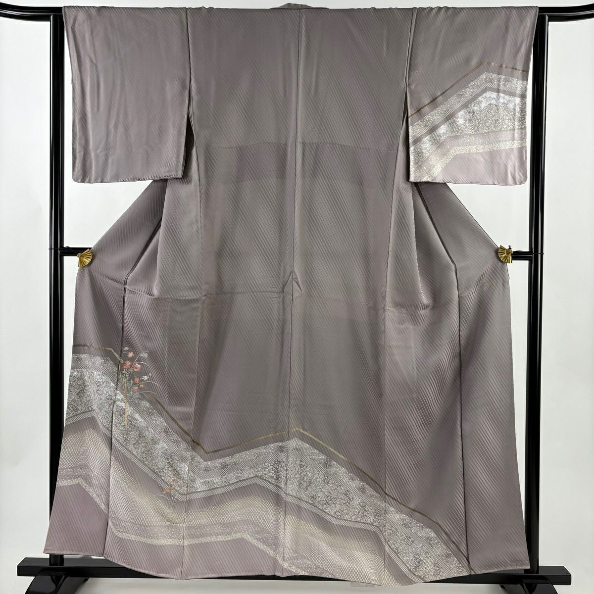 50%OFF 色留袖 身丈155cm 裄丈63cm S 袷 枝梅 菖蒲 銀糸 金銀彩 灰紫 正絹 秀品 K50