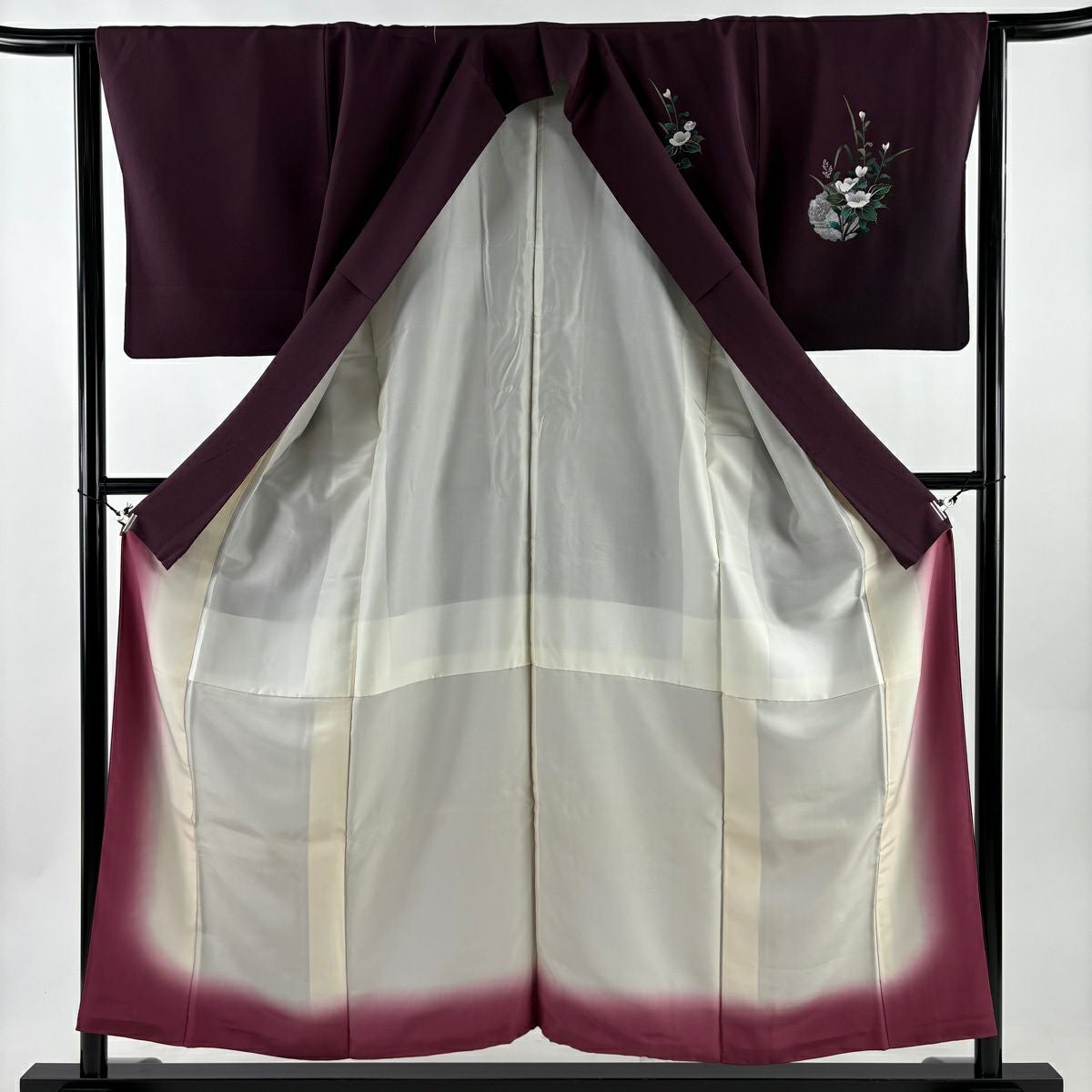 50%OFF 付下げ 身丈162cm 裄丈65cm M 袷 花車 枝梅 刺繍 ぼかし 薄紫 正絹 秀品 K50
