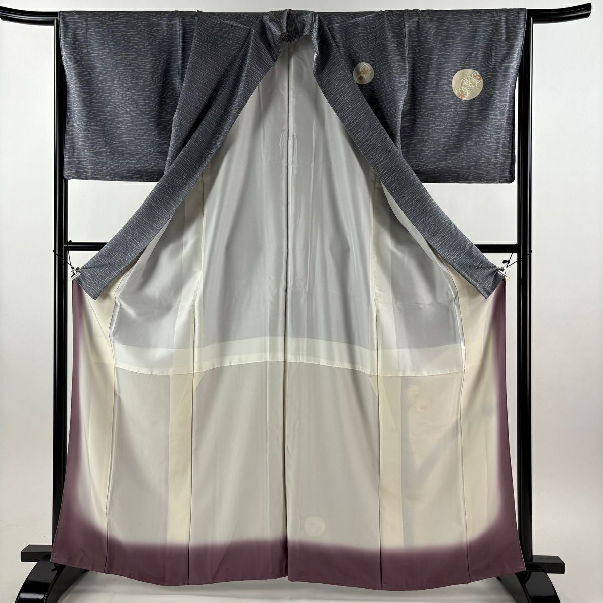 50%OFF 【美品】 紬 身丈152.5cm 裄丈62cm S 袷 嵯峨野紬 縦縞 灰紫 正絹 秀品 K50