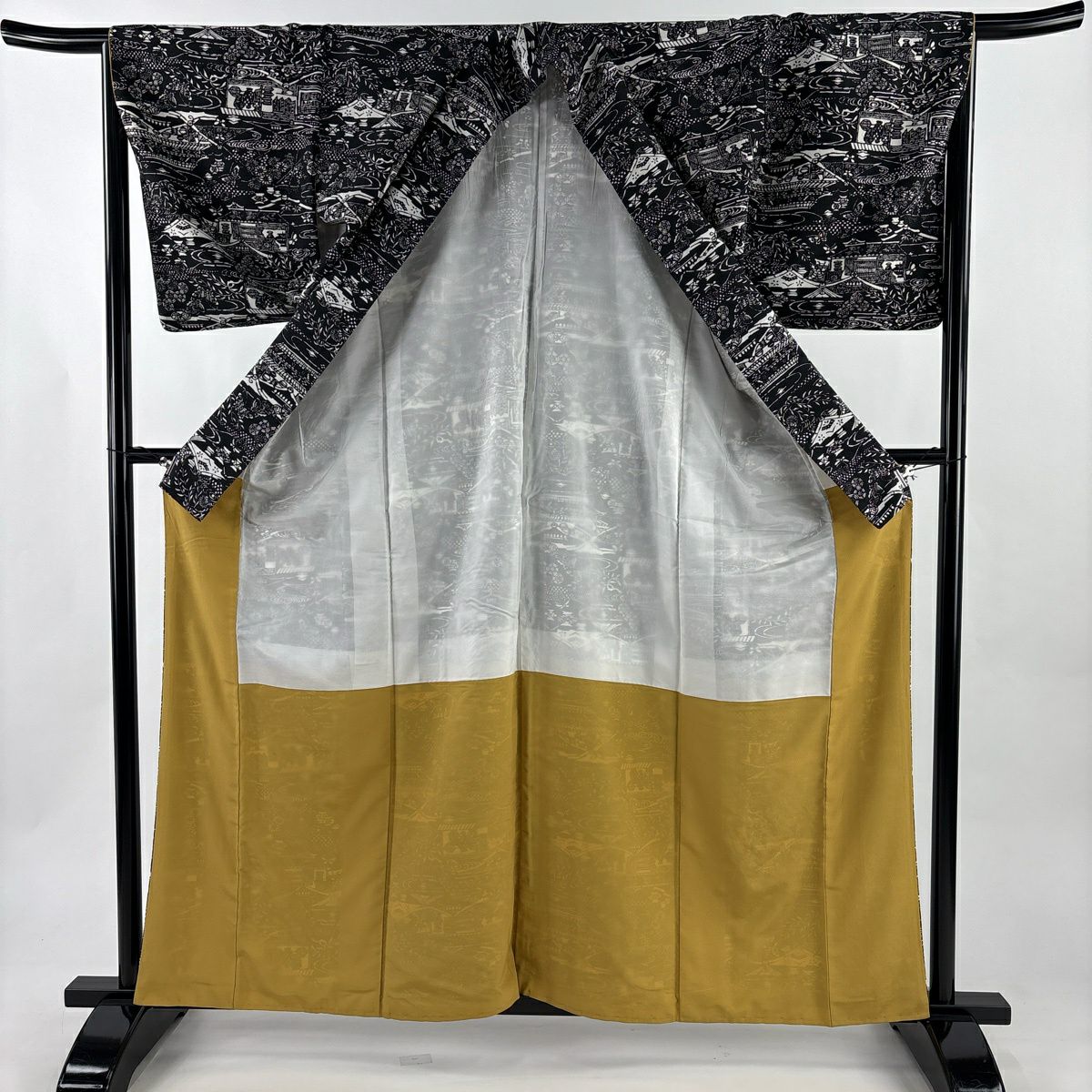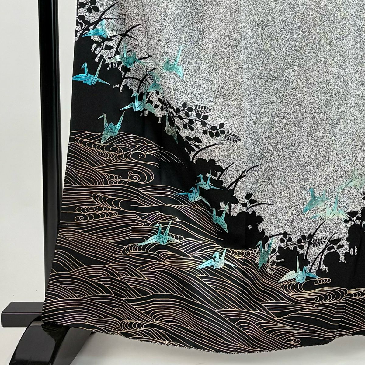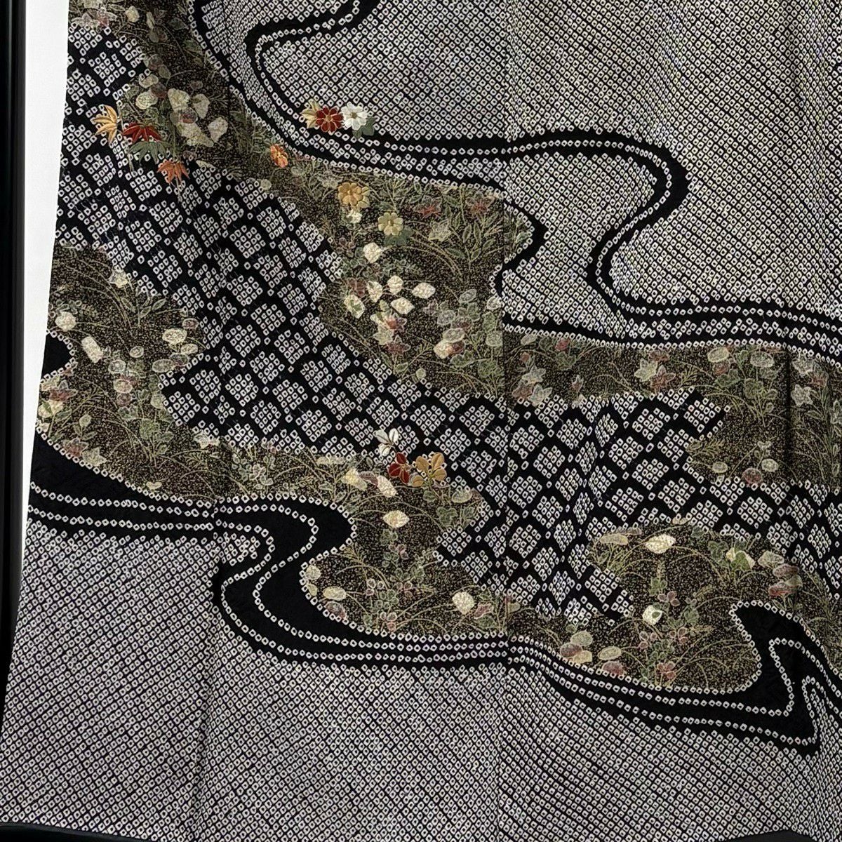 50%OFF 【美品】 訪問着 身丈159cm 裄丈64.5cm M 袷 草花 青海波 黒 正絹 秀品 K50