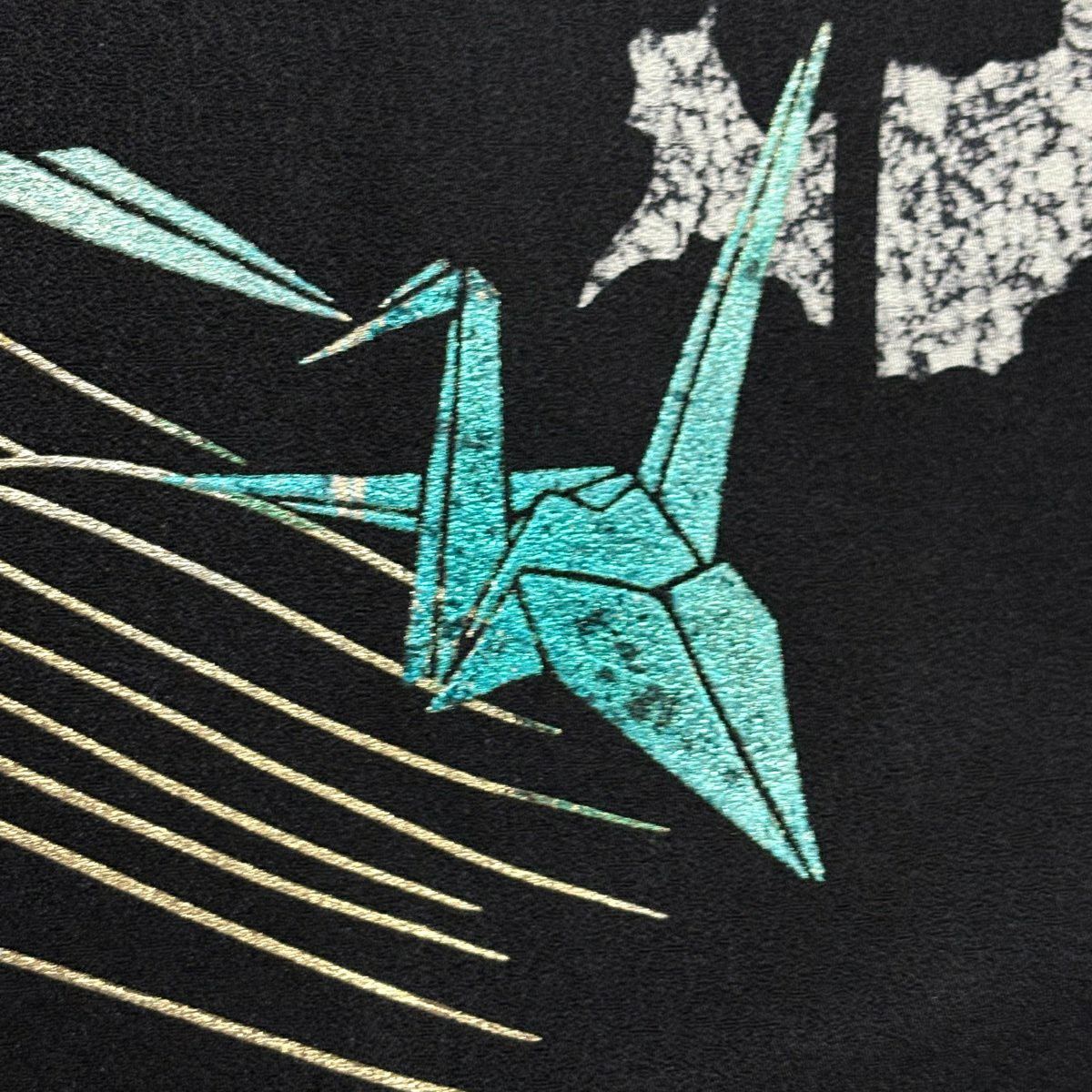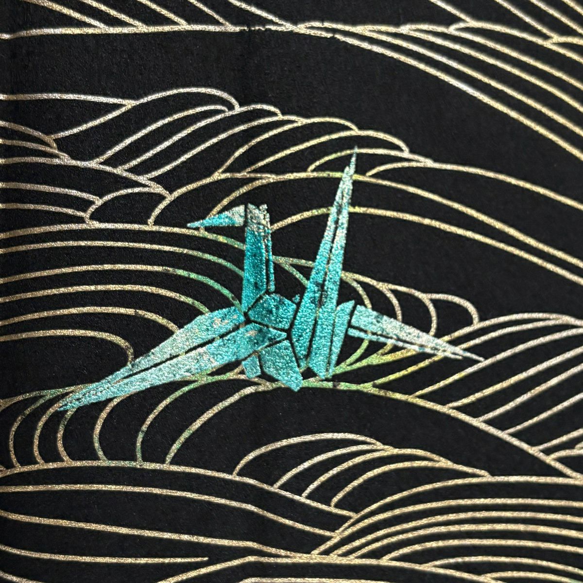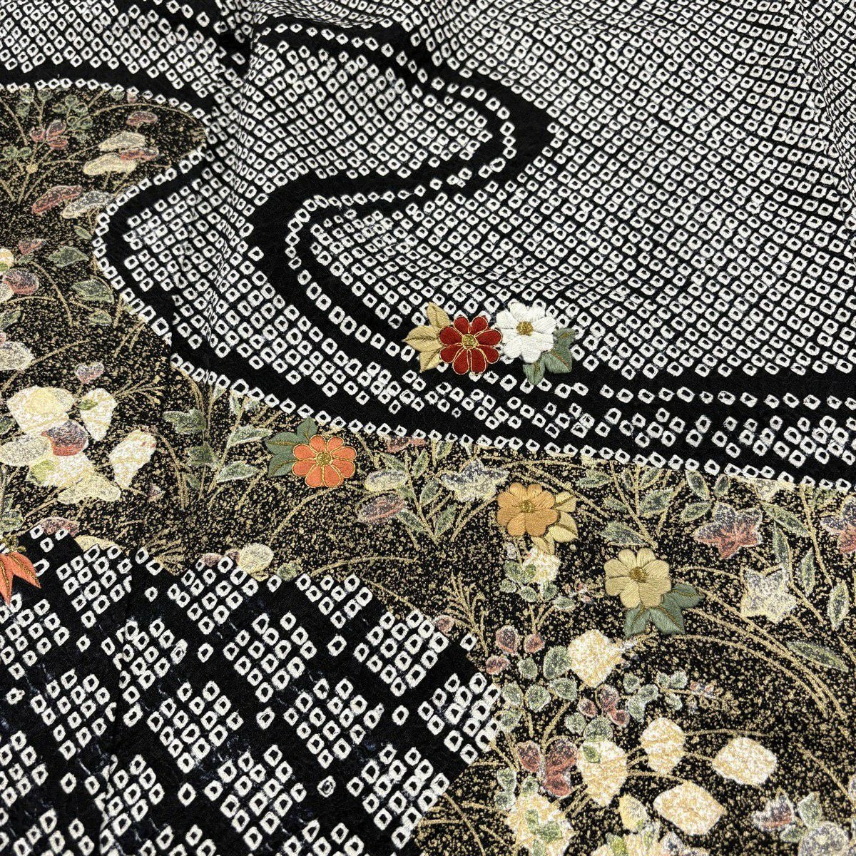 50%OFF 【美品】 訪問着 身丈159cm 裄丈64.5cm M 袷 草花 青海波 黒 正絹 秀品 K50