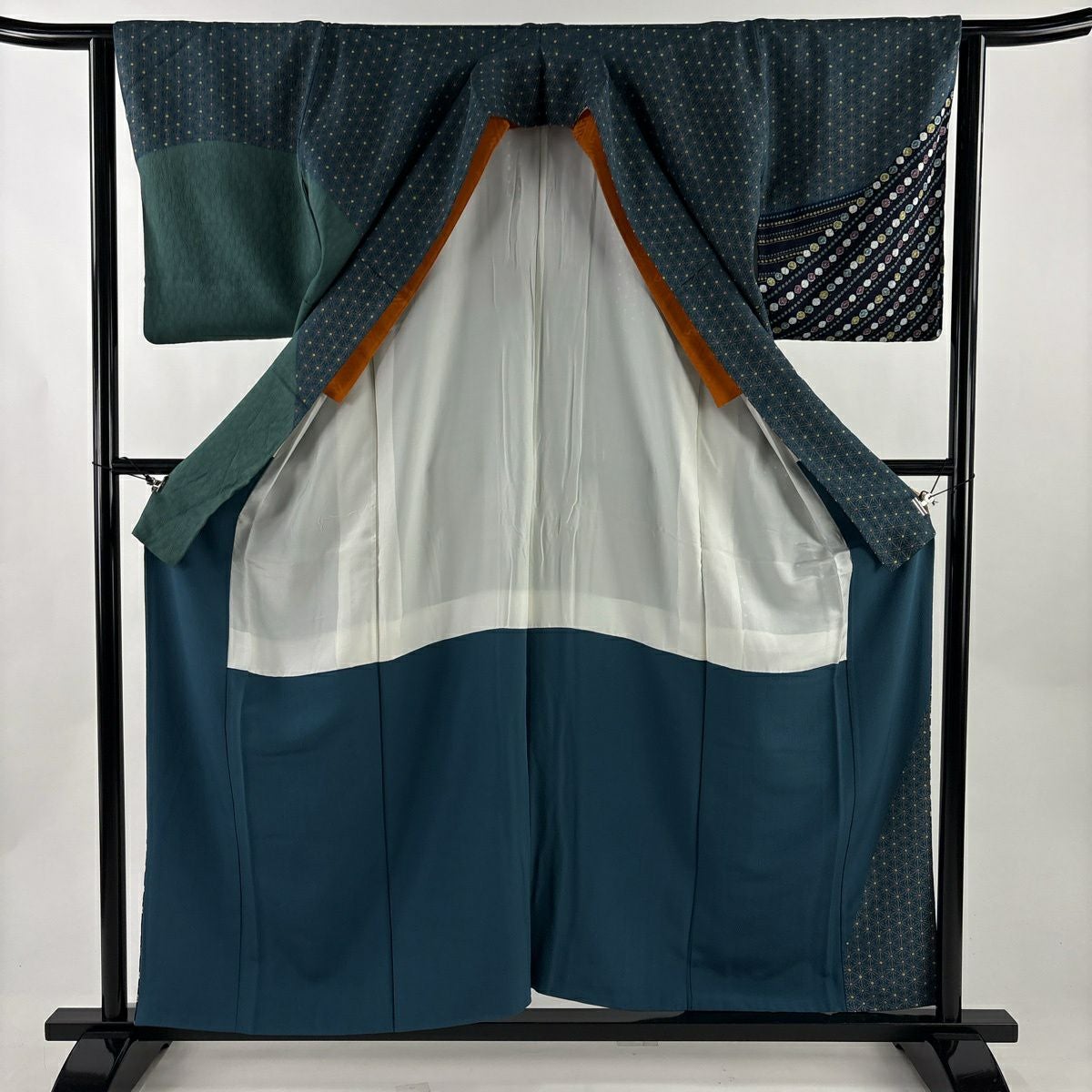 50%OFF 訪問着 身丈165.5cm 裄丈65.5cm M 袷 葉と実 竹 金彩 ぼかし 青緑 正絹 秀品 K50