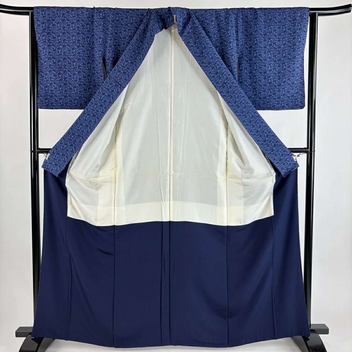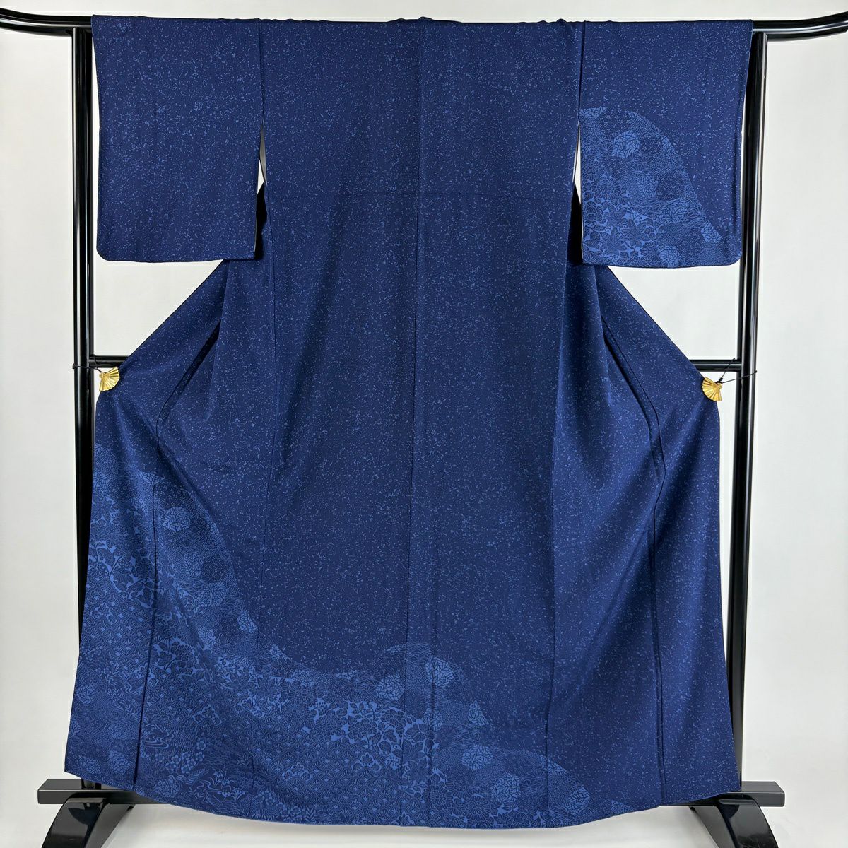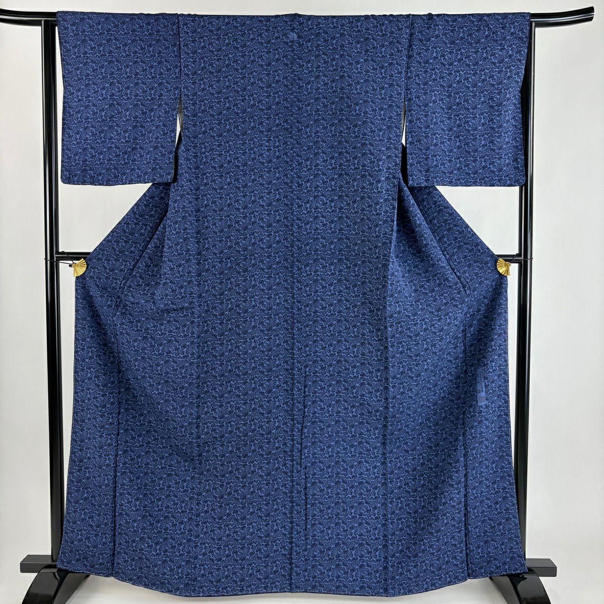 50%OFF 大島紬 身丈168cm 裄丈65cm M 袷 純泥染 証紙あり 幾何学 紺色 正絹 秀品 K50
