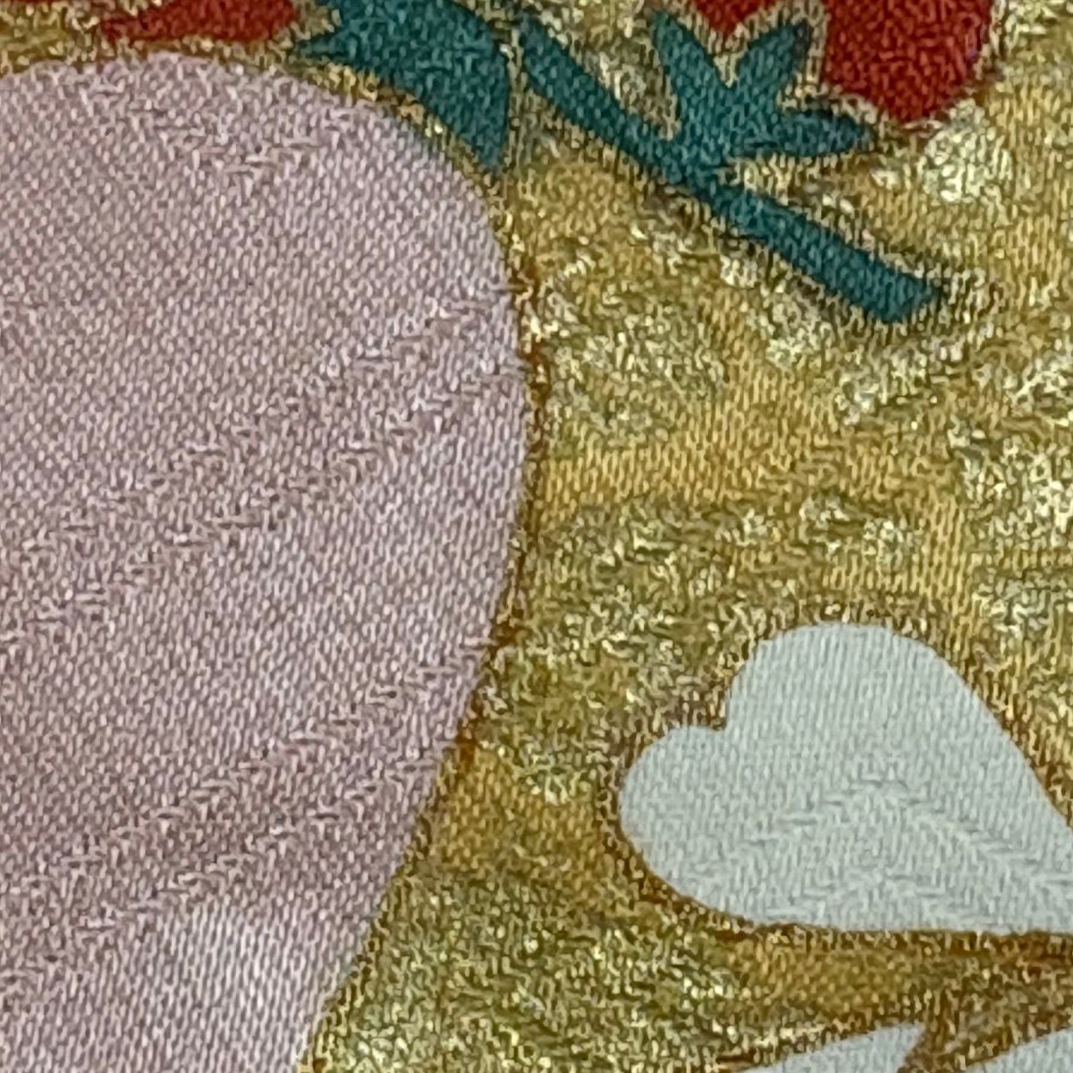 50%OFF 【美品】 袋帯 秀品 川島織物 落款あり 花丸文 箔 ピンクベージュ 六通 正絹 K50