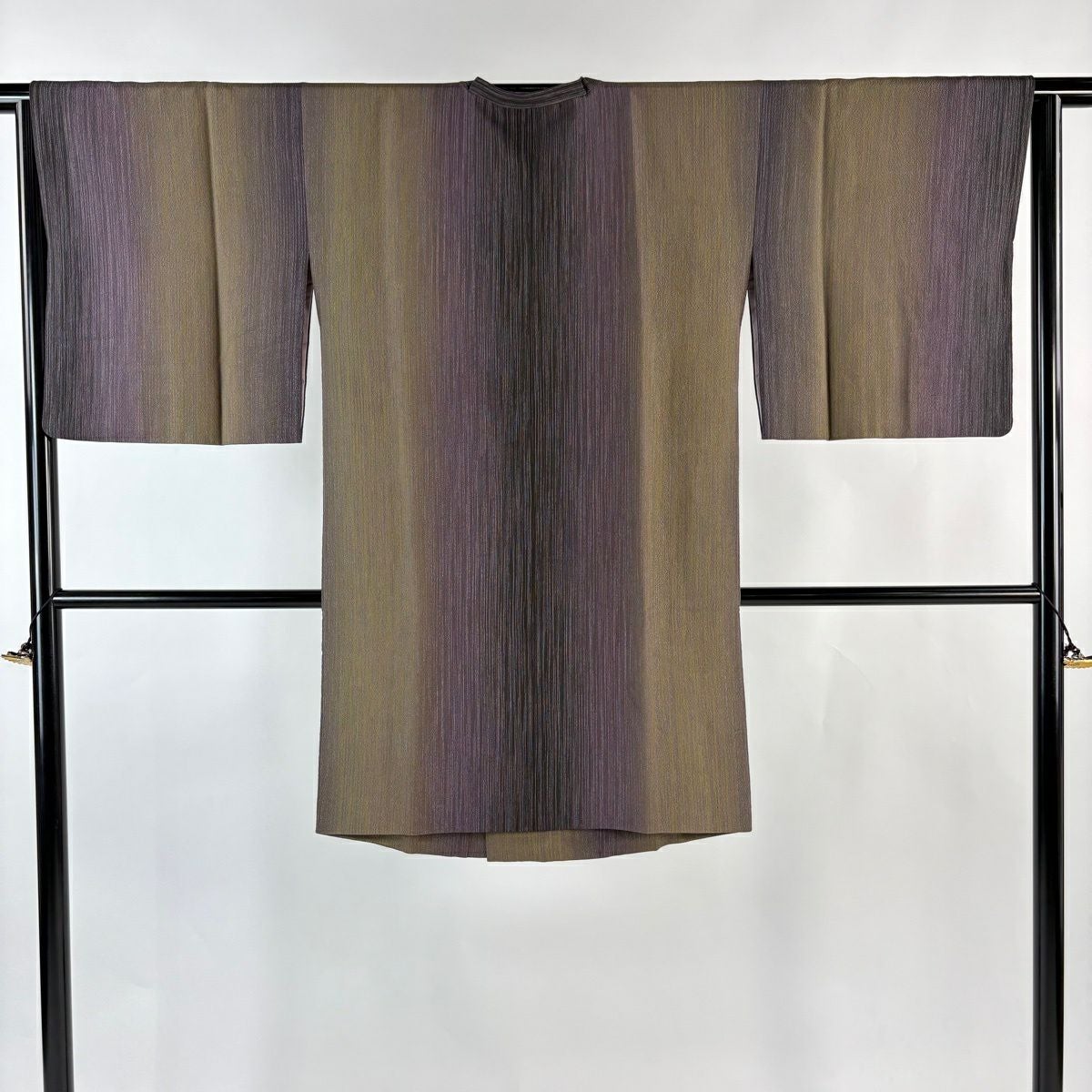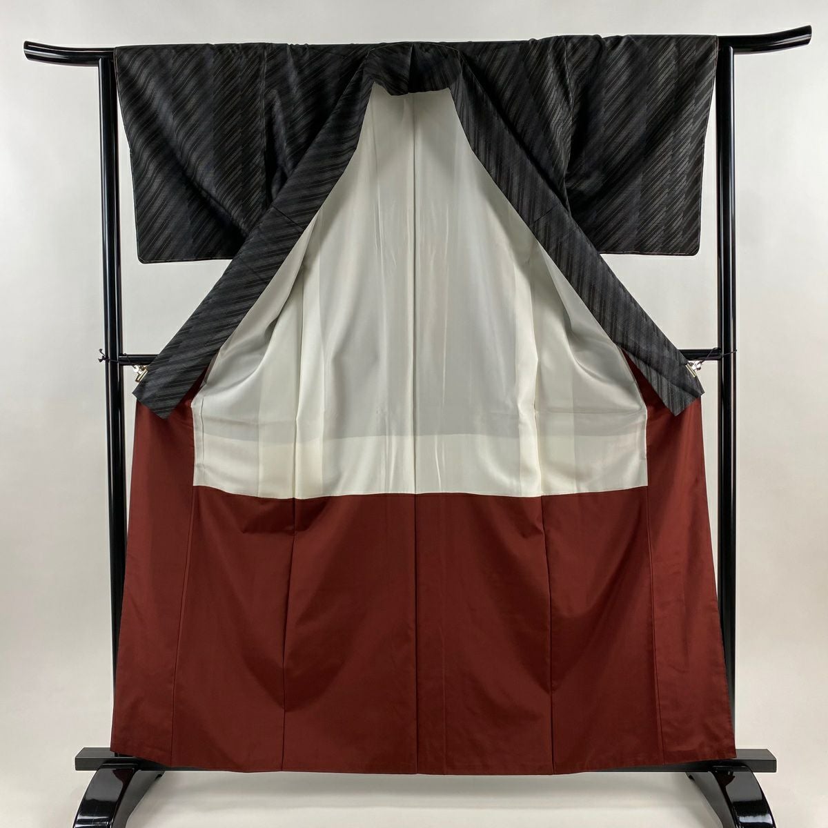 【最終値引き】 77%OFF 【美品】 紬 身丈162cm 裄丈63cm S 袷 斜縞 墨色 正絹 秀品 K70