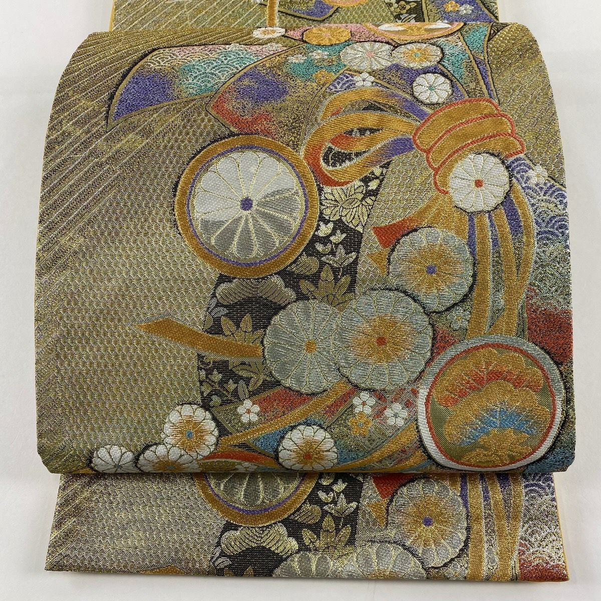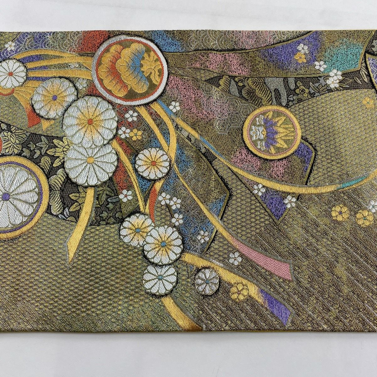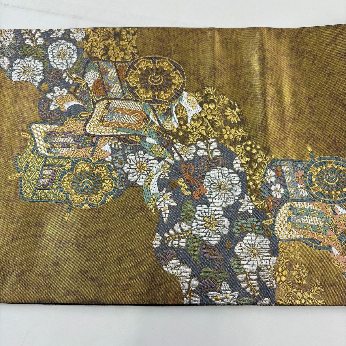 【最終値引き】 77%OFF 【美品】 袋帯 秀品 やまと 束ね熨斗 草花 金銀糸 箔 金色 六通 正絹 K70