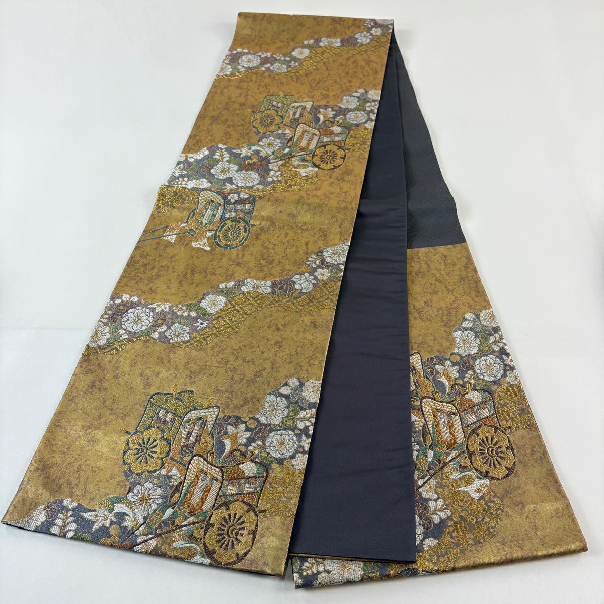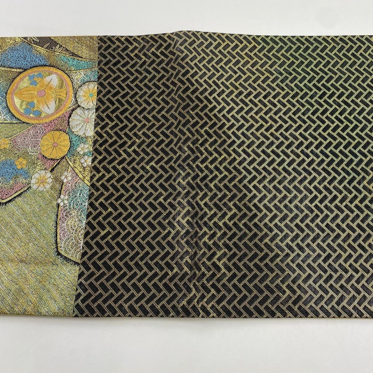 【最終値引き】 70%OFF 袋帯 秀品 証紙あり 関西仕立て 小槌 組紐 金糸 箔 金色 六通 正絹 K70