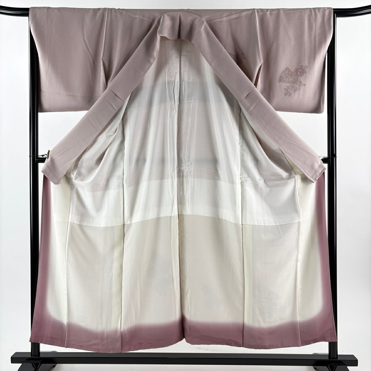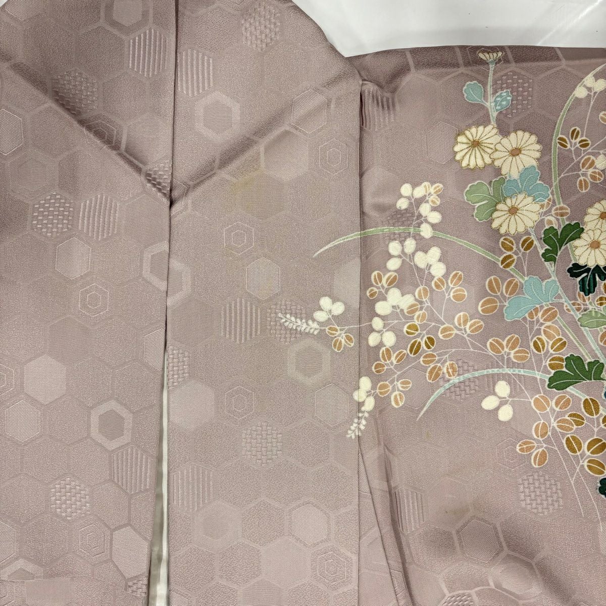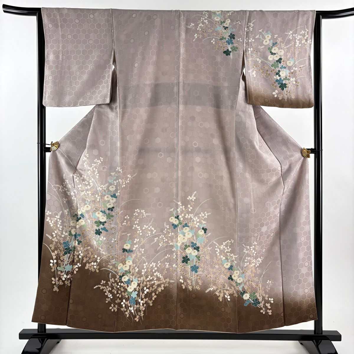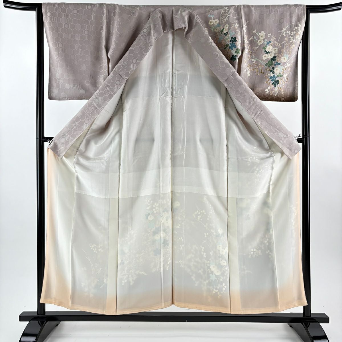 70%OFF 訪問着 身丈156cm 裄丈64.5cm M 袷 菊 萩 金彩 ぼかし 灰紫 正絹 秀品 K70