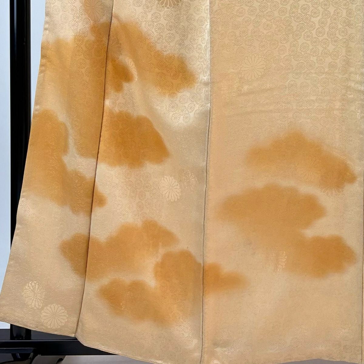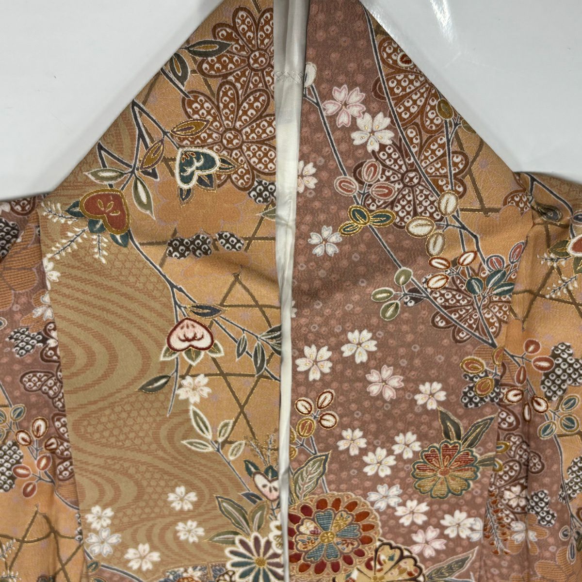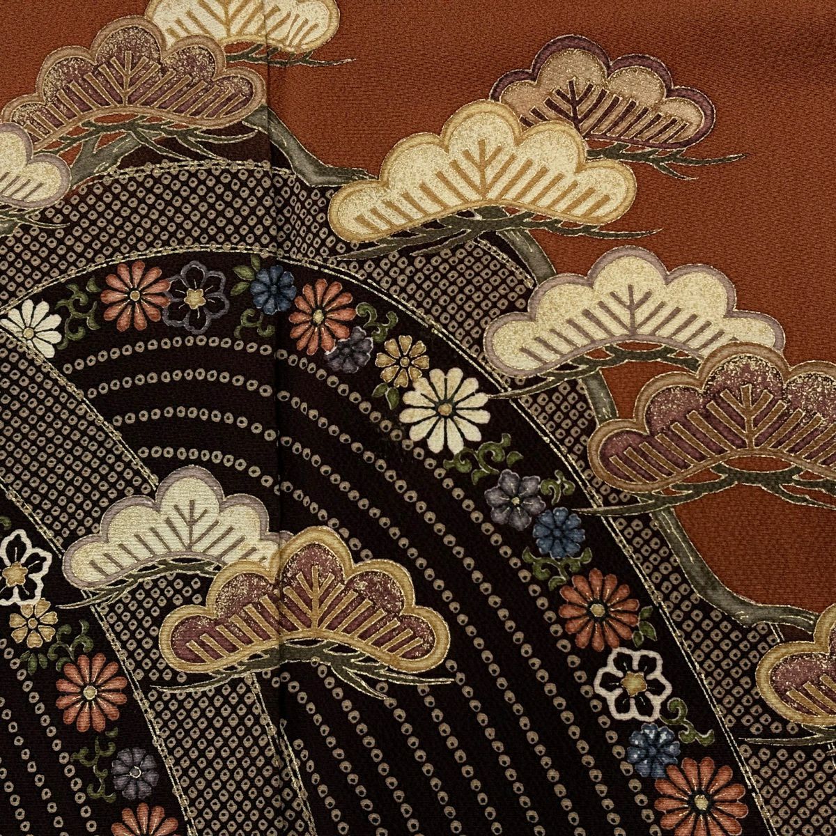 【在庫一掃】 付下げ 身丈157cm 裄丈63cm S 袷 松 菊唐草 金糸 ぼかし 茶紫 正絹 秀品 一つ紋