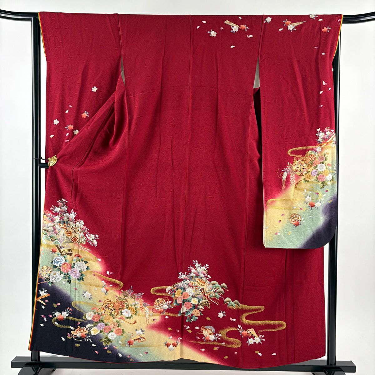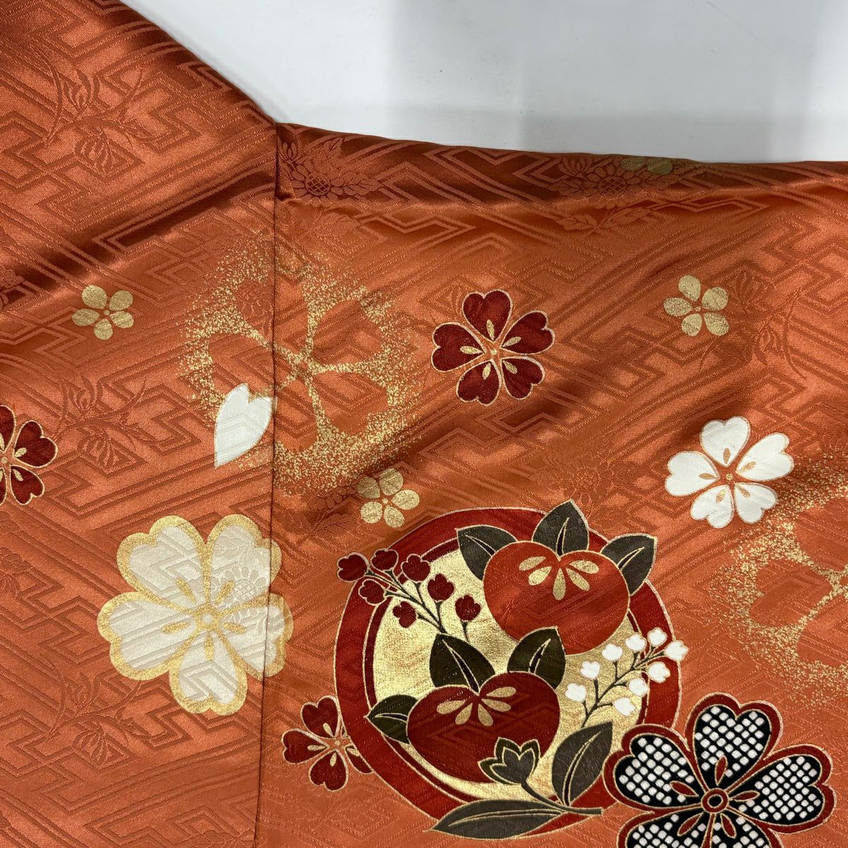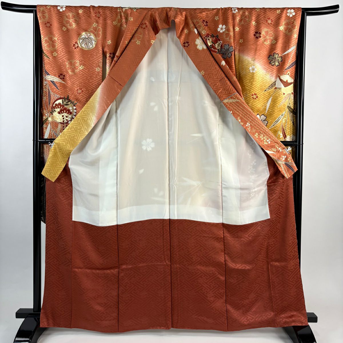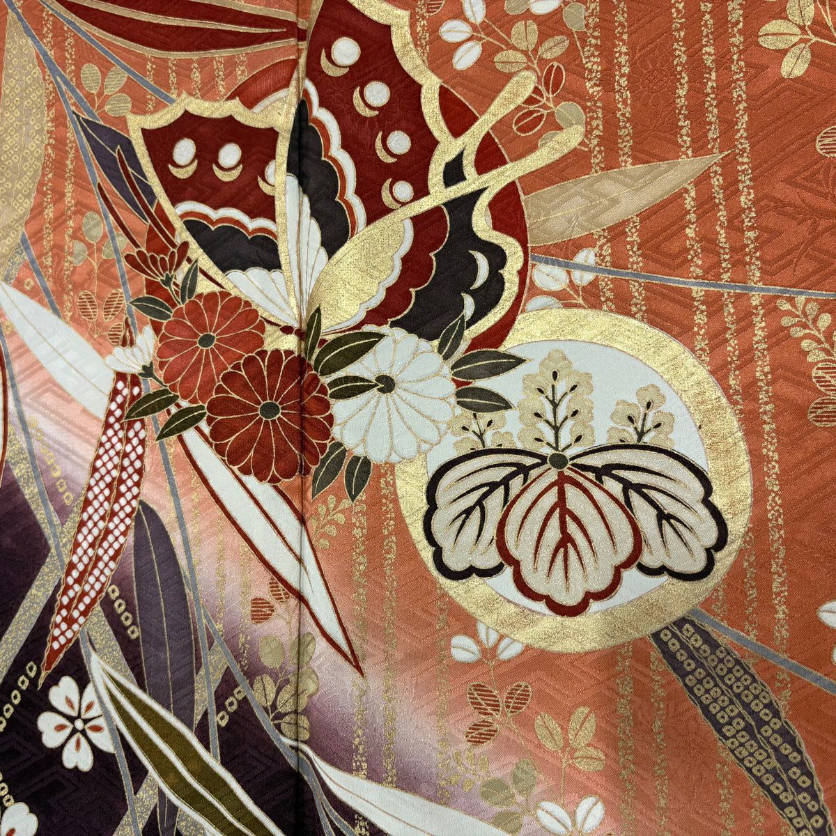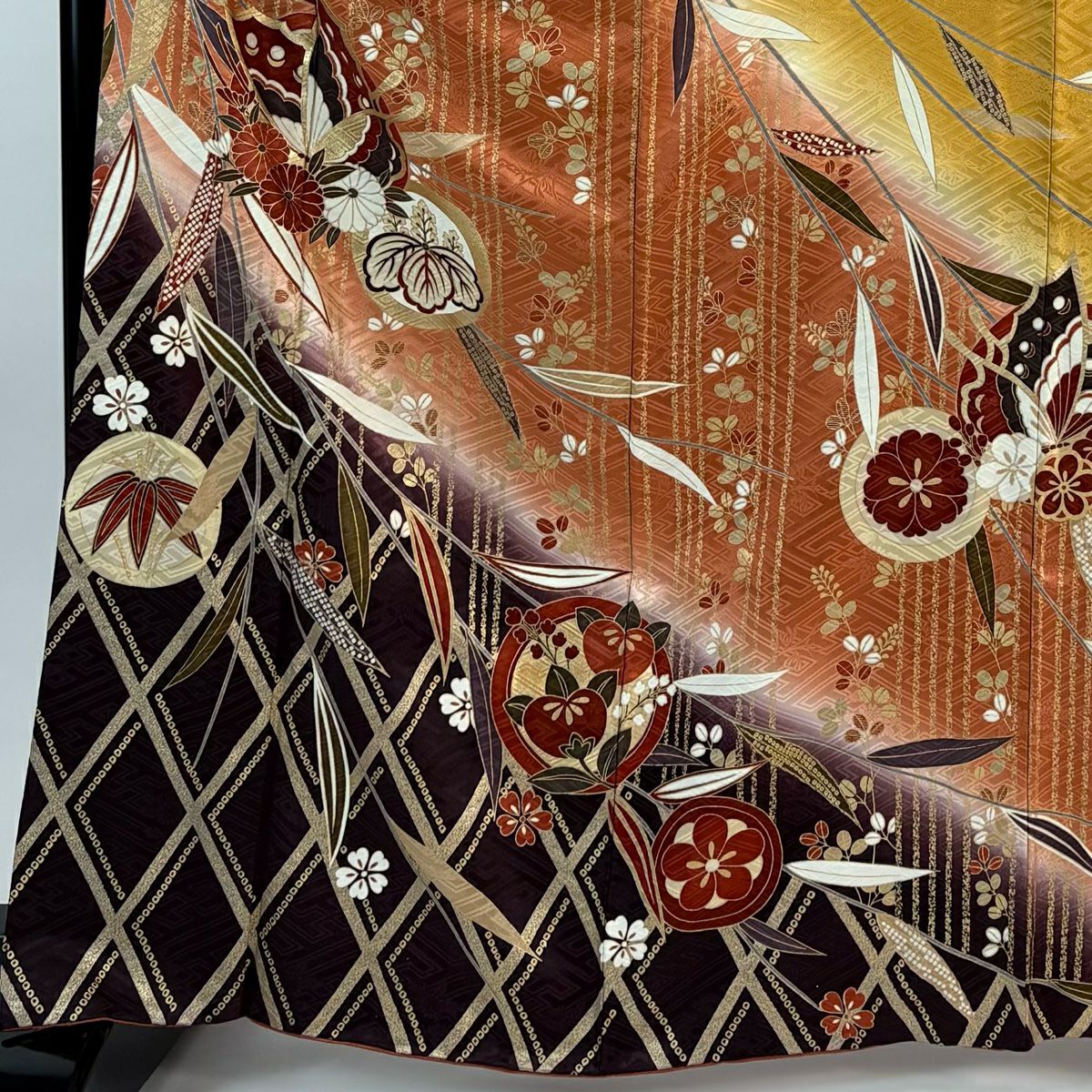 70%OFF 振袖 身丈165.5cm 裄丈65.5cm M 袷 蝶 桐 金彩 ぼかし オレンジ 正絹 秀品 K70