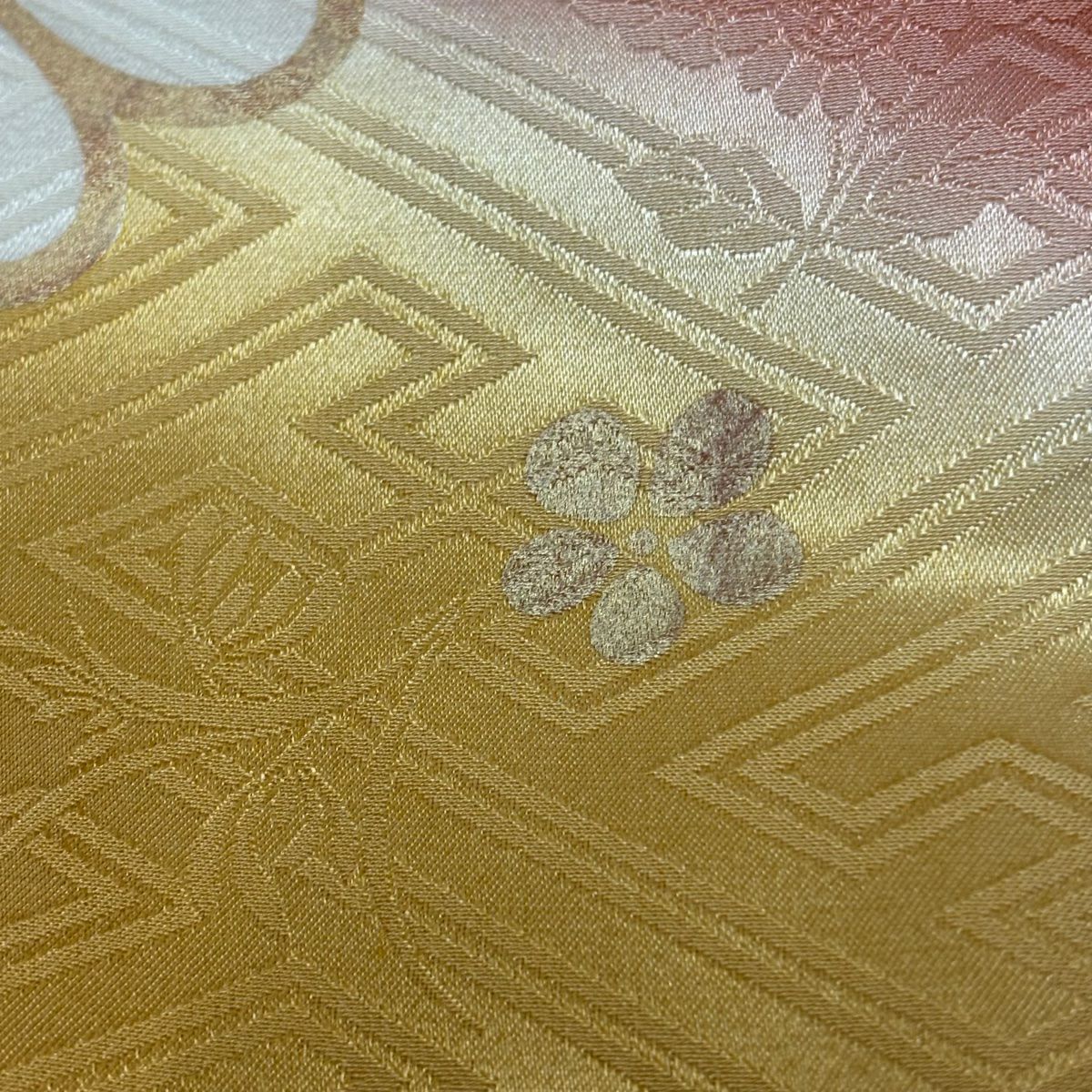 【最終値引き】 77%OFF 【美品】 袋帯 秀品 七宝 華文 金糸 箔 サーモンピンク 六通 正絹 K70