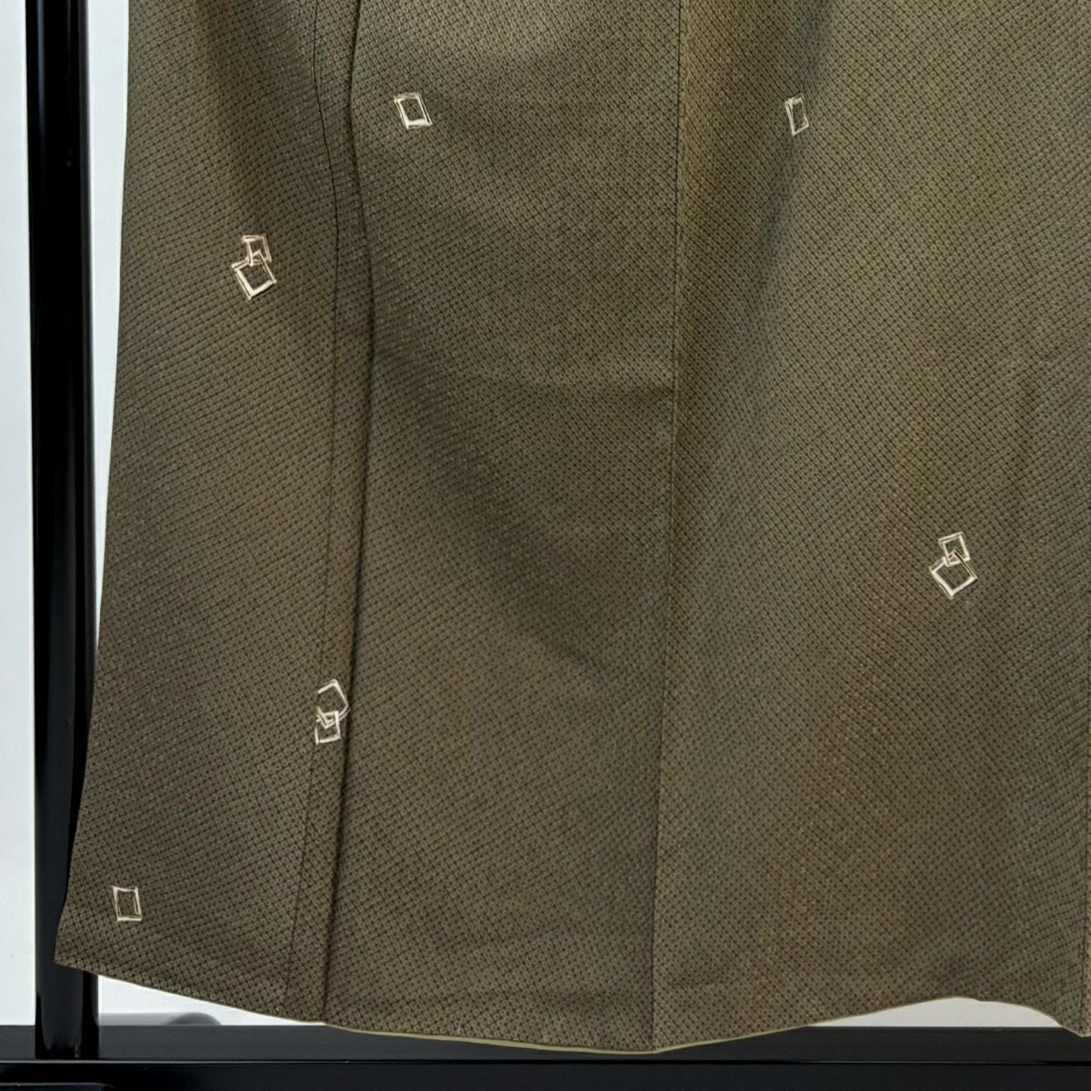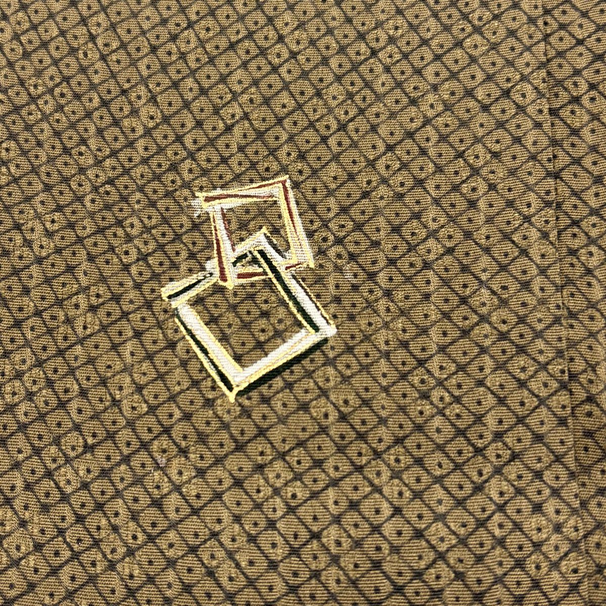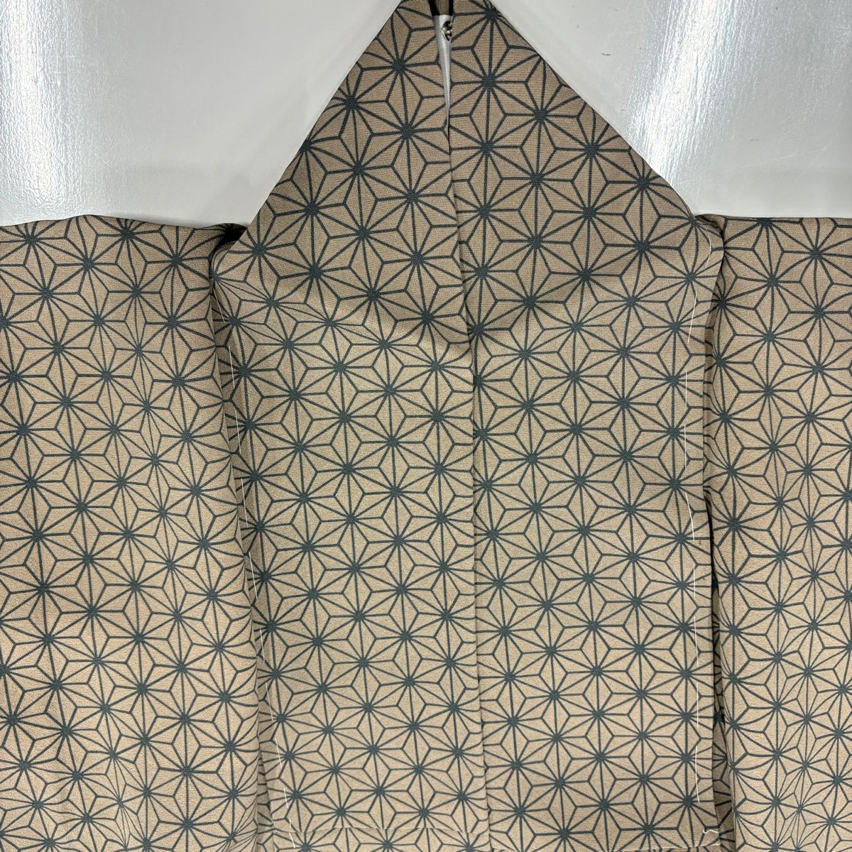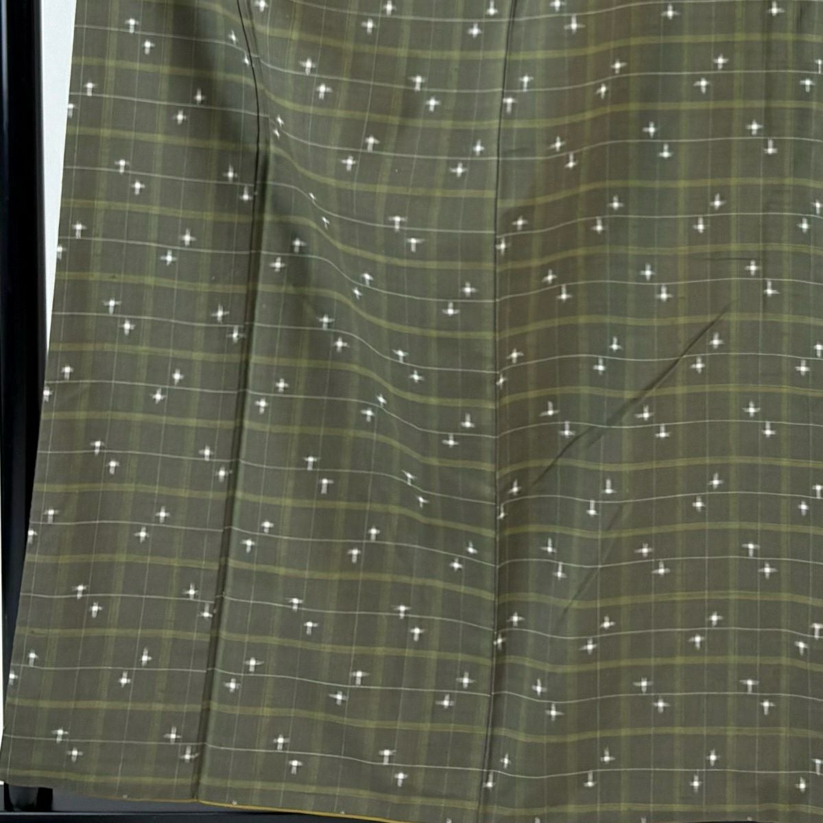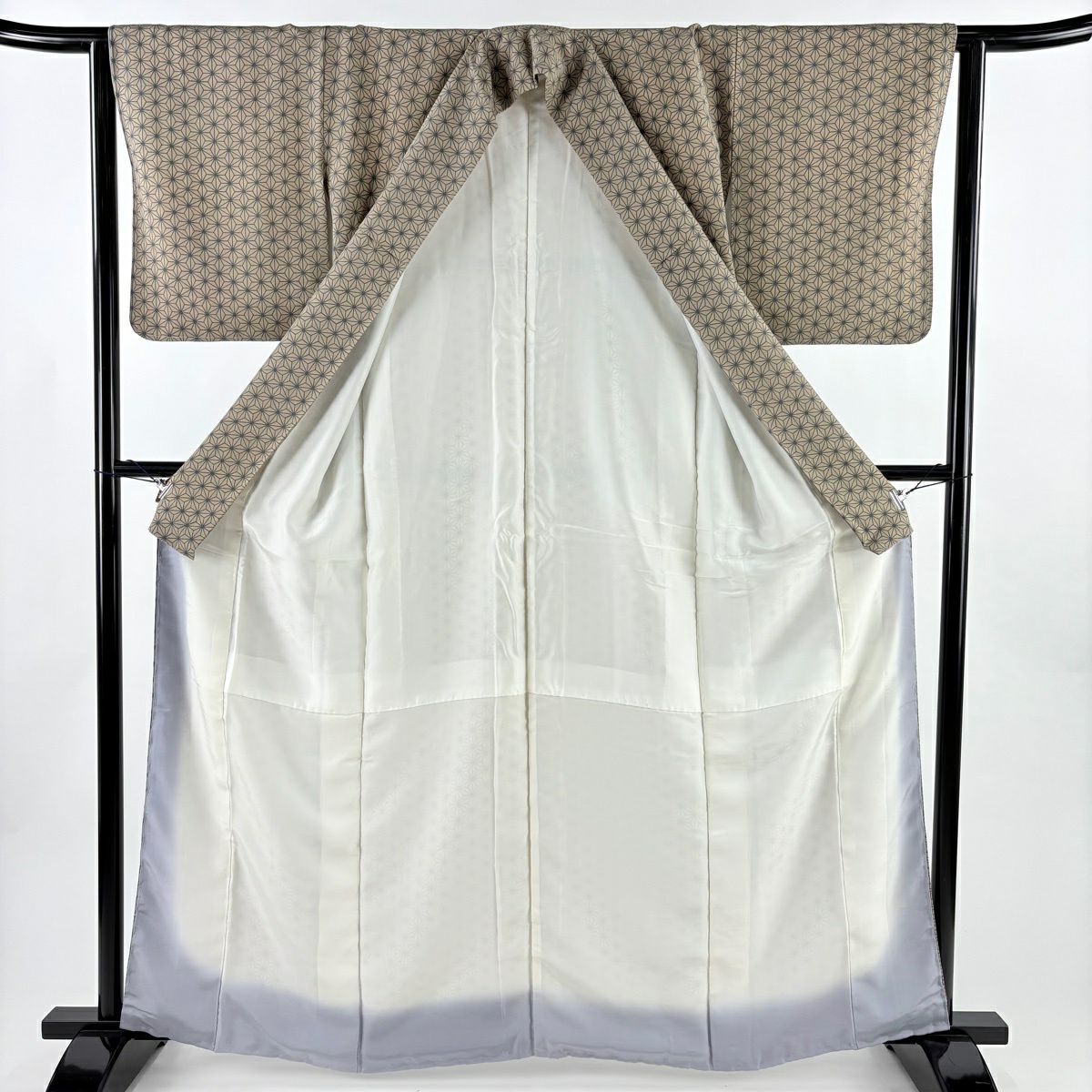 70%OFF 小紋 身丈155cm 裄丈63cm S 袷 幾何学模様 疋田柄 金彩 茶緑色 正絹 秀品 K70