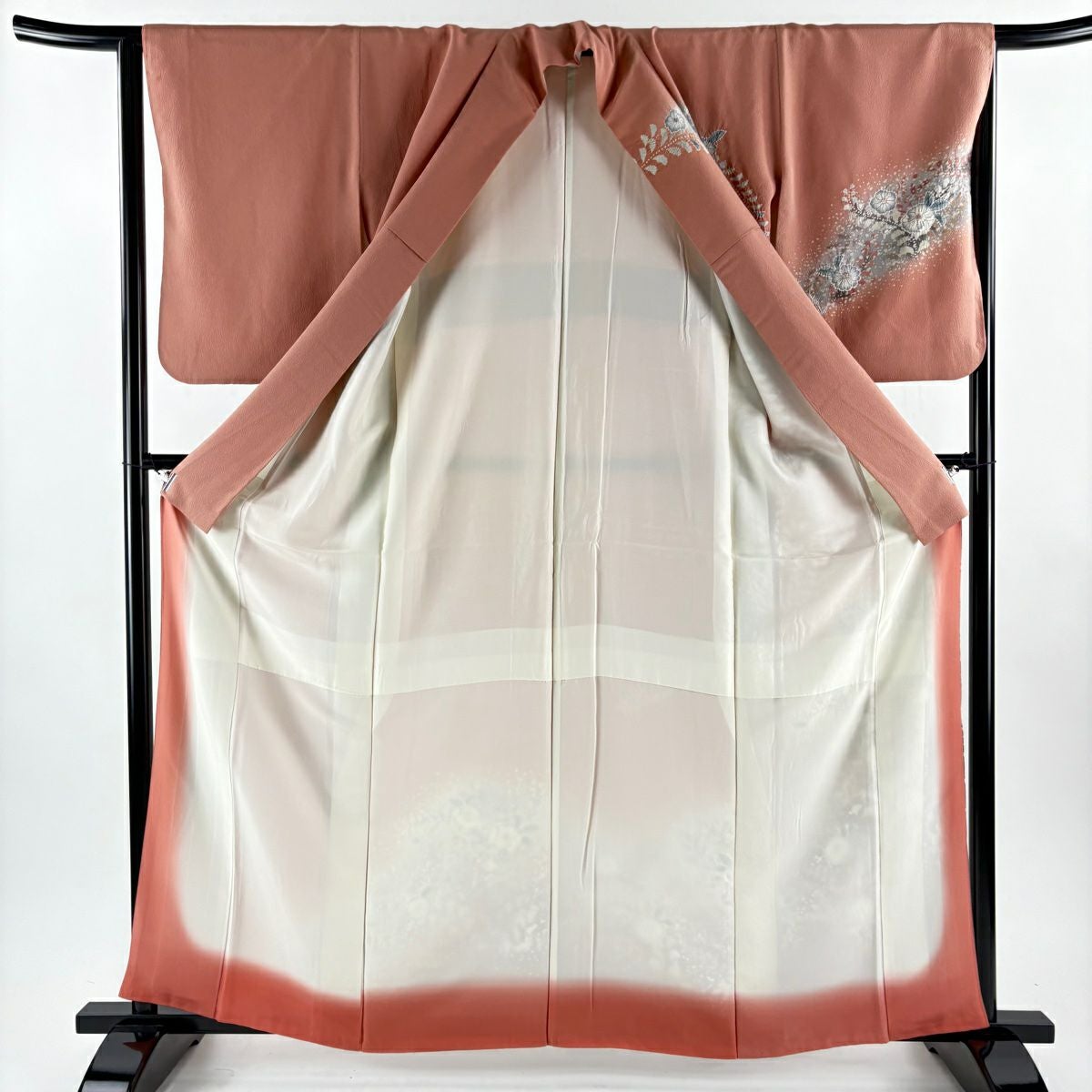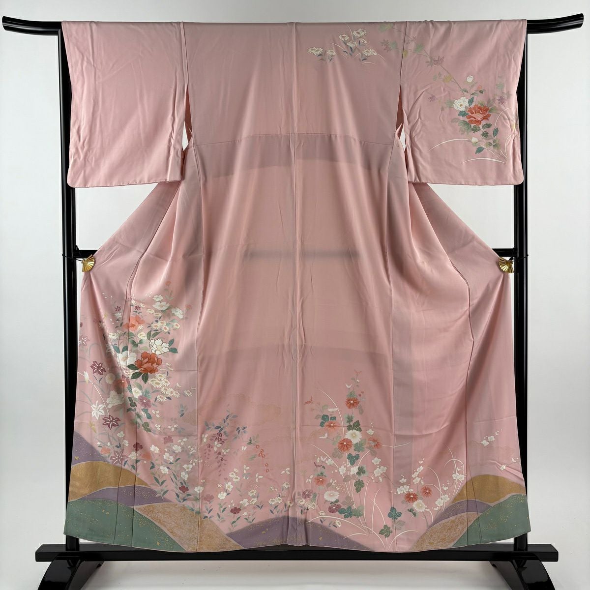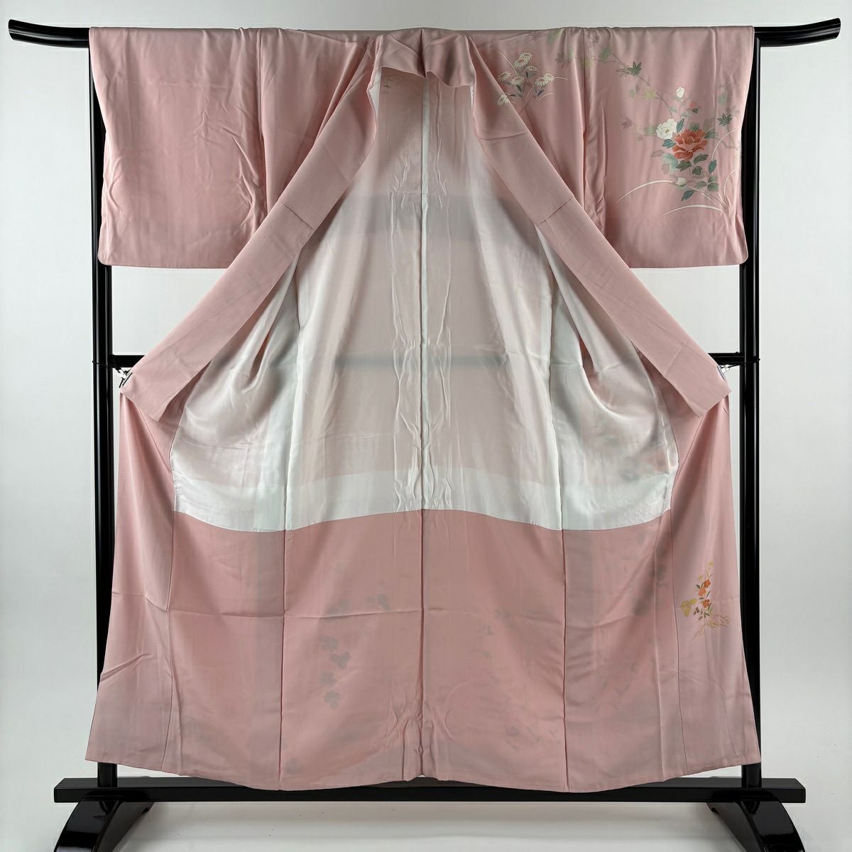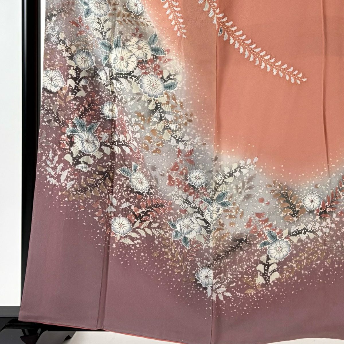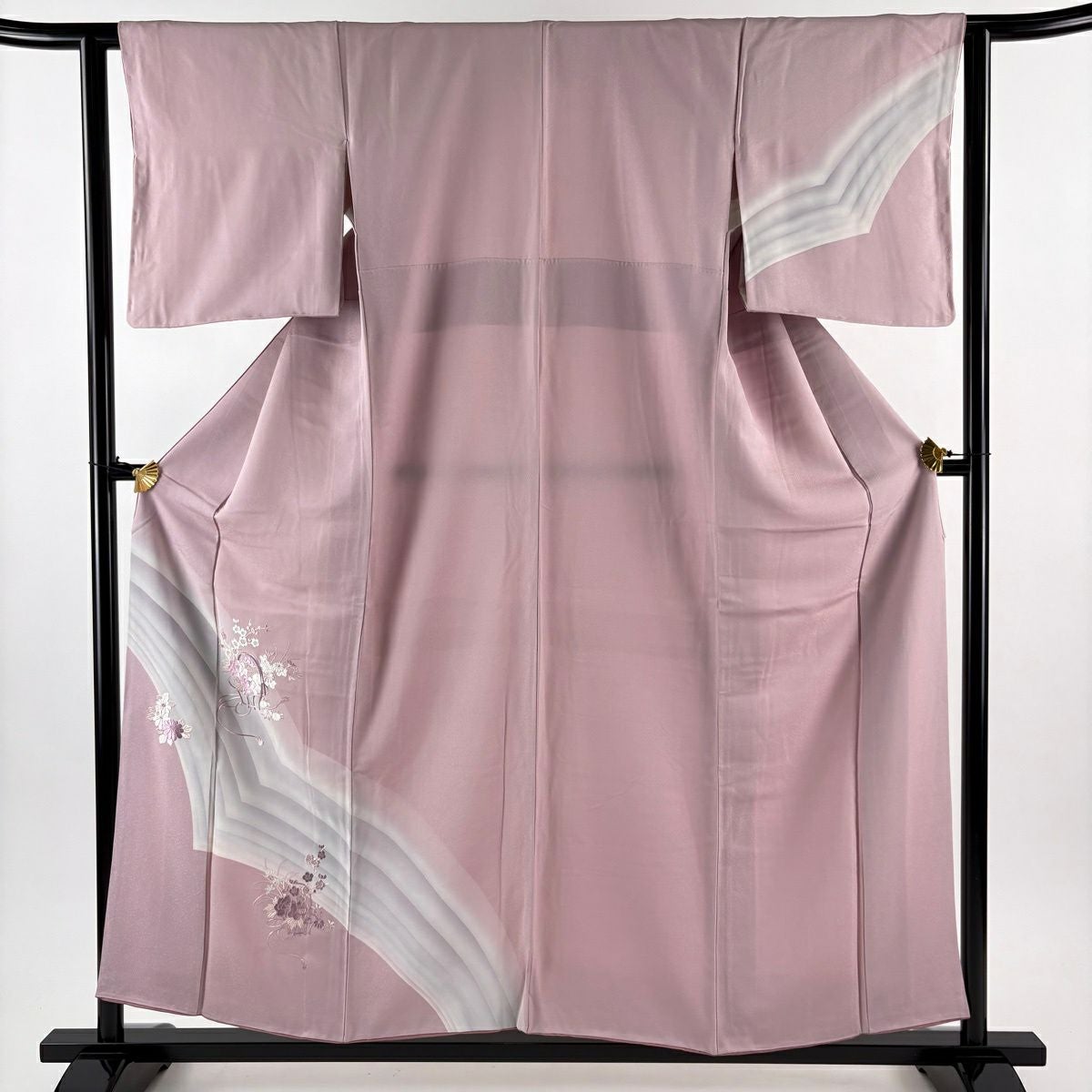【在庫一掃】 訪問着 身丈158.5cm 裄丈65cm M 袷 落款あり 枝花 枝梅 ぼかし ピンク 正絹 秀品