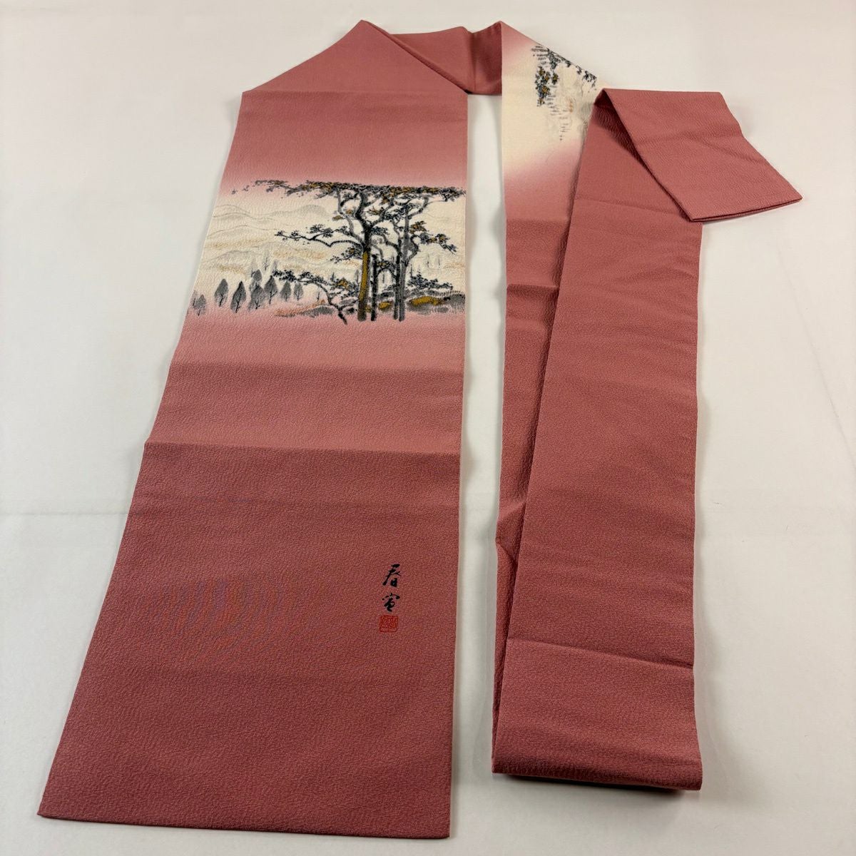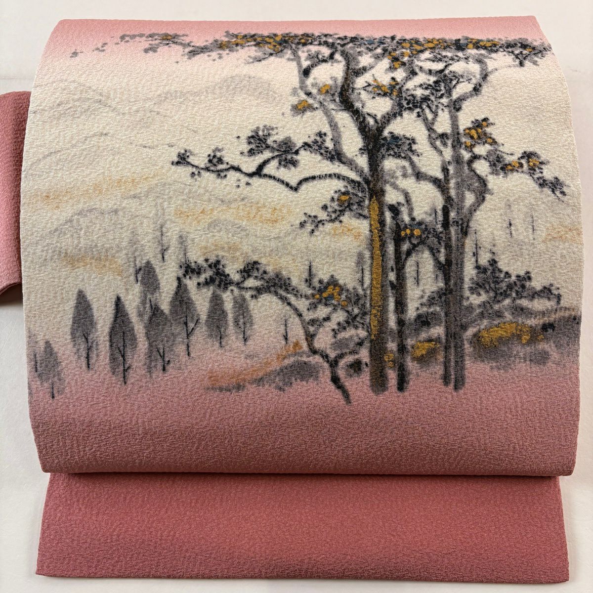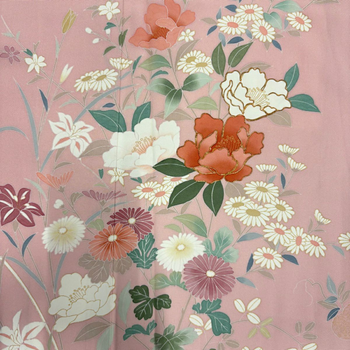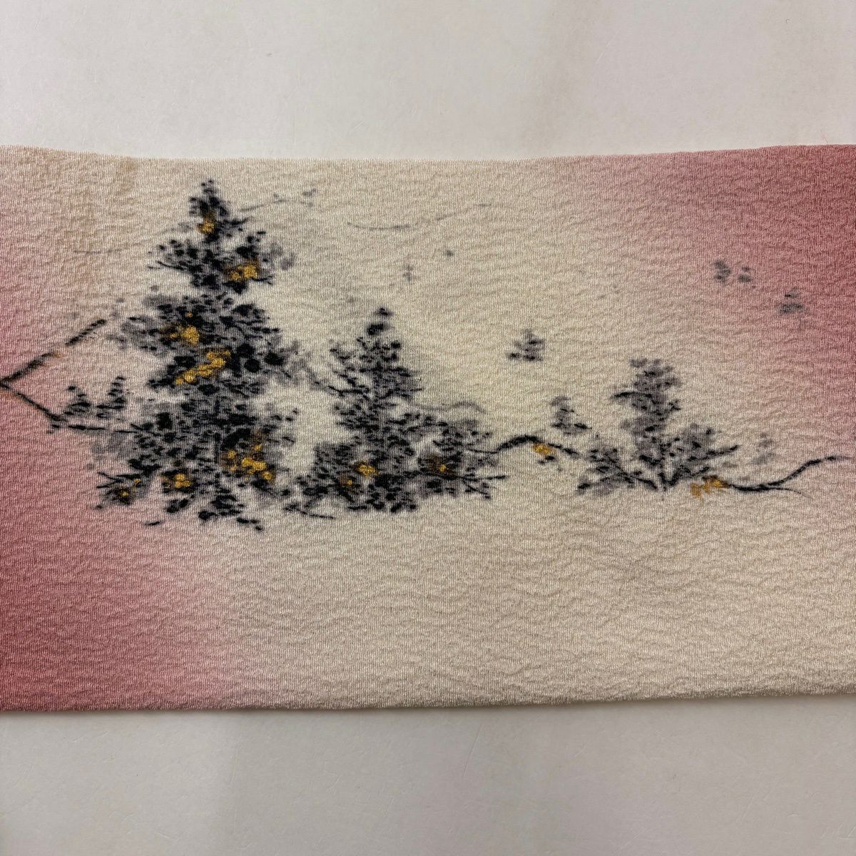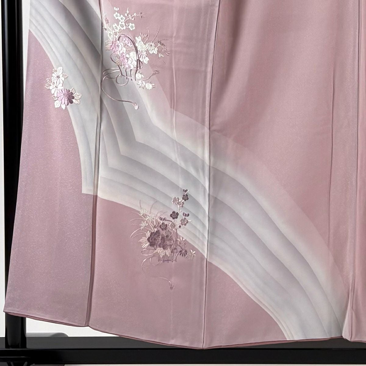 【在庫一掃】 訪問着 身丈158.5cm 裄丈65cm M 袷 落款あり 枝花 枝梅 ぼかし ピンク 正絹 秀品
