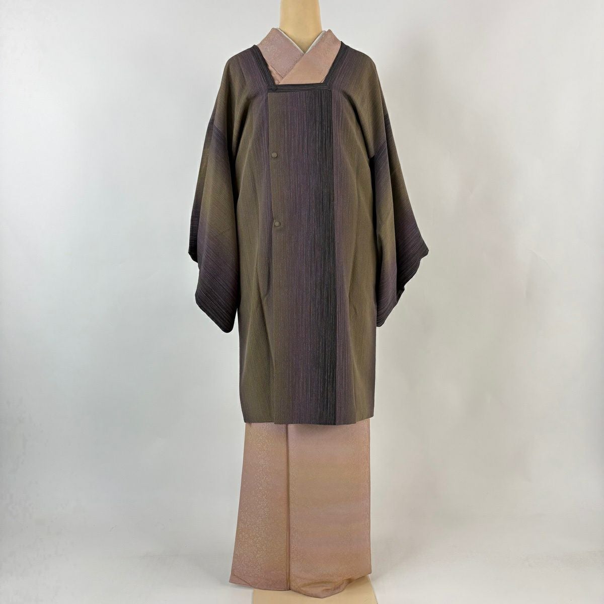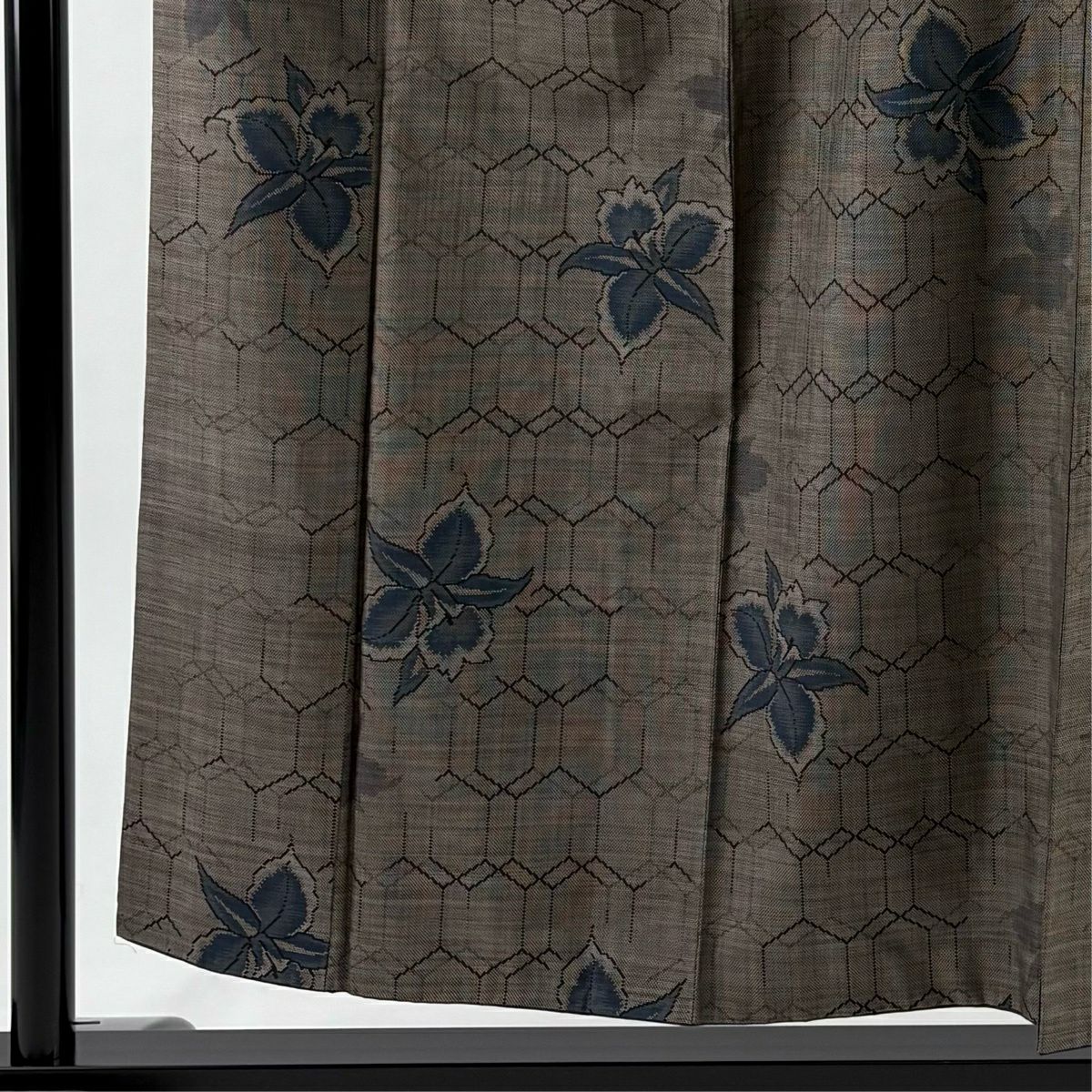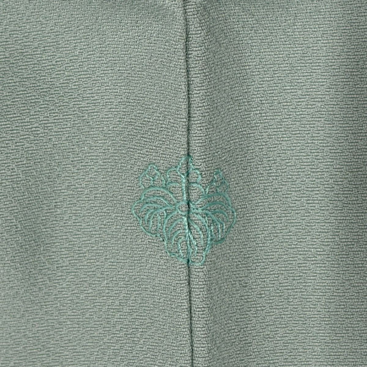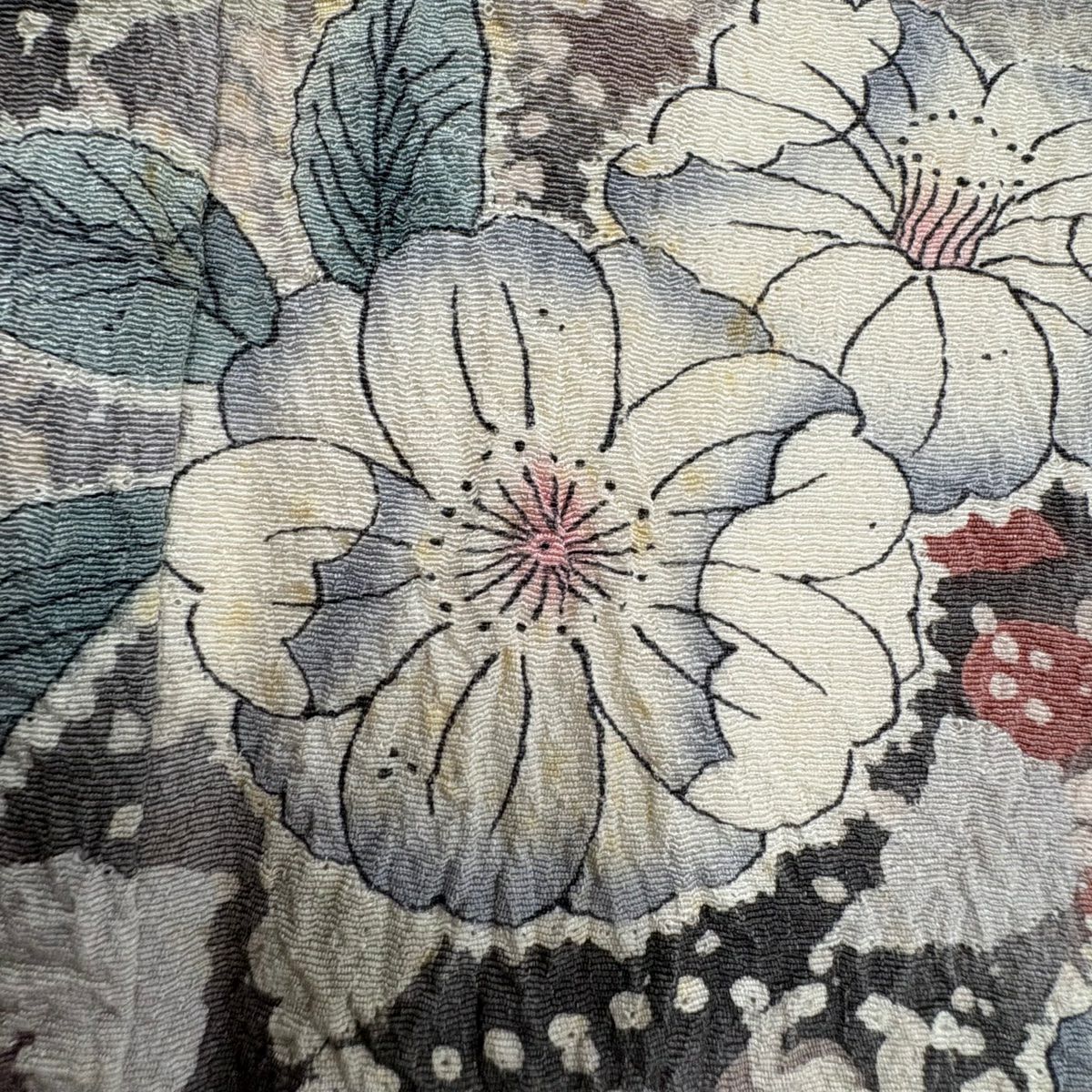 【在庫一掃】 【美品】 道行 身丈125cm 裄丈64.5cm M 和装コート 都衿 草花 器物 灰緑 正絹 秀品