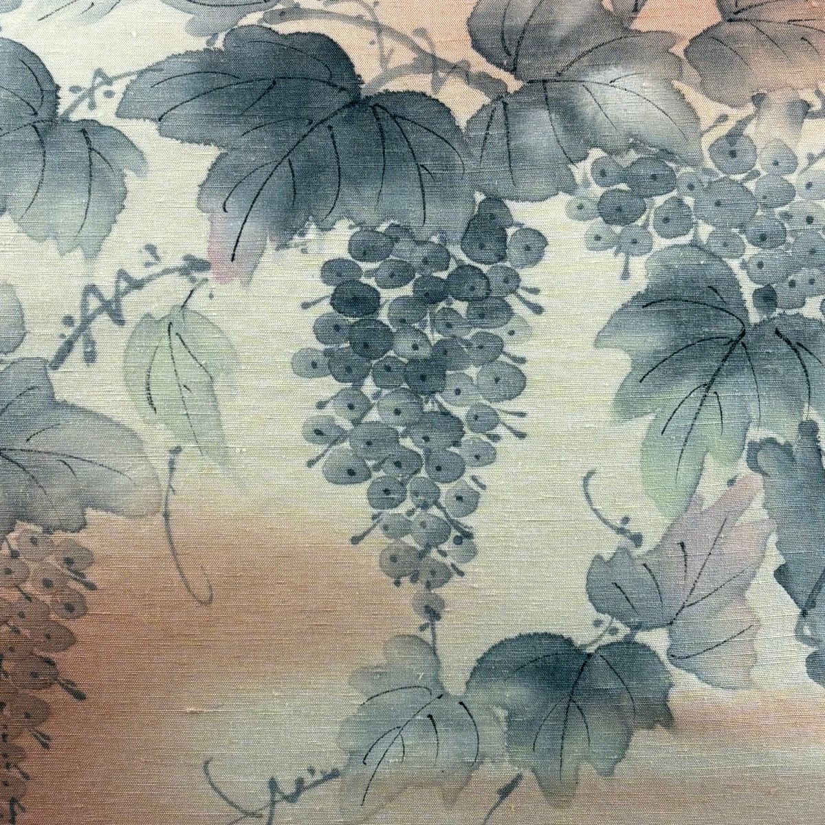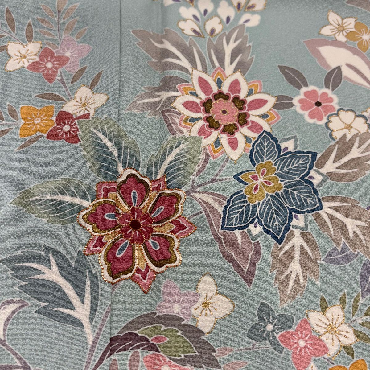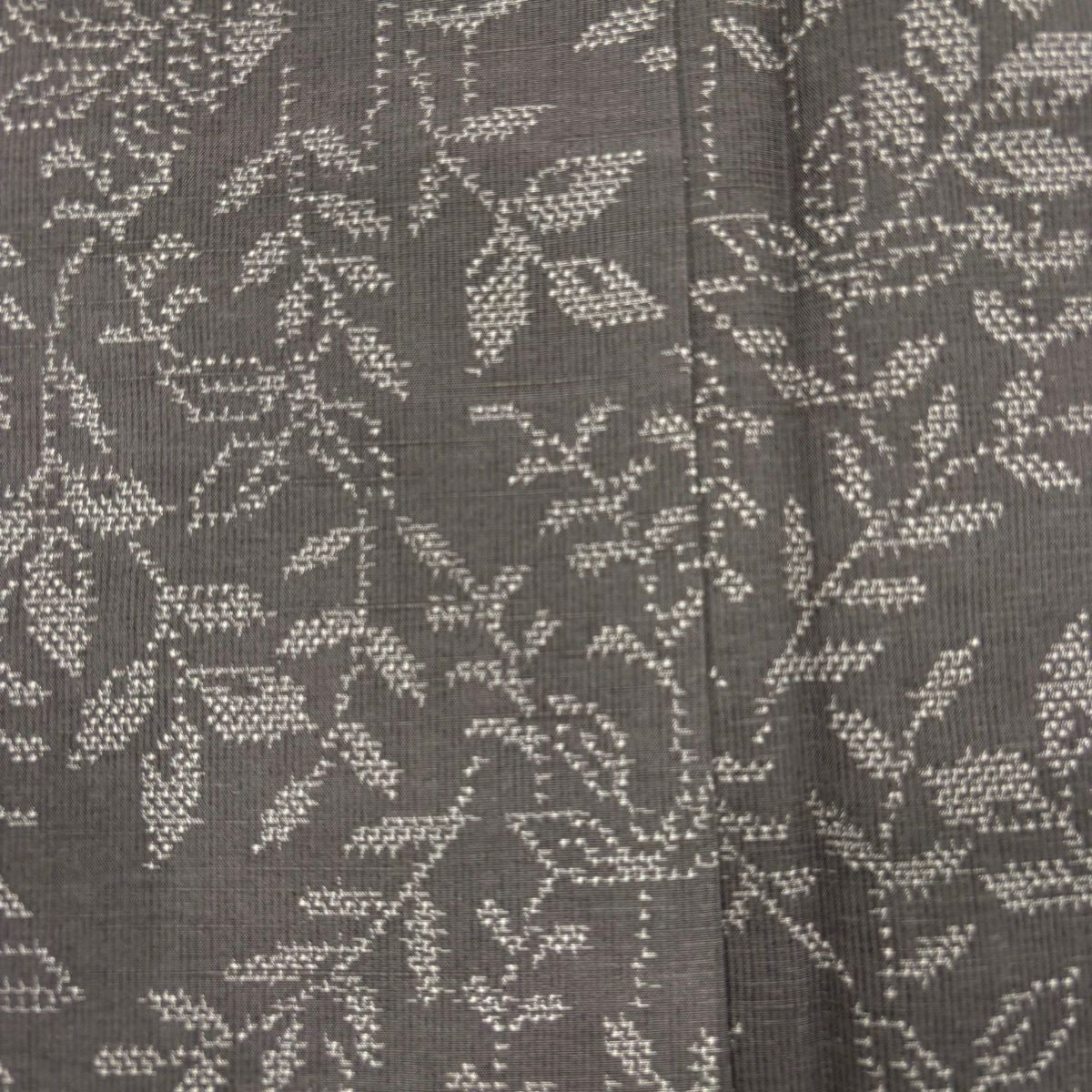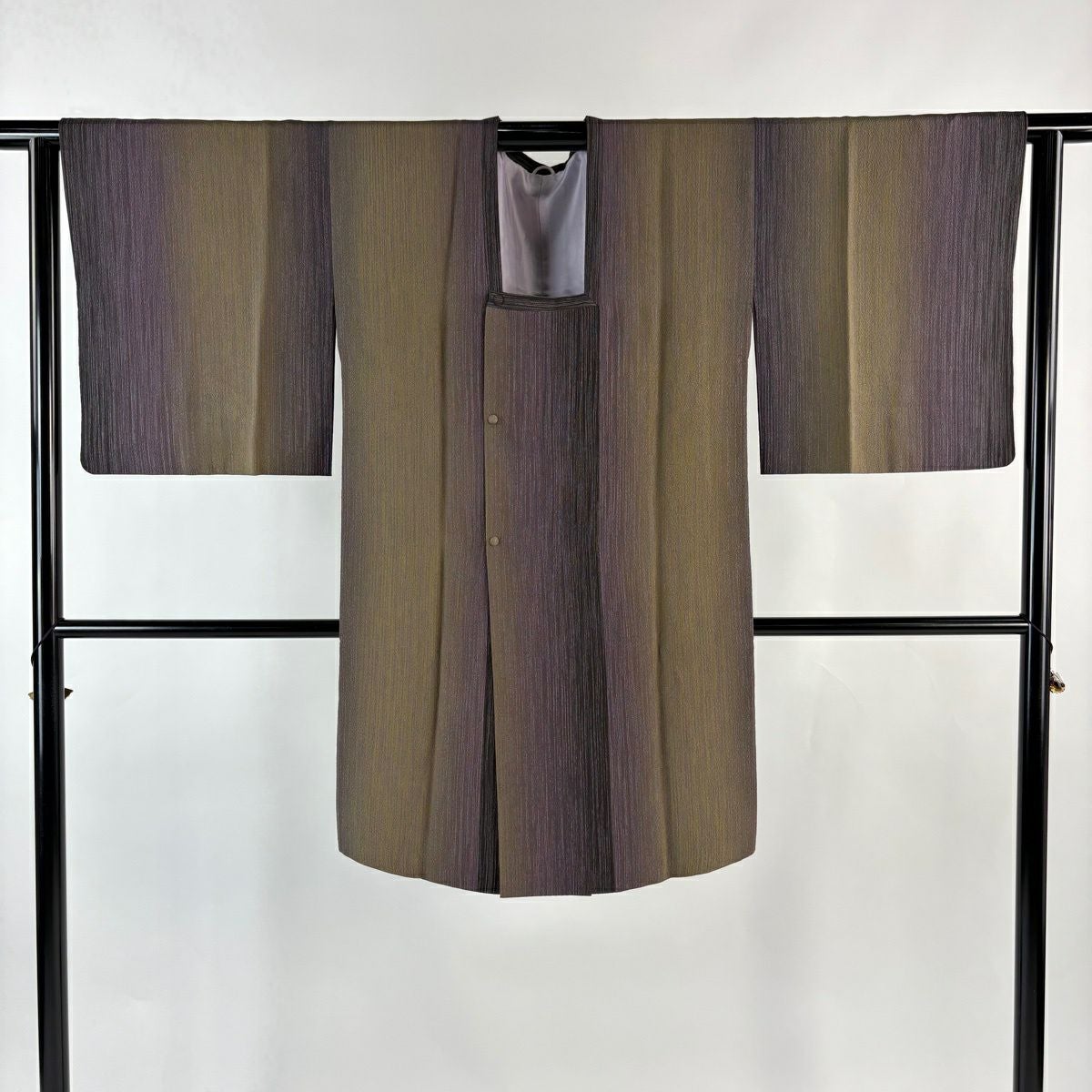 【在庫一掃】 【美品】 道行 身丈125cm 裄丈64.5cm M 和装コート 都衿 草花 器物 灰緑 正絹 秀品