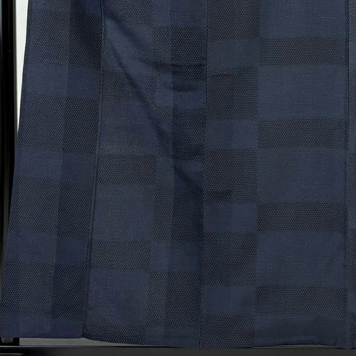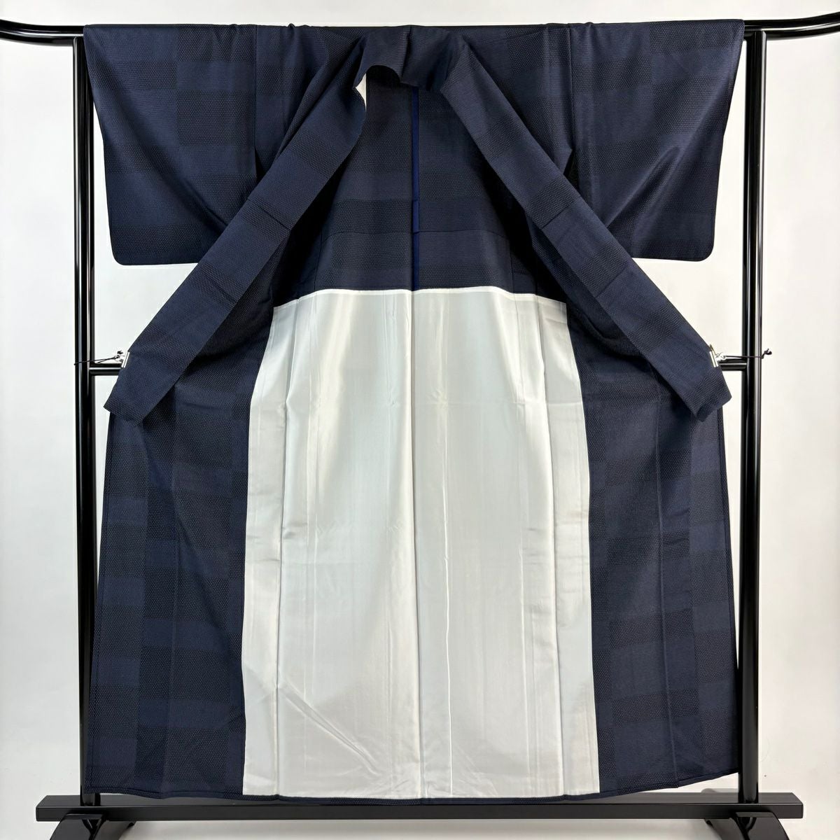 70%OFF 【美品】 紬 身丈159cm 裄丈63.5cm S 単衣 段縞 亀甲絣 紺色 正絹 秀品 K70