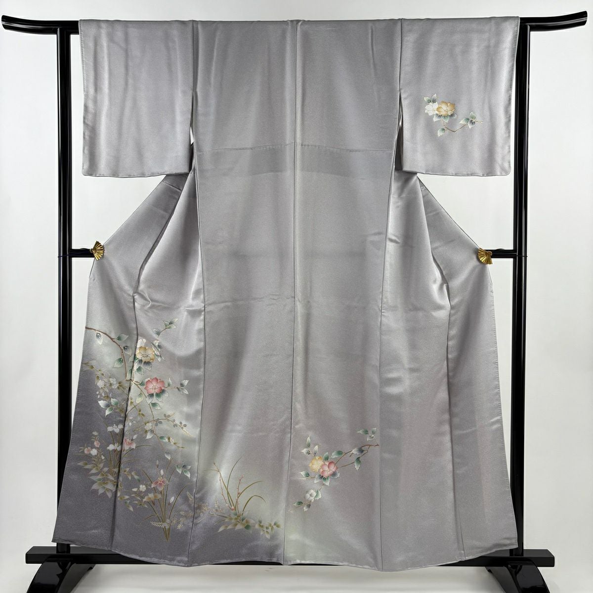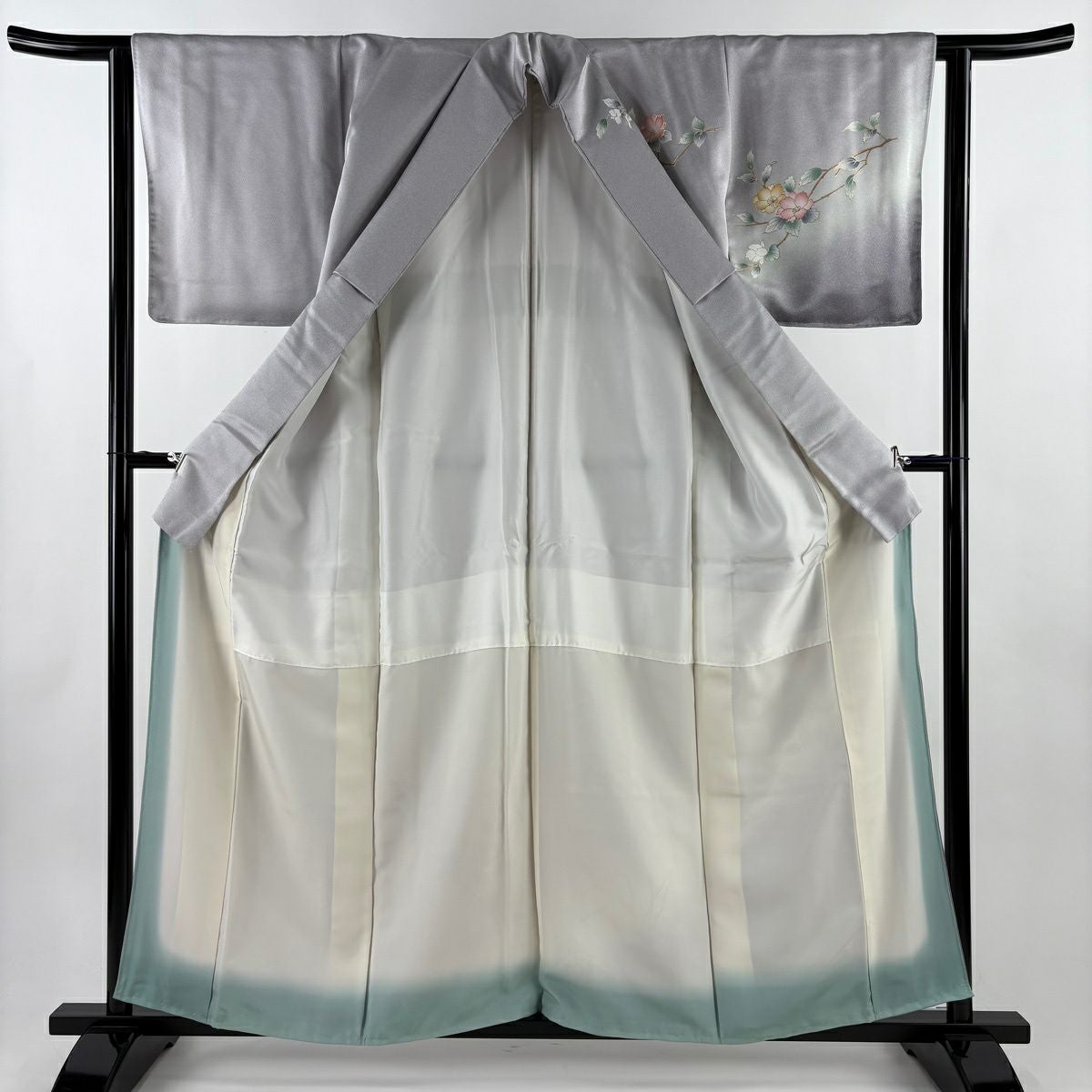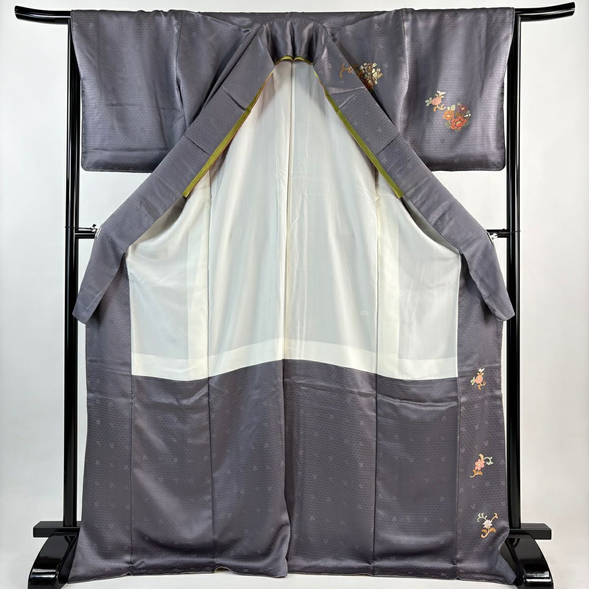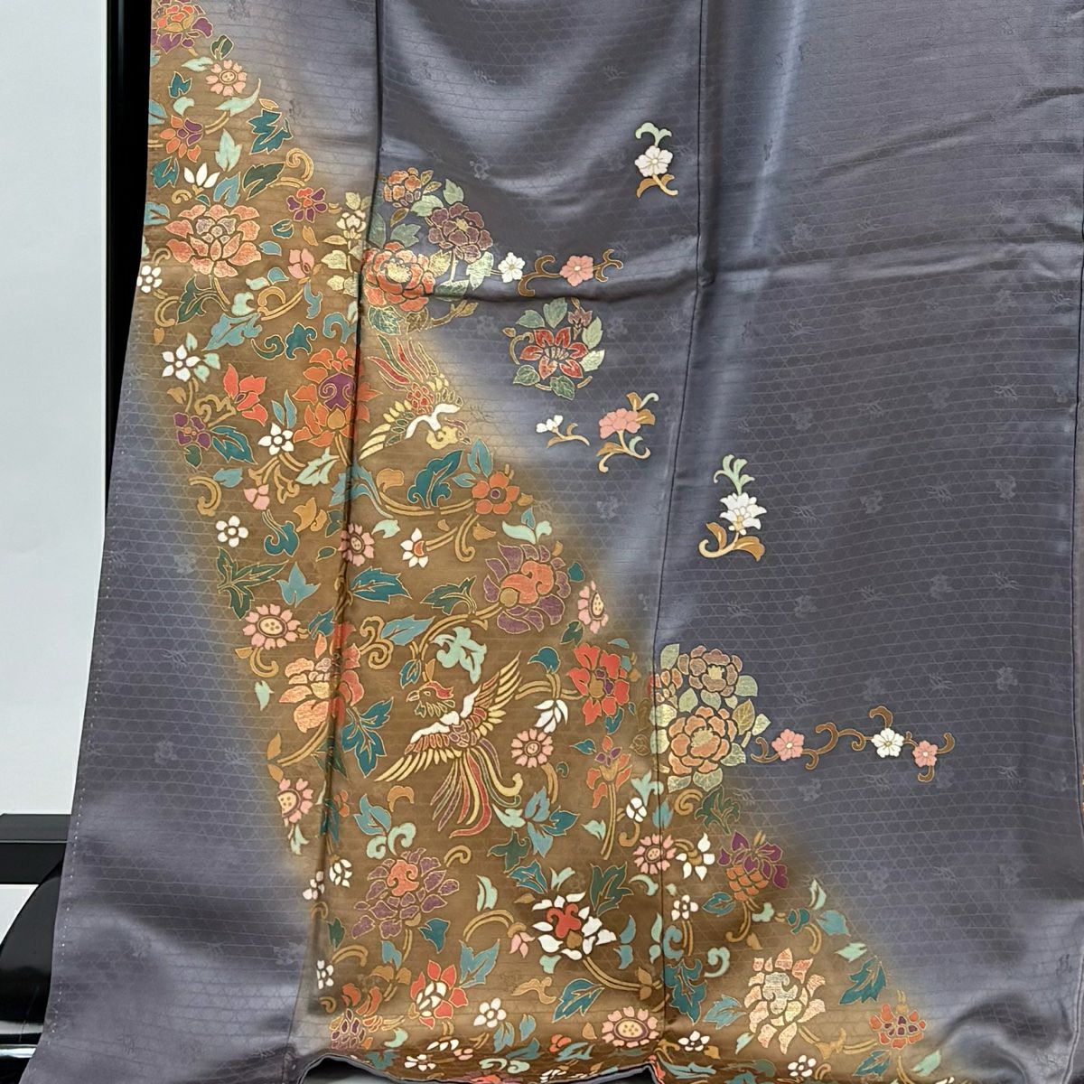 70%OFF 訪問着 身丈175cm 裄丈66cm M 袷 草花 鳳凰 金彩 ぼかし 灰紫 正絹 秀品 K70