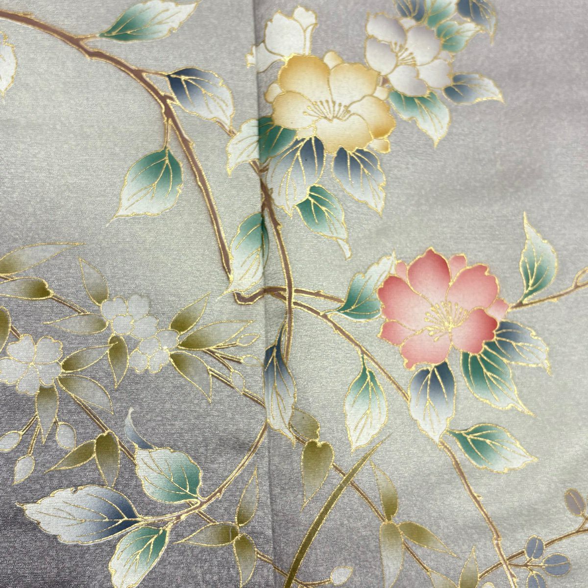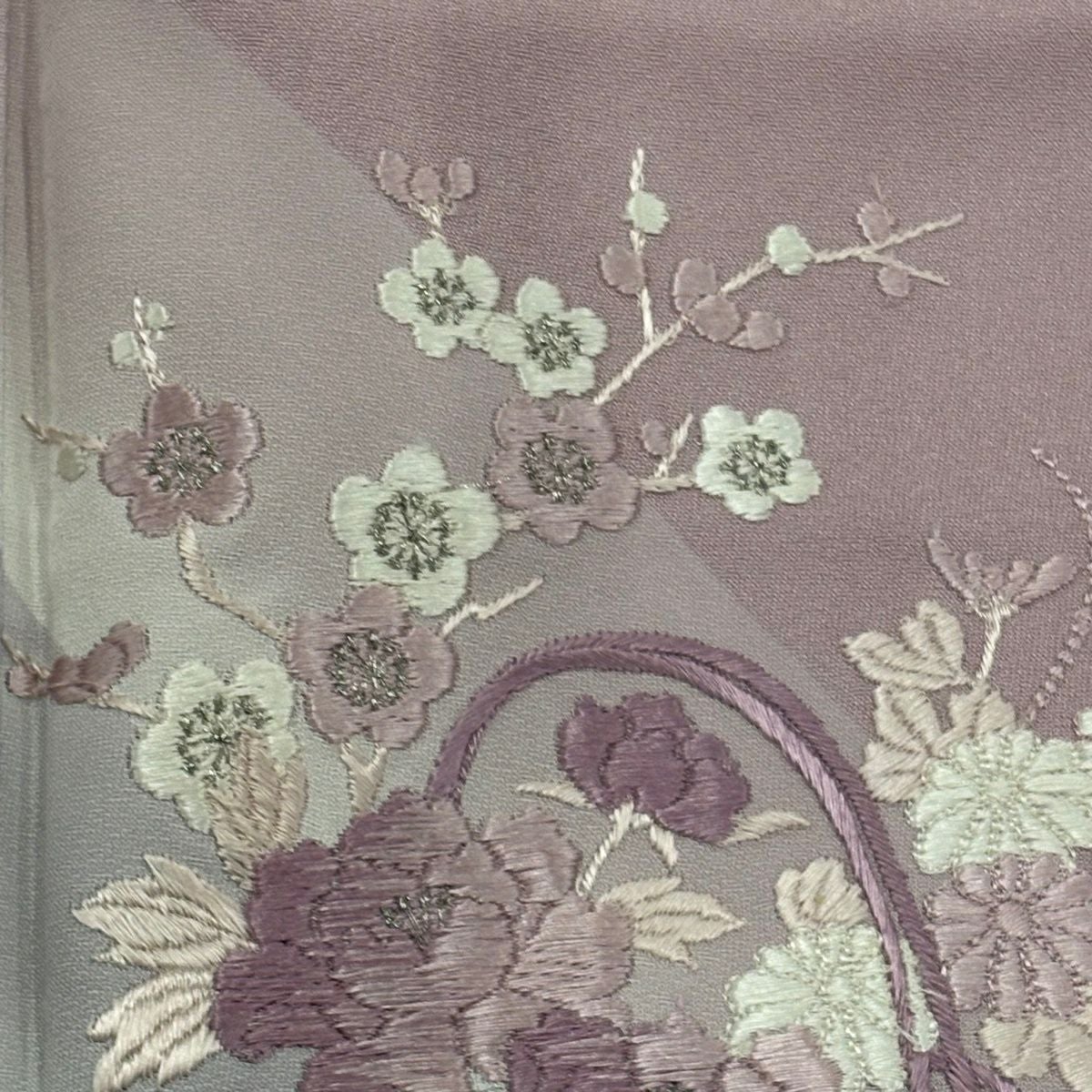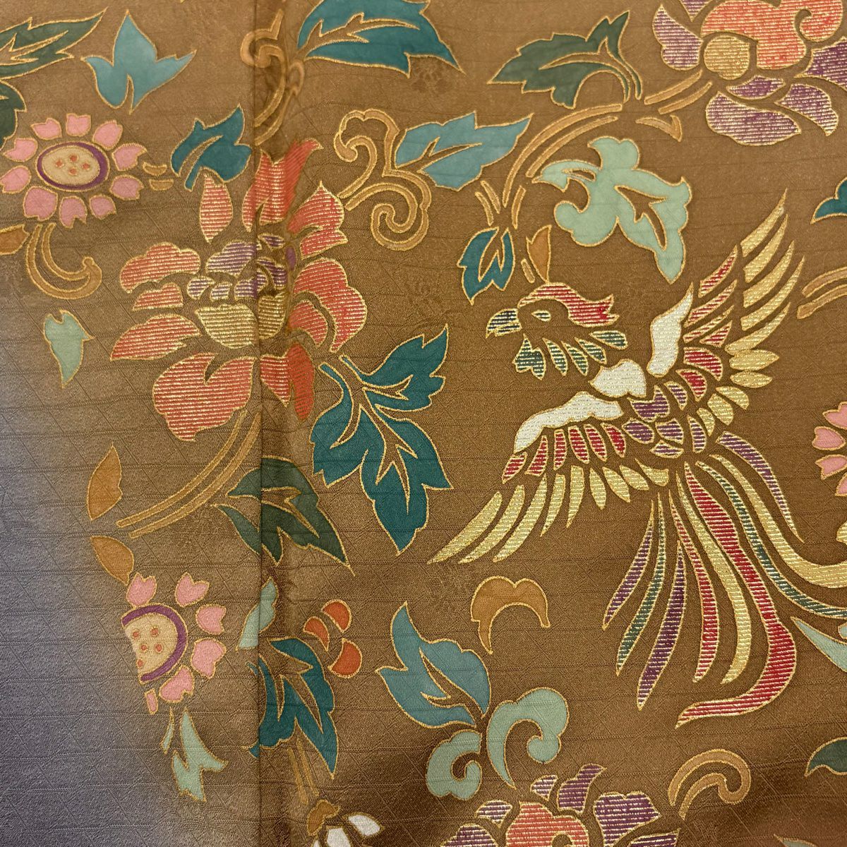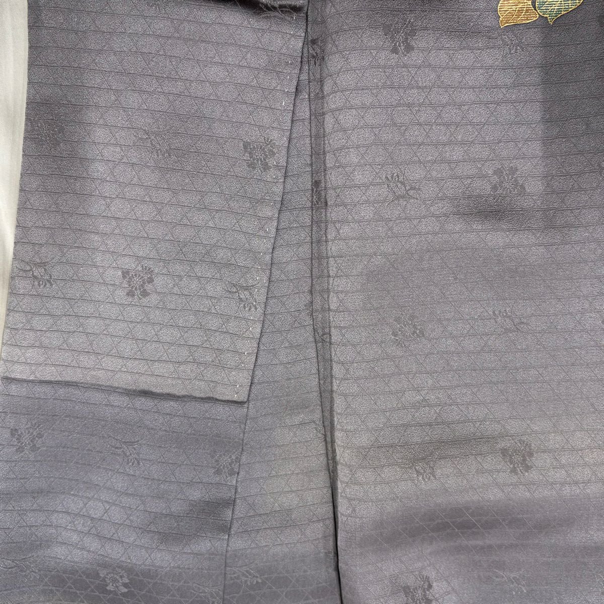 70%OFF 訪問着 身丈175cm 裄丈66cm M 袷 草花 鳳凰 金彩 ぼかし 灰紫 正絹 秀品 K70
