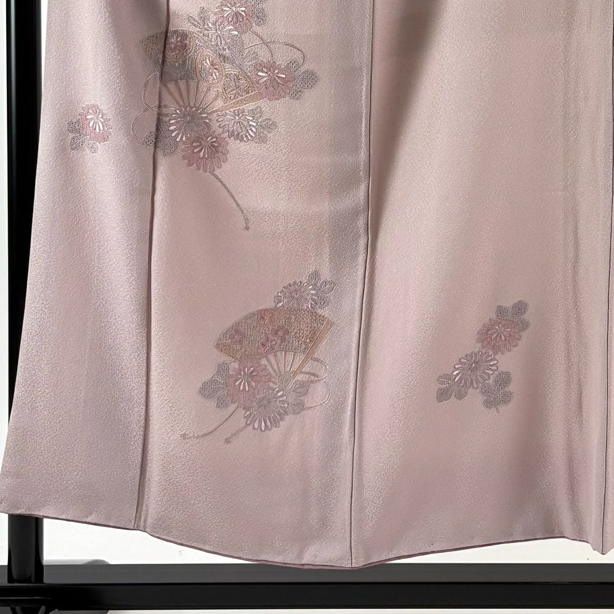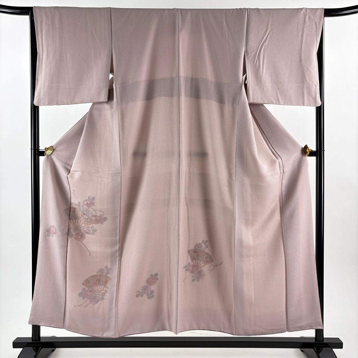 70%OFF 【美品】 付下げ 身丈154cm 裄丈66cm M 袷 扇 菊 刺繍 薄小豆 正絹 秀品 K70