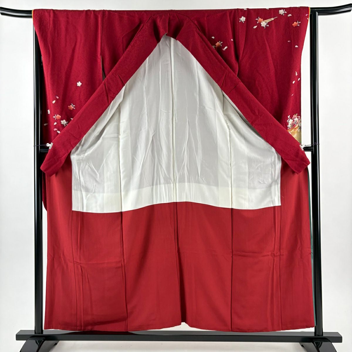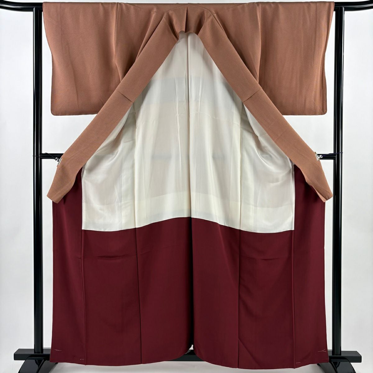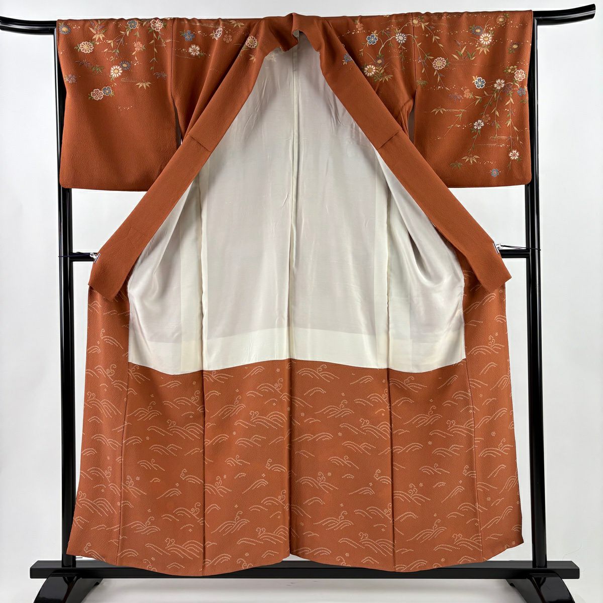 【在庫一掃】 訪問着 身丈155.5cm 裄丈64cm M 袷 秋草 光悦垣 金彩 染め分け 赤茶 正絹 秀品