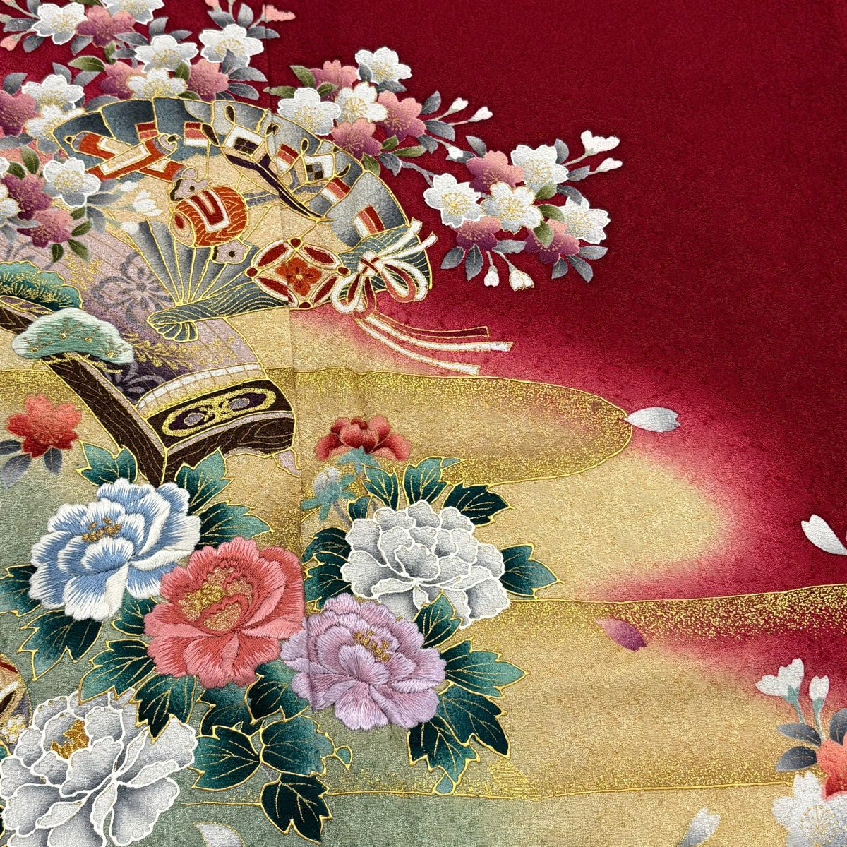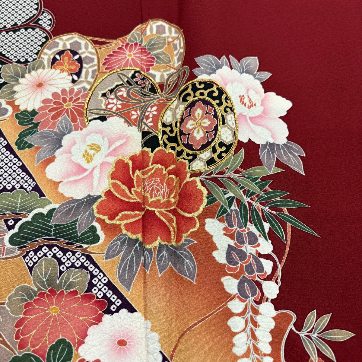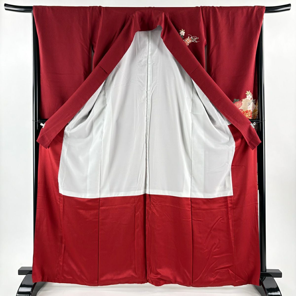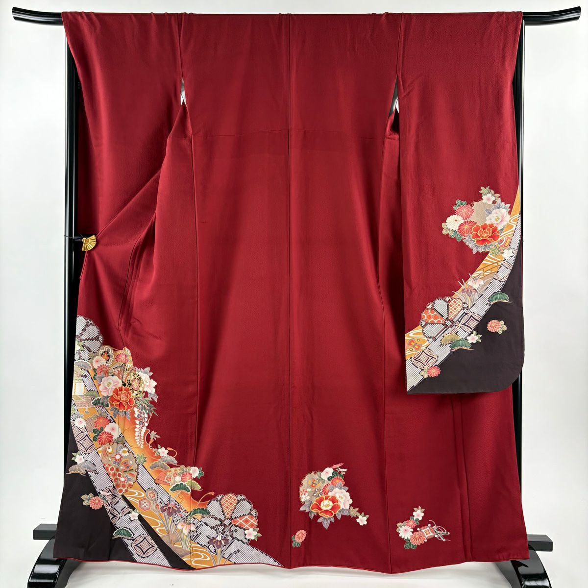 【在庫一掃】 訪問着 身丈155.5cm 裄丈64cm M 袷 秋草 光悦垣 金彩 染め分け 赤茶 正絹 秀品