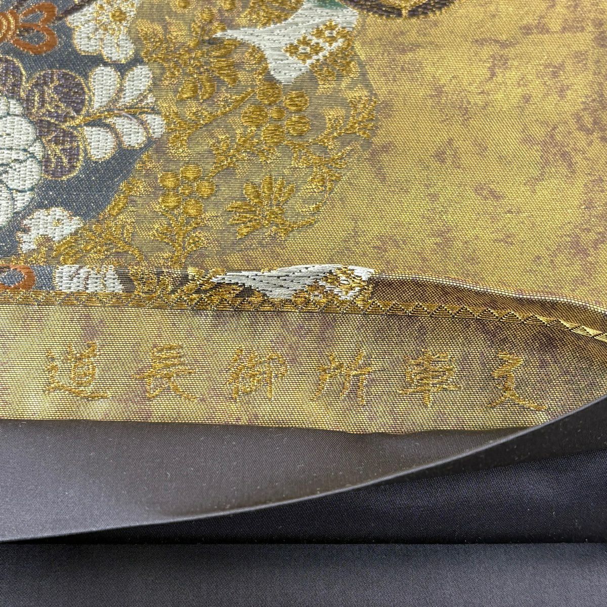 【最終値引き】 77%OFF 【美品】 袋帯 秀品 証紙あり 鳳凰 花唐草 金銀糸 箔 金色 六通 正絹 K70