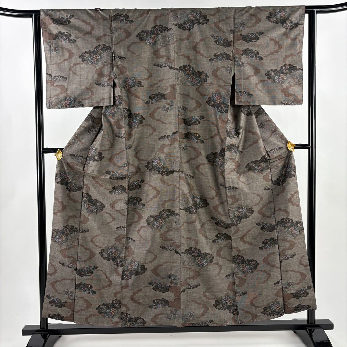 【最終値引き】 70%OFF 紬 身丈161.5cm 裄丈63cm S 袷 源氏車 焦茶色 正絹 秀品 K70